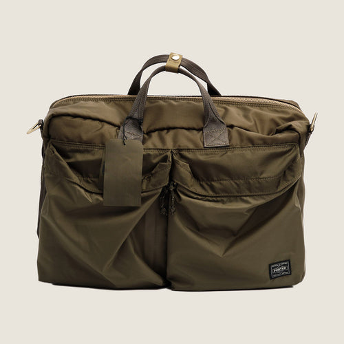 Launched by PORTER in 2012, the FORCE series takes inspiration from military gear, especially the accidental color variations found in vintage equipment. Each piece is built from tough industrial-grade nylon with a bright rescue-orange lining, creating bags that are durable, functional, and full of character.