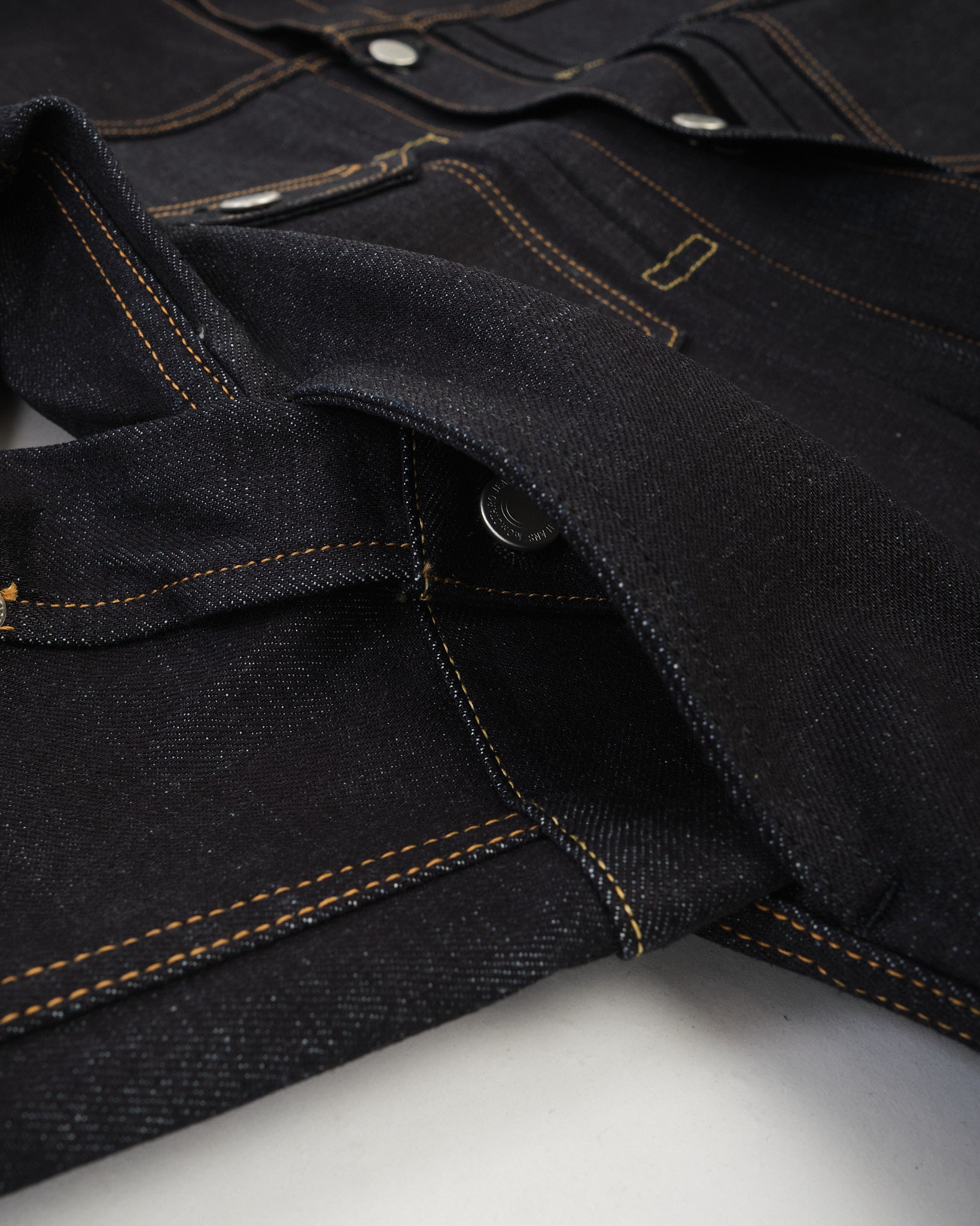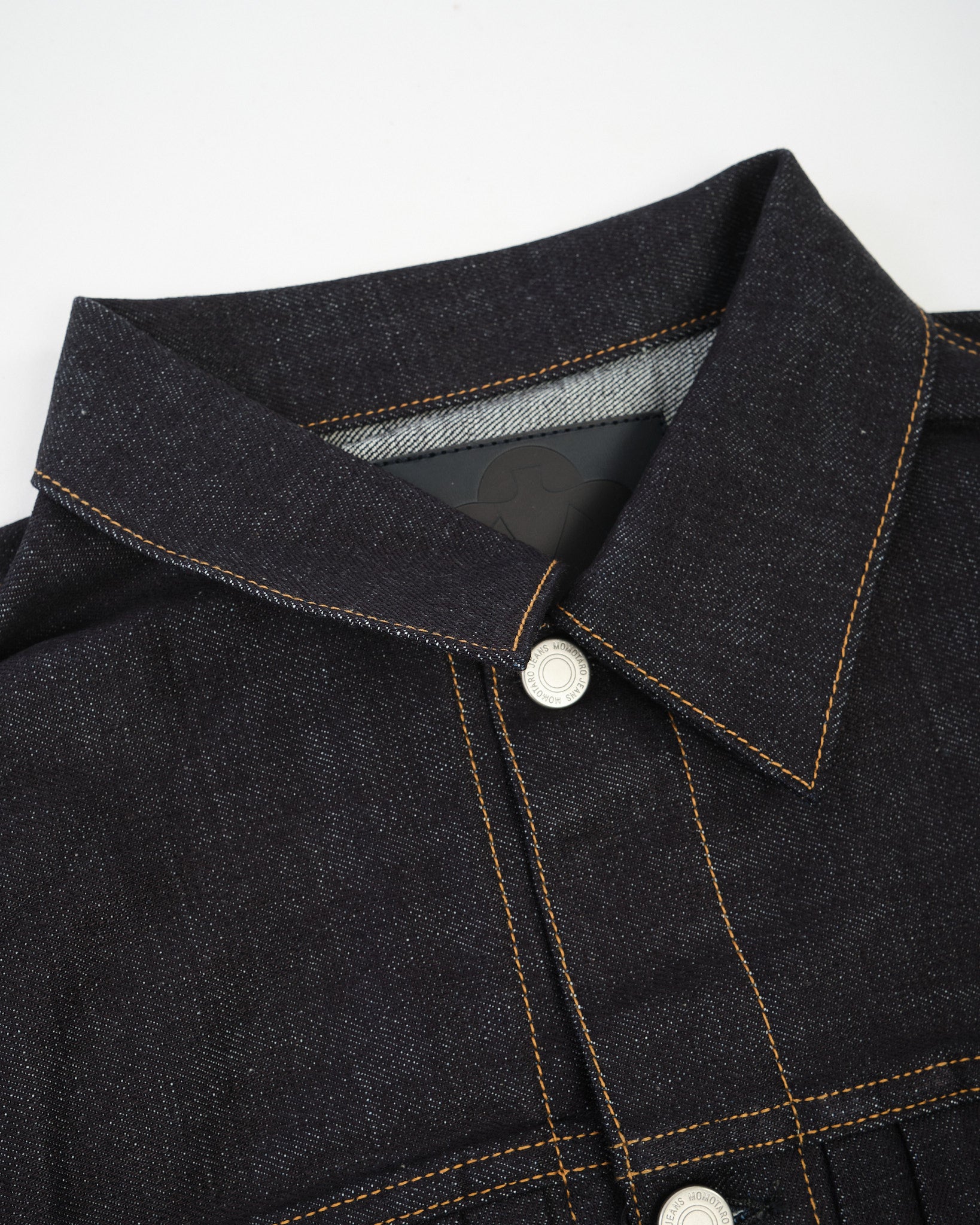 #002 Denimjakken i 14.7oz Tokuno Blue fra Momotaro er en raffinert versjon av en klassisk silhuett, laget av stivt, uvasket denim vevd fra 100% Zimbabwe bomull. Farget i merkets signatur Tokuno Blue, tilbyr dette stoffet en slående dyp indigo tone og twill tekstur som vil utvikle seg vakkert med bruk. Passformen er ren og balansert, med en avslappet kroppsvidde og moderat lengde for komfort uten bulk. Funksjonelle sidelommer øker daglig nytteverdi, mens jakkens mønster er skreddersydd for grasiøs bevegelse og en skarp silhuett. Behandlet for å redusere krymping etter vask, tilbyr dette uvaskede plagget klassisk denimrenhet med en gjennomtenkt moderne oppdatering.