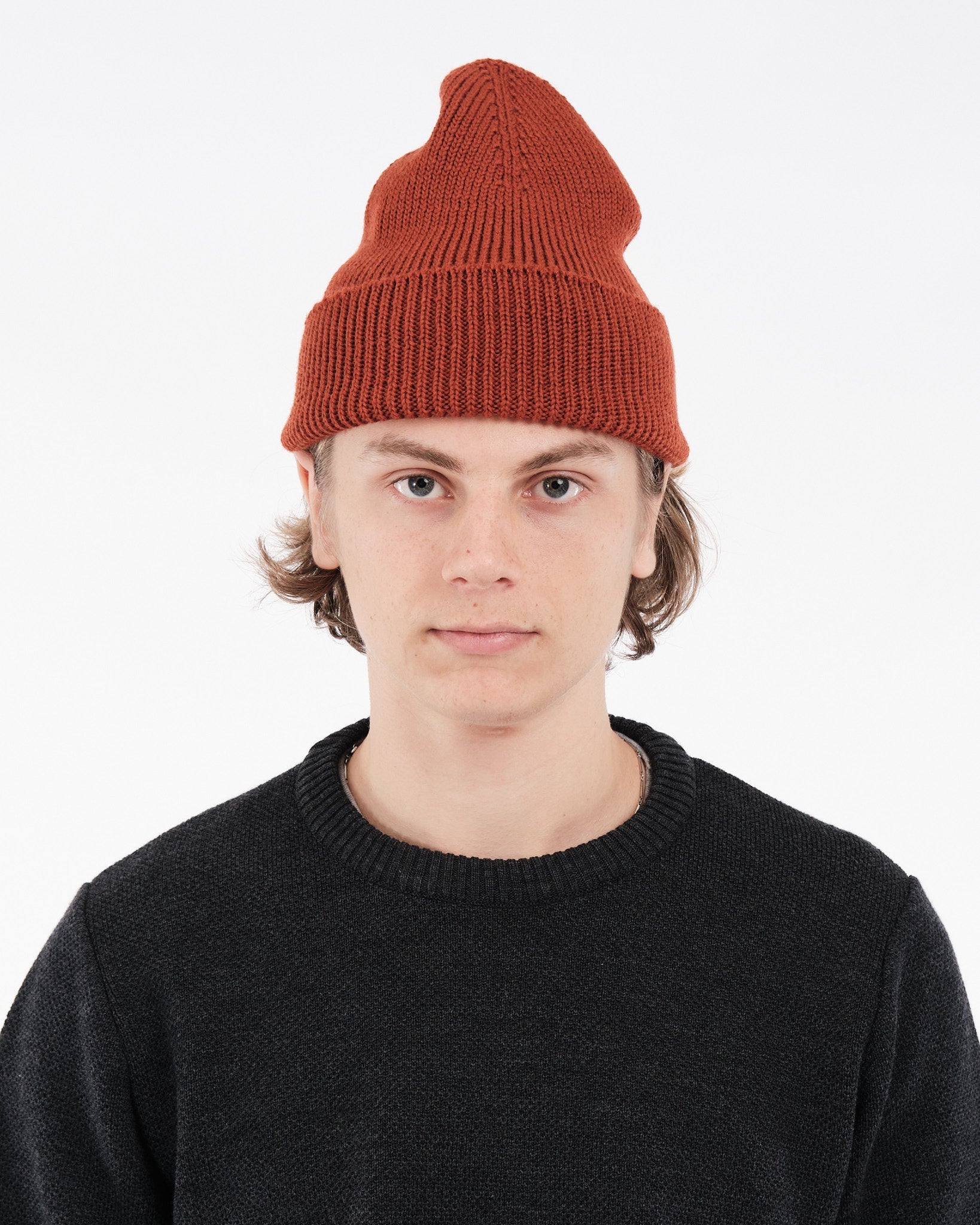 Ara Bonnet Orange fra Nitto Knitwear er laget av kvalitets ekstra fin merinoull for en luksuriøs følelse og koselig varme i vinterdagene. Den livlige oransje fargen gir et pop til din kalde vær-garderobe. Designet med et stretchy strikk som former seg komfortabelt uten å føles for stramt eller begrensende, sikrer denne luen en komfortabel passform. Med en høyde på 27 cm gir den dekning samtidig som den forblir lett på hodet. Nitto Knitwear understreker sin dedikasjon til bærekraft og øko-praksiser ved å bruke sertifisert Oeko Tex og RWS (Responsible Wool Standard) ull i sine produksjonsprosesser.