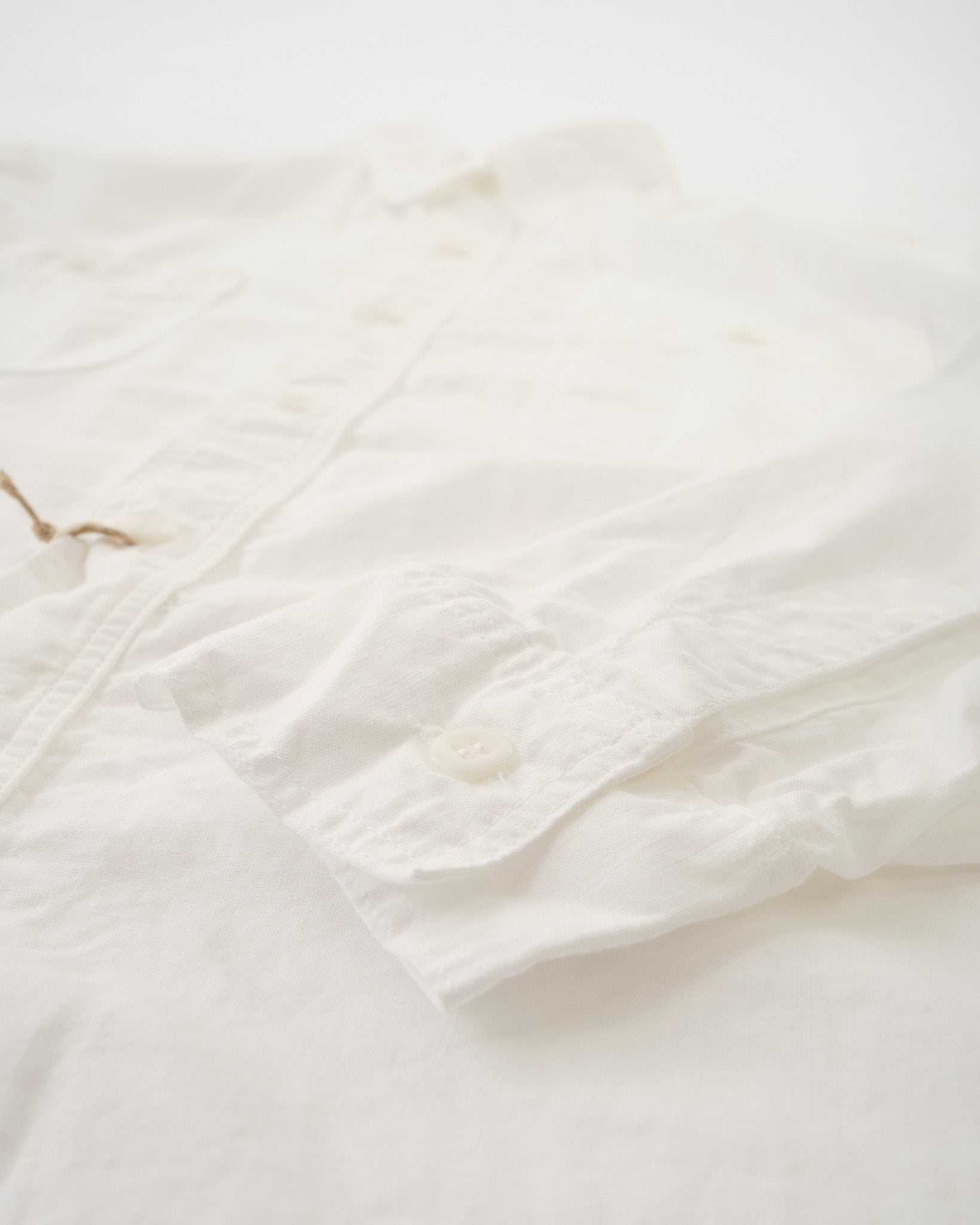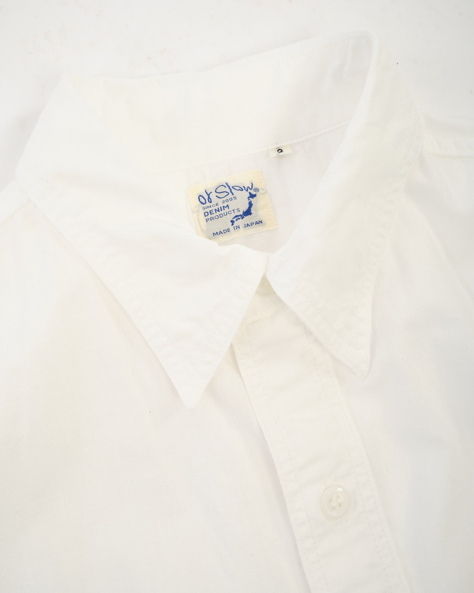 orSlow Relax Fit White Chambray Work Shirt i Hvit er en raffinert versjon av klassisk arbeidstøy, nøye utformet for å tilby både komfort og holdbarhet. Laget av førsteklasses 100% bomullschambray-stoff, gir denne skjorten en myk, pustende følelse, noe som gjør den ideell for bruk hele året.