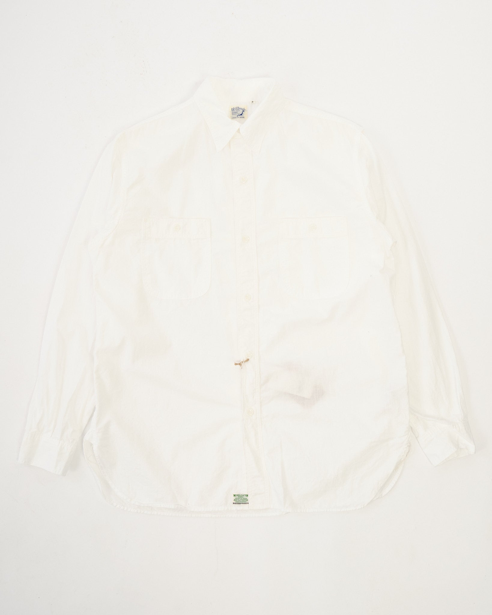 Det hvite chambray-stoffet tilbyr en subtil tekstur og et rent, skarpt utseende, noe som gjør det allsidig for ulike stylingalternativer. Enten det er brukt knappet opp for et polert utseende eller lagt over en t-skjorte for en uformell vibe, blander denne skjorten funksjonalitet med tidløs stil sømløst.