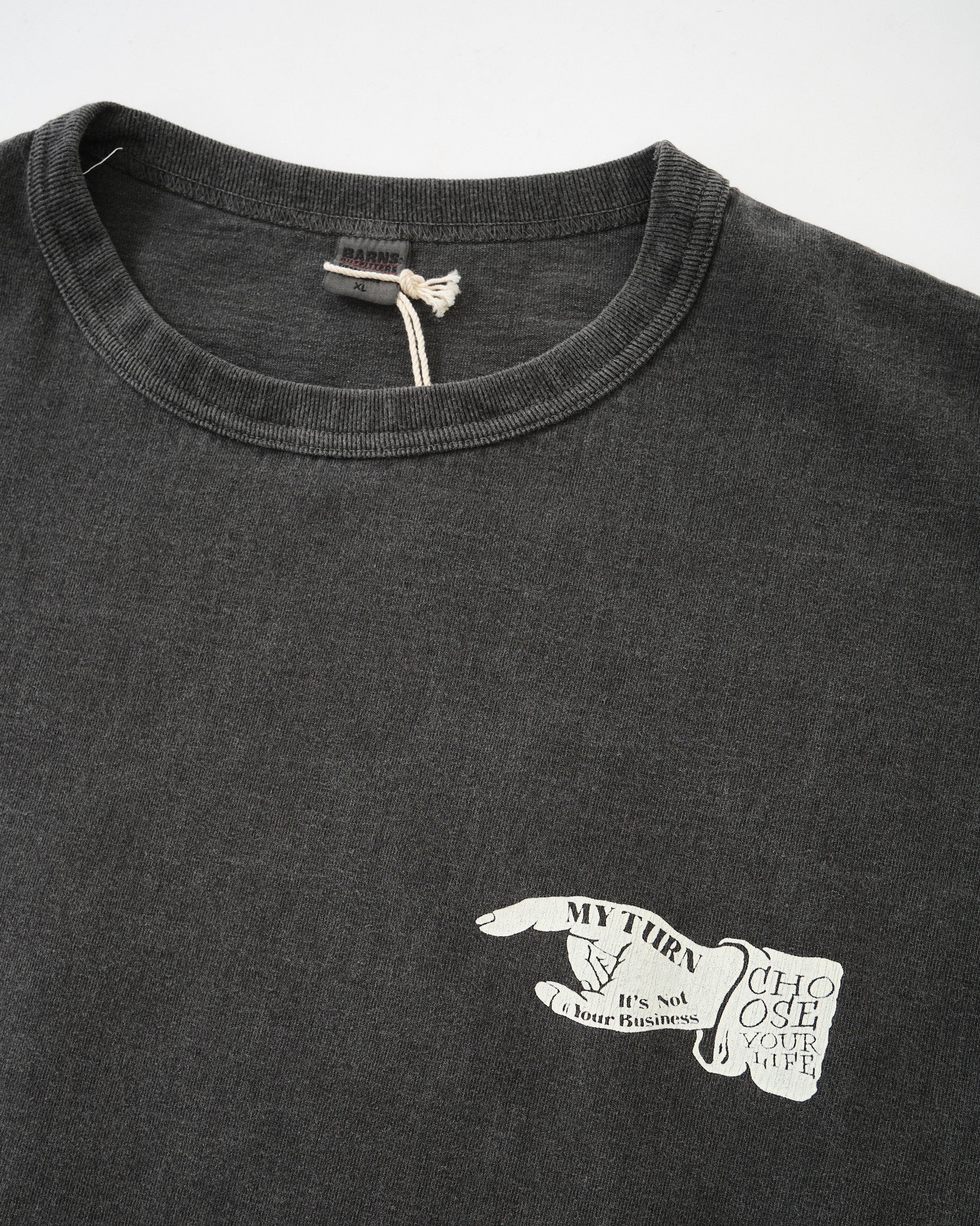 The Barns Outfitters GOAT "My Turn" Tee in black taps directly into the DNA of classic American T-shirts. Built using a traditional tubular body construction—meaning no side seams—it recreates the feel of vintage tees from the 90s and earlier. This method was once widely used in the USA for its comfort and simplicity, and Barns brings it back here with impressive authenticity.
