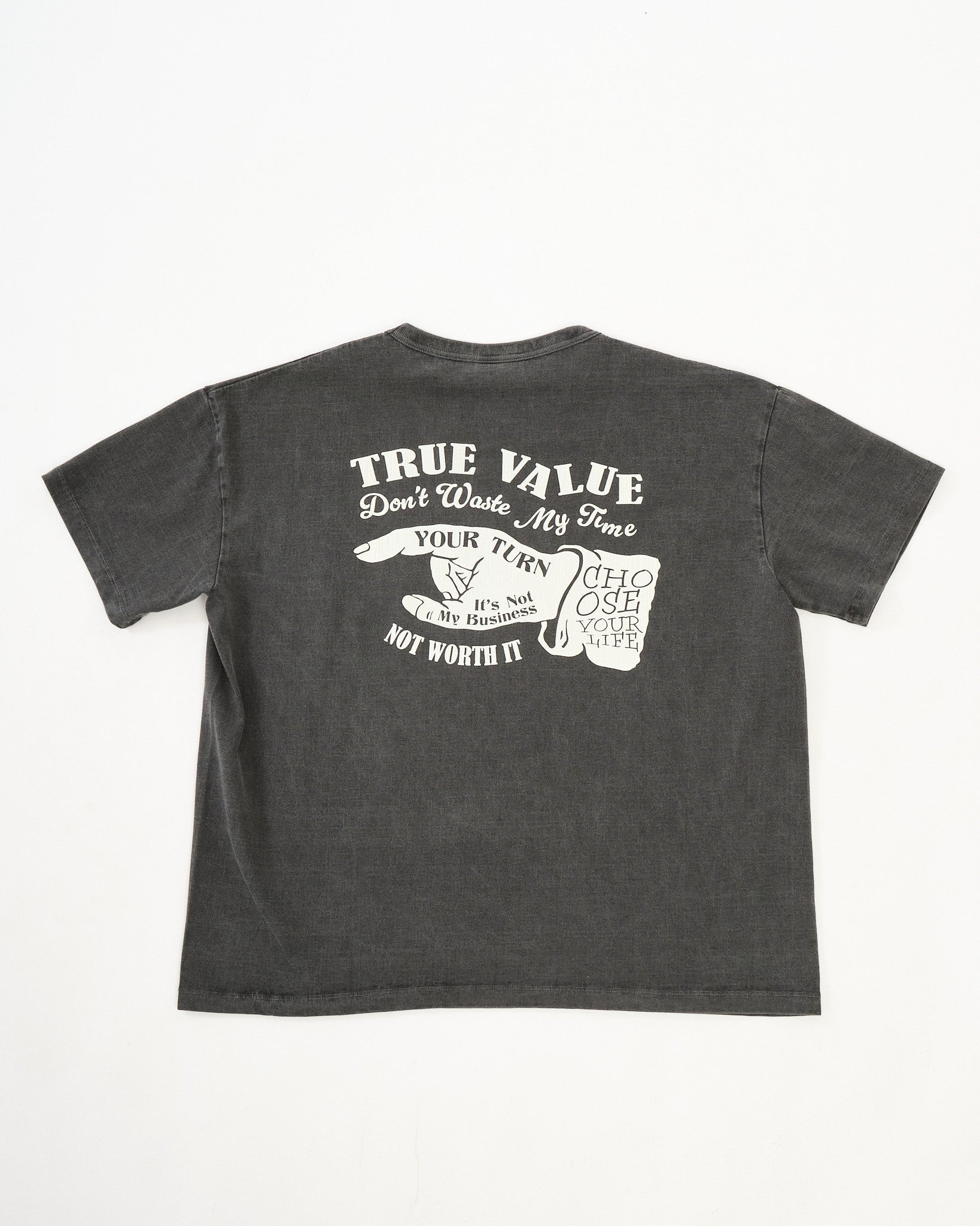 The graphic draws inspiration from the iconic “You Pay” spinner, a nostalgic novelty item once used by American beverage companies. For Spring/Summer 2026, the tee is finished with a pigment dye process, giving the black base a softly faded tone that adds depth while keeping it easy to wear.