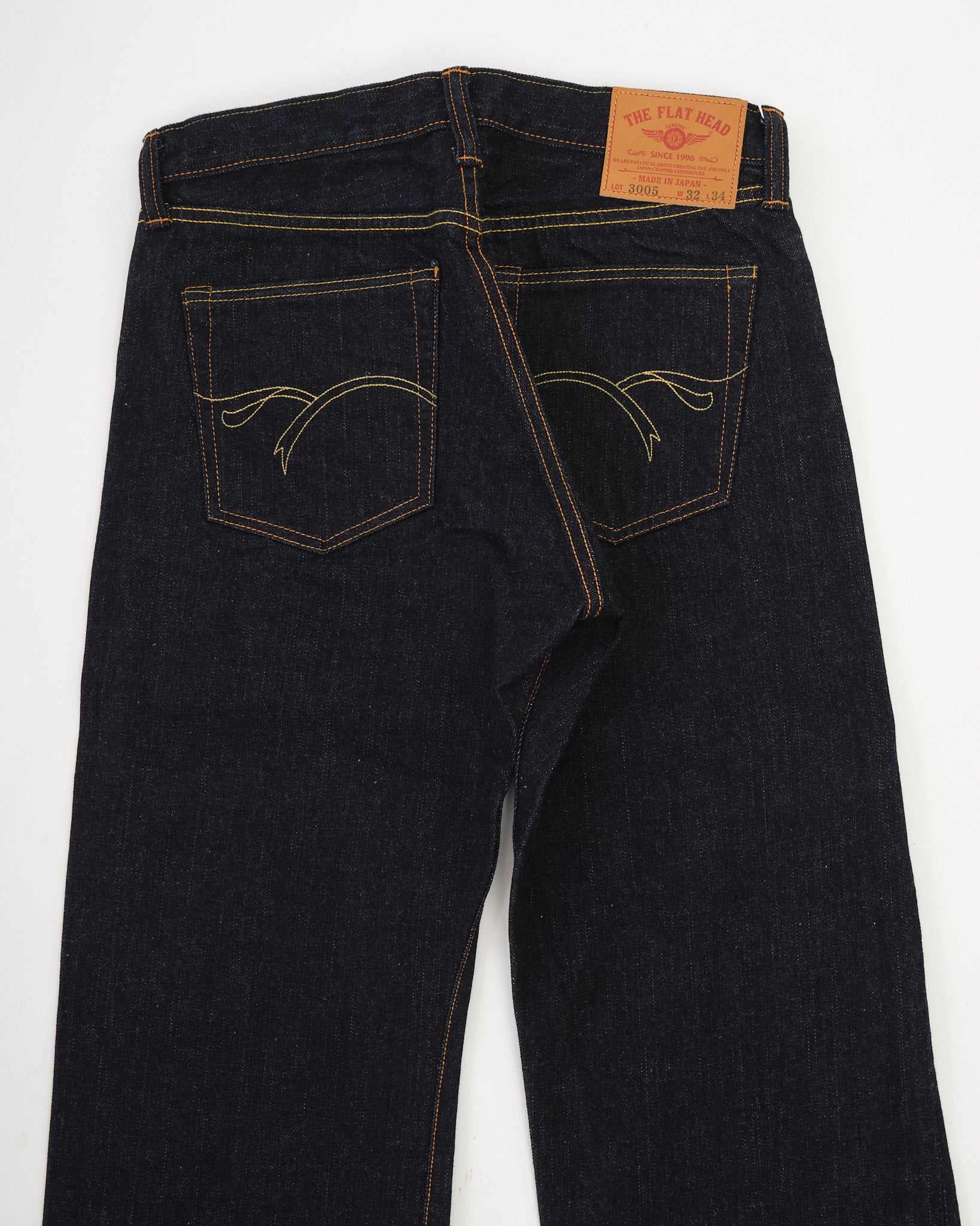 Hvert par er vasket én gang, noe som bevarer denimens tekstur samtidig som det sikrer en komfortabel passform fra første bruk. Laget i Japan, eksemplifiserer FN-3005 The Flat Heads forpliktelse til kvalitetshåndverk, og skaper jeans som utvikler seg vakkert med tid og bruk.