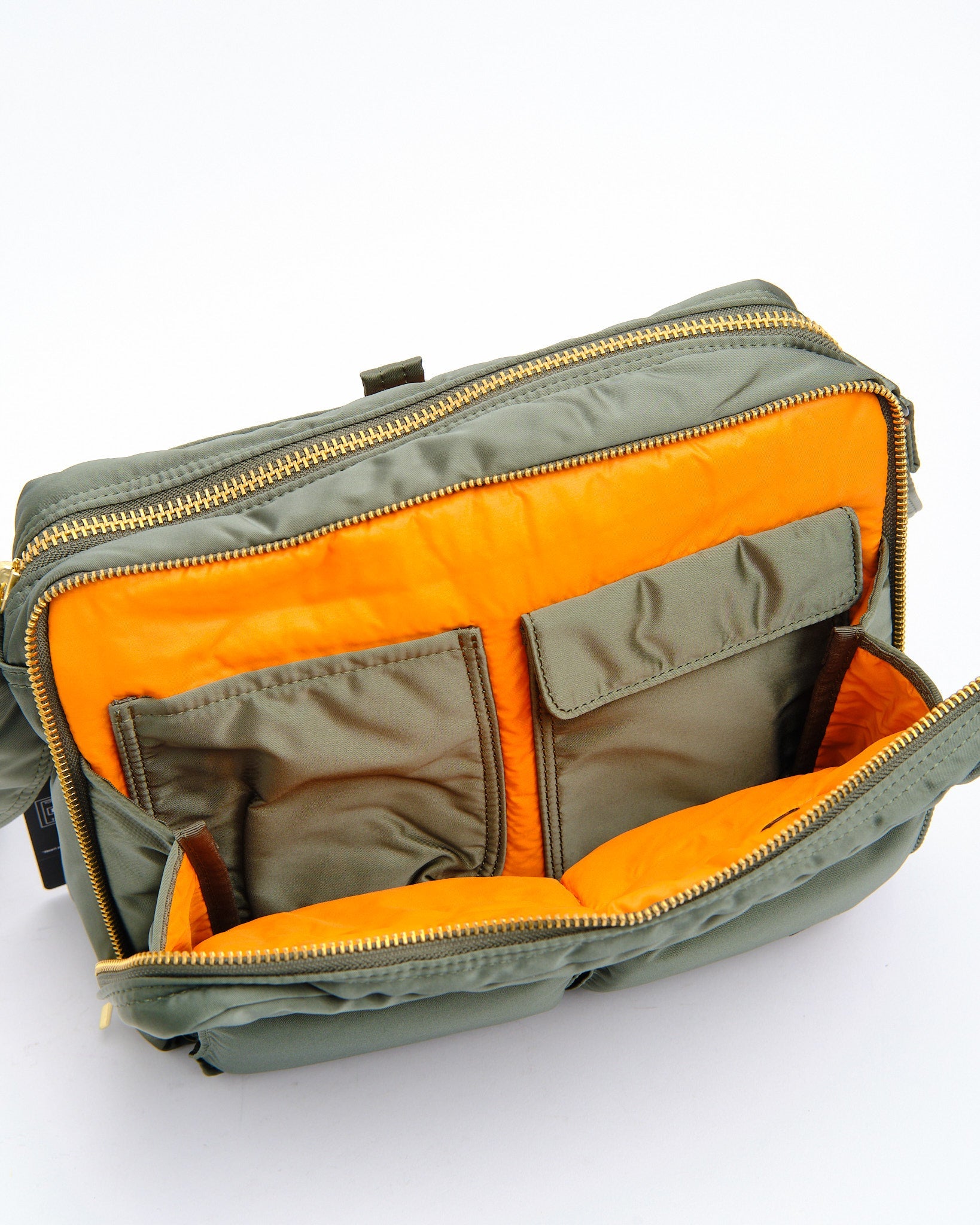 Den PORTER BY YOSHIDA Tanker Sling Bag W Zip (L) (622-08633-30) i Salviegrønn er en større versjon av den klassiske Tanker Sling Bag fra den nylig oppdaterte New Tanker-serien. Laget av 100% plantebasert nylon, fremstilt av mais og ricinusoljeplanter, kombinerer denne slingvesken holdbarheten fra den ikoniske Tanker-samlingen med moderne oppdateringer. Produsert av Toray Industries, tilbyr stoffet styrke, mykhet, og en vakker glans, samtidig som det er miljøvennlig.