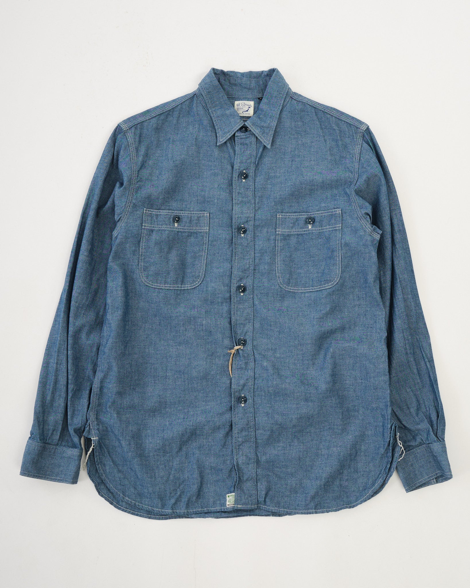 Skjem bort deg selv i det tidløse designets rike med SLIM FIT CHAMBRAY ARBEIDSSKJORTEN fra orSlows. Dette ekstraordinære plagget har vært en del av merkets kolleksjon siden 2008 og tar inspirasjon fra arbeidsskjorter fra 1940-tallet. Den blå chambray-stoffet, farget ved hjelp av en tauingsteknikk, forvandles nådig over tid og skaper et kjært utviklende estetikk med hvert bruk. Nøye håndlaget i Japan med høykvalitets 4.5OZ ORIGINAL CHAMBRAY-stoff, viser denne skjorten frem en sofistikert passform, komplett med to brystlommer og et brodert merkevaremerke. Den fanger virkelig essensen av eleganse.
