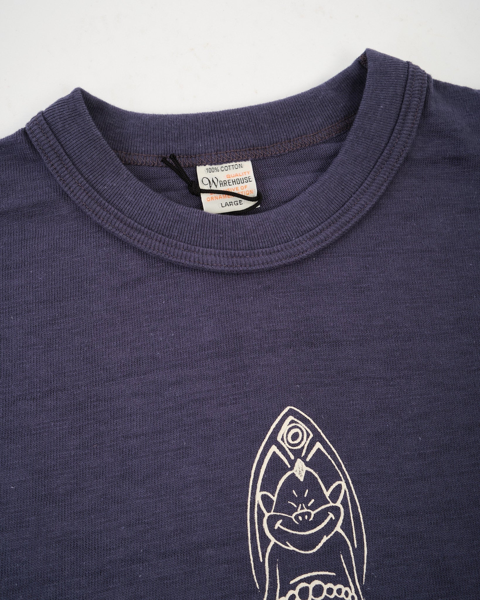 WAREHOUSE Lot 4601 T-skjorten i Eggeplante er en del av et spesielt samarbeid med den anerkjente japanske kunstneren Yusuke Hanai. Laget av premium slubby bomull, viser den frem Hanais særegne "TING SOM DE BURDE VÆRE" kunstverk, som blander vintage estetikk med samtidsstil. Det myke, teksturerte stoffet og høykvalitets trykket gjør dette til et fremtredende stykke for enhver garderobe, som kombinerer kunstnerisk uttrykk med hverdagskomfort.