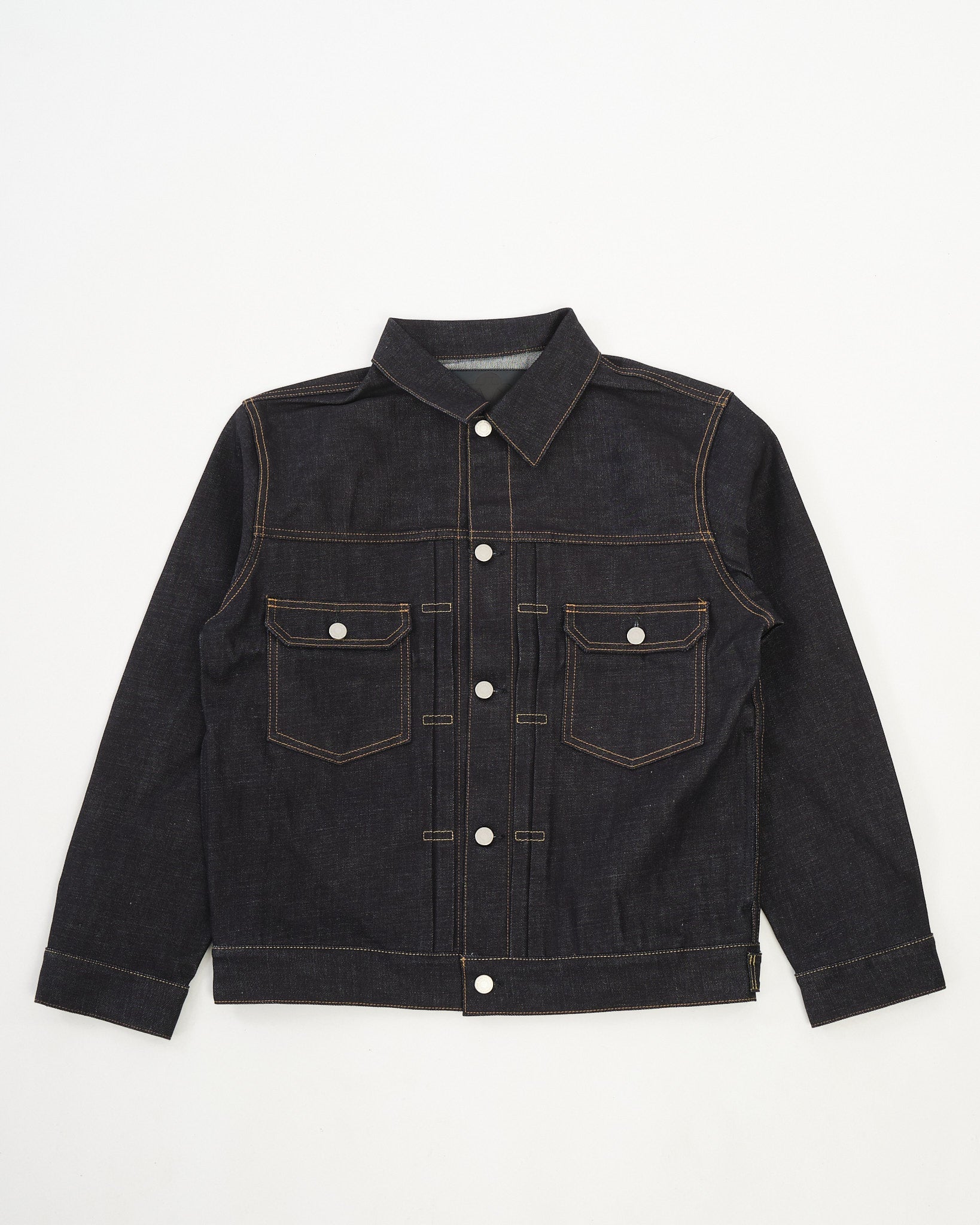 The #002 Denim Jacket in 14.7oz Tokuno Blue by Momotaro is a refined take on a classic silhouette, crafted from rigid, unwashed denim woven from 100% Zimbabwe cotton. Dyed in the brand’s signature 特濃 Tokuno Blue, this fabric offers a strikingly deep indigo tone and twill texture that will evolve beautifully with wear. The fit is clean and balanced, featuring a relaxed body width and moderate length for comfort without bulk. Functional side pockets enhance everyday utility, while the jacket’s pattern is tailored for graceful movement and a sharp silhouette. Treated to reduce post-wash shrinkage, this unwashed piece offers classic denim purity with a thoughtful modern update.