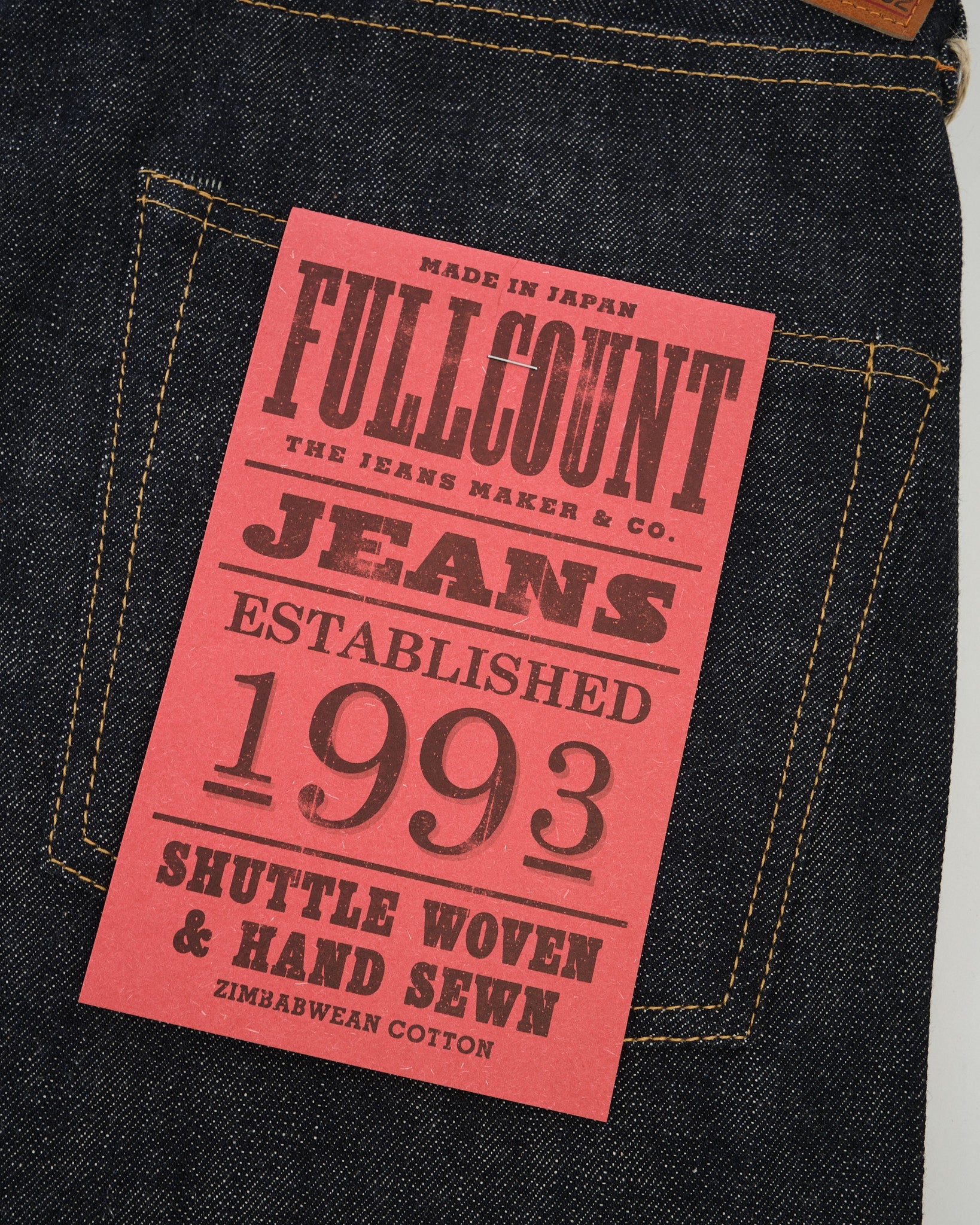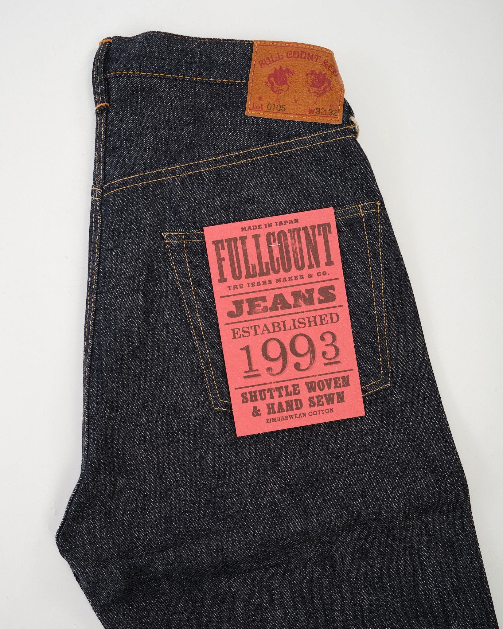 The Full Count 0105 Wide Denim is a true showcase of Zimbabwean cotton at its finest. Crafted from 100% Zimbabwean cotton and woven into 13.7oz denim, these jeans are produced with the ideal tension to highlight the fibre’s natural softness, resilience, and beautifully uneven texture.