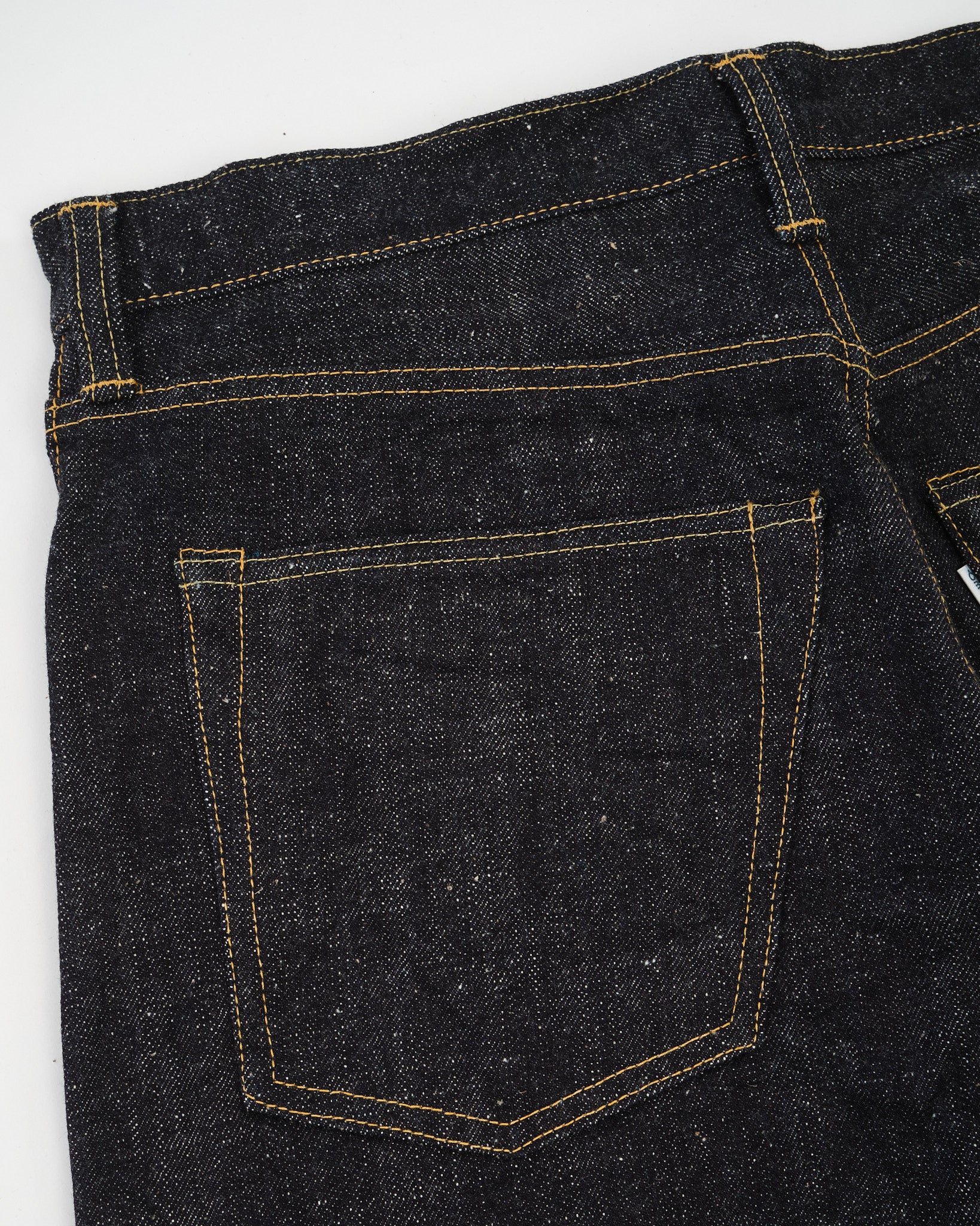 Widest fit in the OMOTO lineup with deep rise Loose, straight silhouette for relaxed wear Inspired by tailor-made trousers for balanced comfort 15.5oz denim with slub warp and nep weft yarns Nep yarns made from recycled cotton add texture Distinctive vertical fading and unique patina with wear Woven on vintage Toyoda shuttle looms under low tension 100% pure indigo rope-dyeing for strong contrast fades Unsanforized denim with one-wash finish (shrink-to-fit adjusted) Retains the natural texture and character of raw cotton