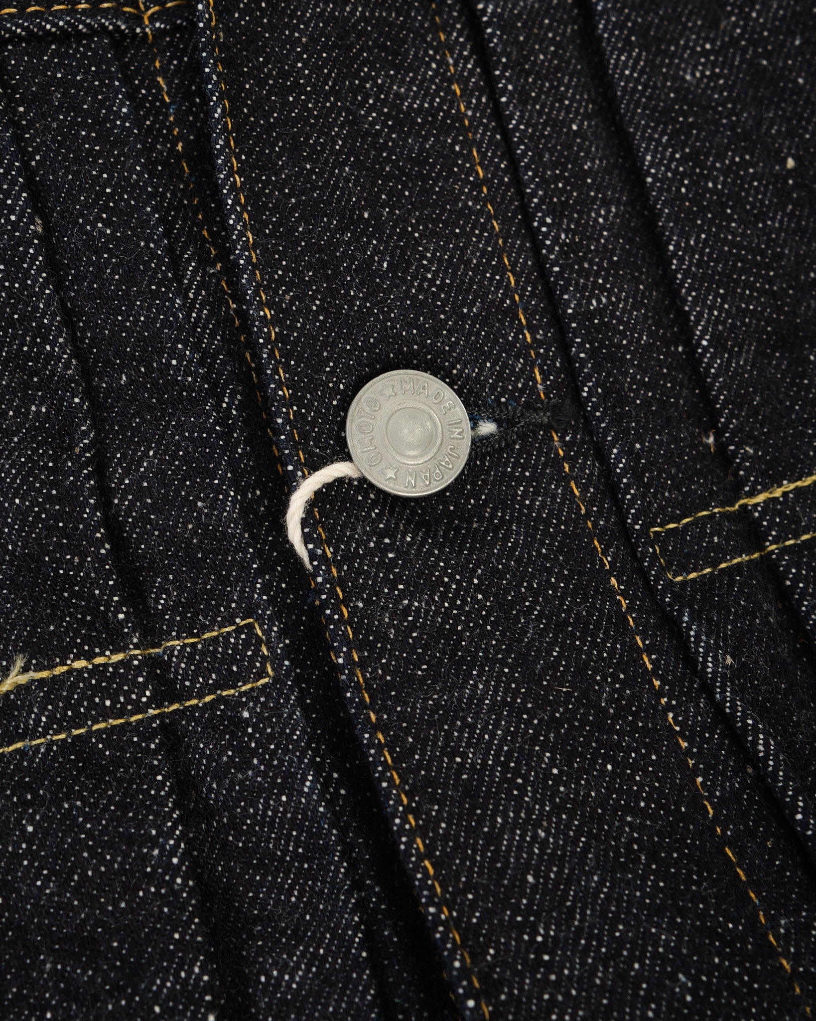 Made from a rugged 15.5oz slub-nep denim, the warp is spun from long-slub yarns while the weft incorporates nep yarns crafted from recycled cotton. This fabric, woven under extremely low tension on vintage Toyoda shuttle looms, produces rich vertical fading and a tactile roughness that evolves with wear. Rope-dyed with 100% pure indigo, the yarns fade from an extra-dark indigo surface into a striking white core, delivering dramatic contrast fades over time. Finished with a one-wash treatment, the jacket maintains the raw character of cotton while being ready to wear from day one.