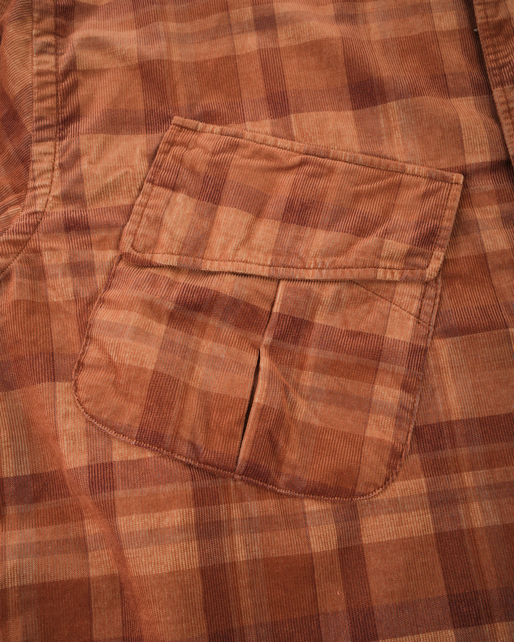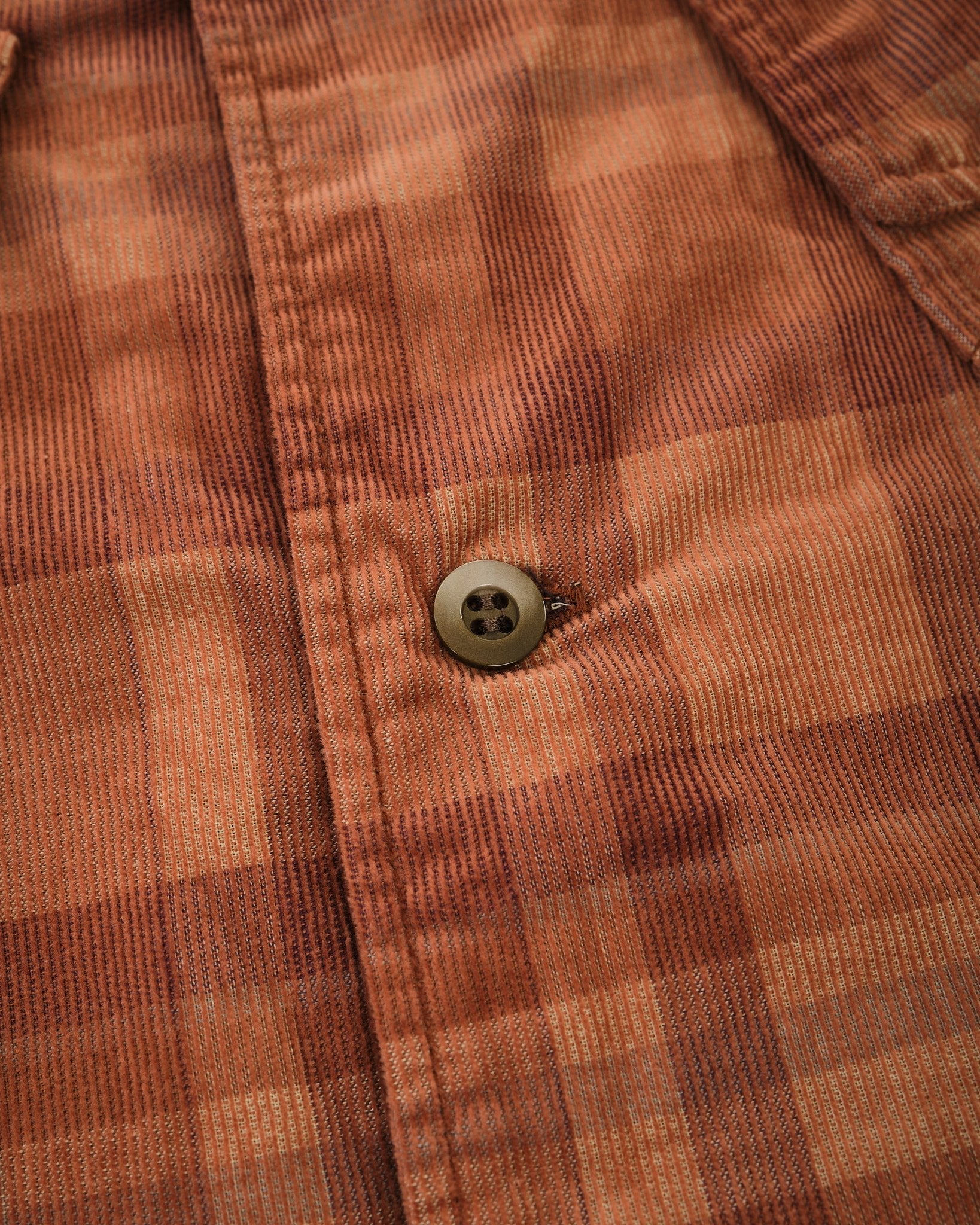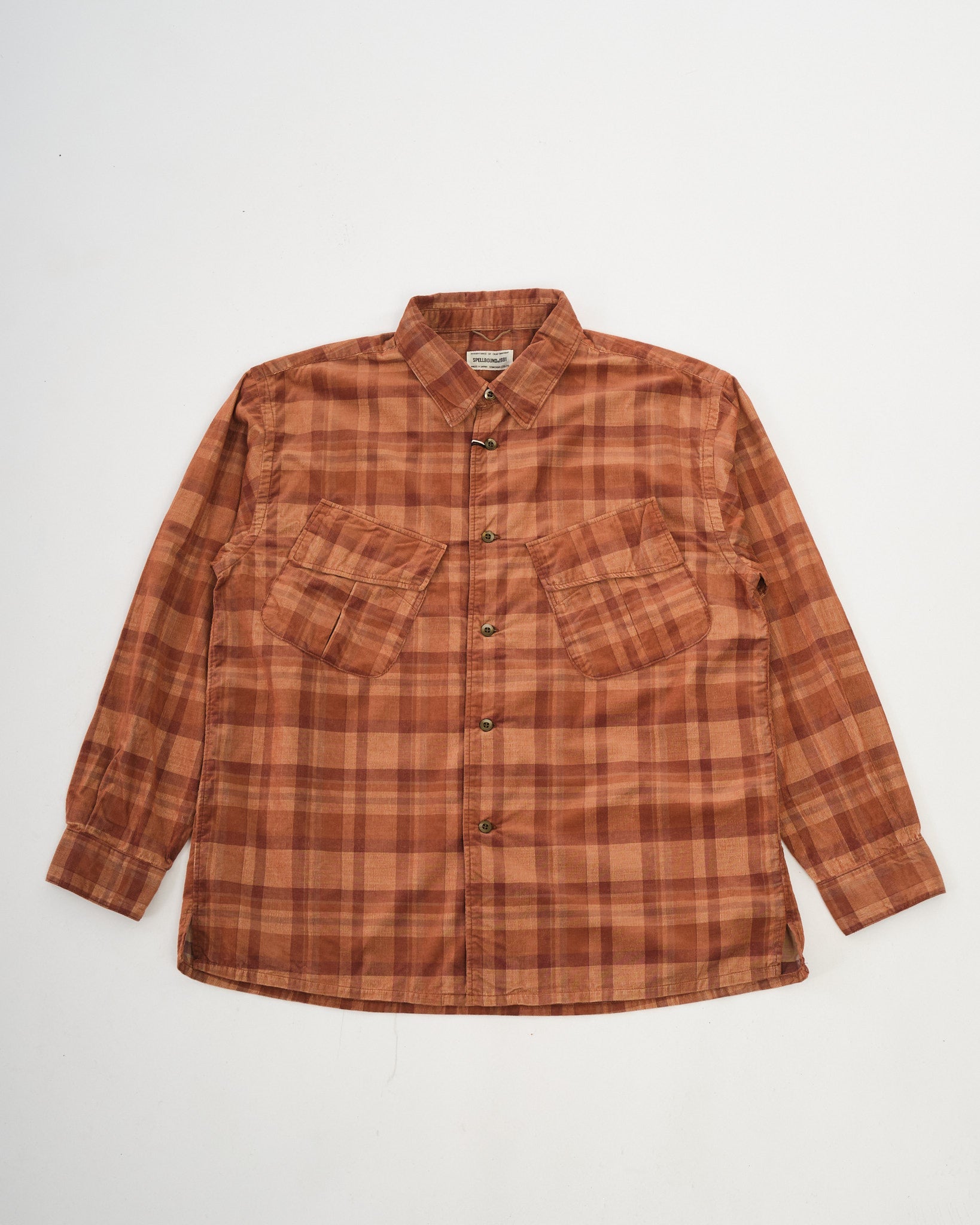 The 47-704H Fatigue Shirt from Spellbound reimagines classic military workwear in a bold orange tone. Crafted in Japan from durable cotton back satin, it’s garment-dyed for depth of colour and a soft, broken-in feel from day one. Featuring double chest pockets, tonal buttons, and triple-needle stitching, this piece blends rugged utility with refined construction. Wear it as a lightweight jacket or as a casual shirt — either way, it’s built to last and designed to age beautifully.