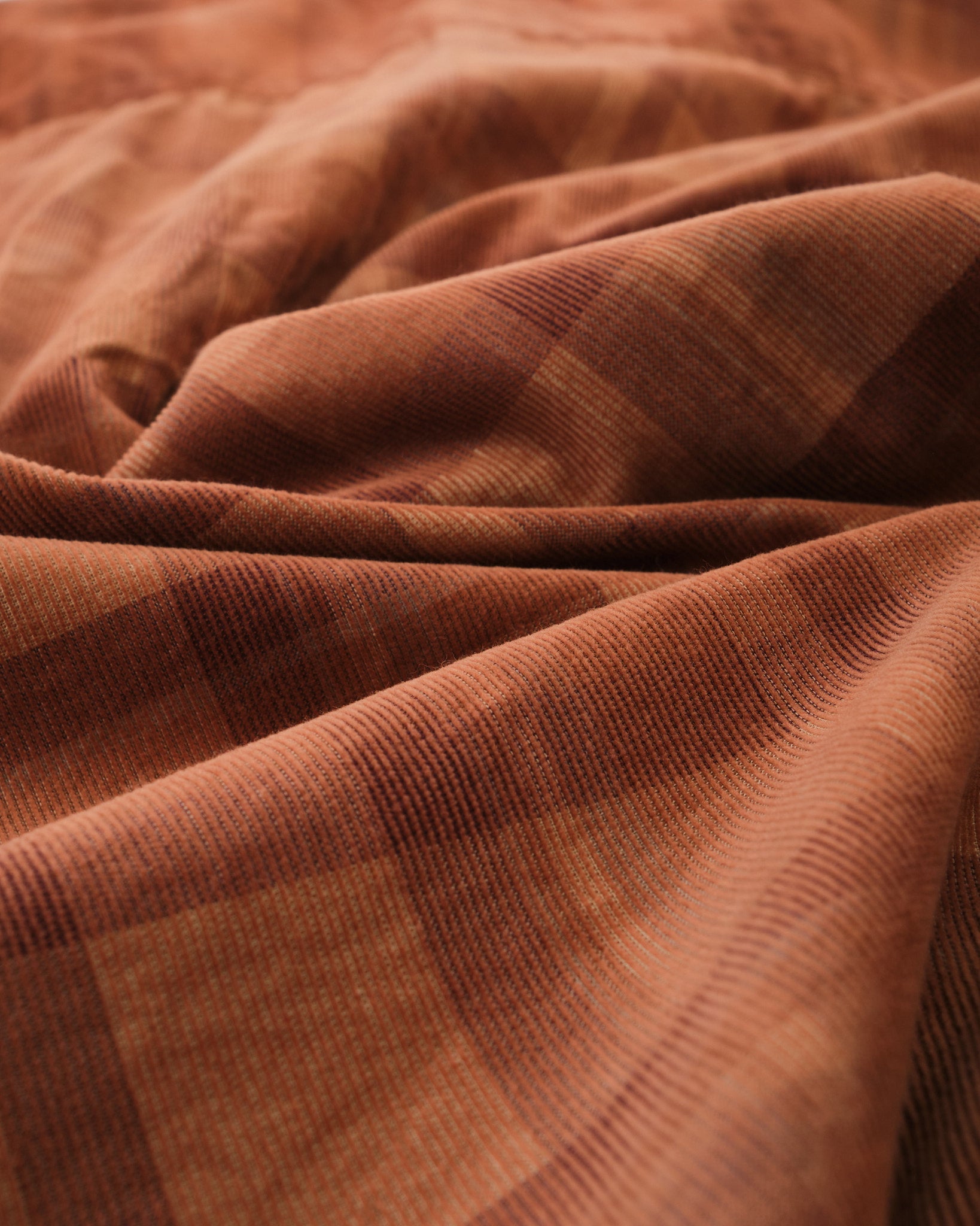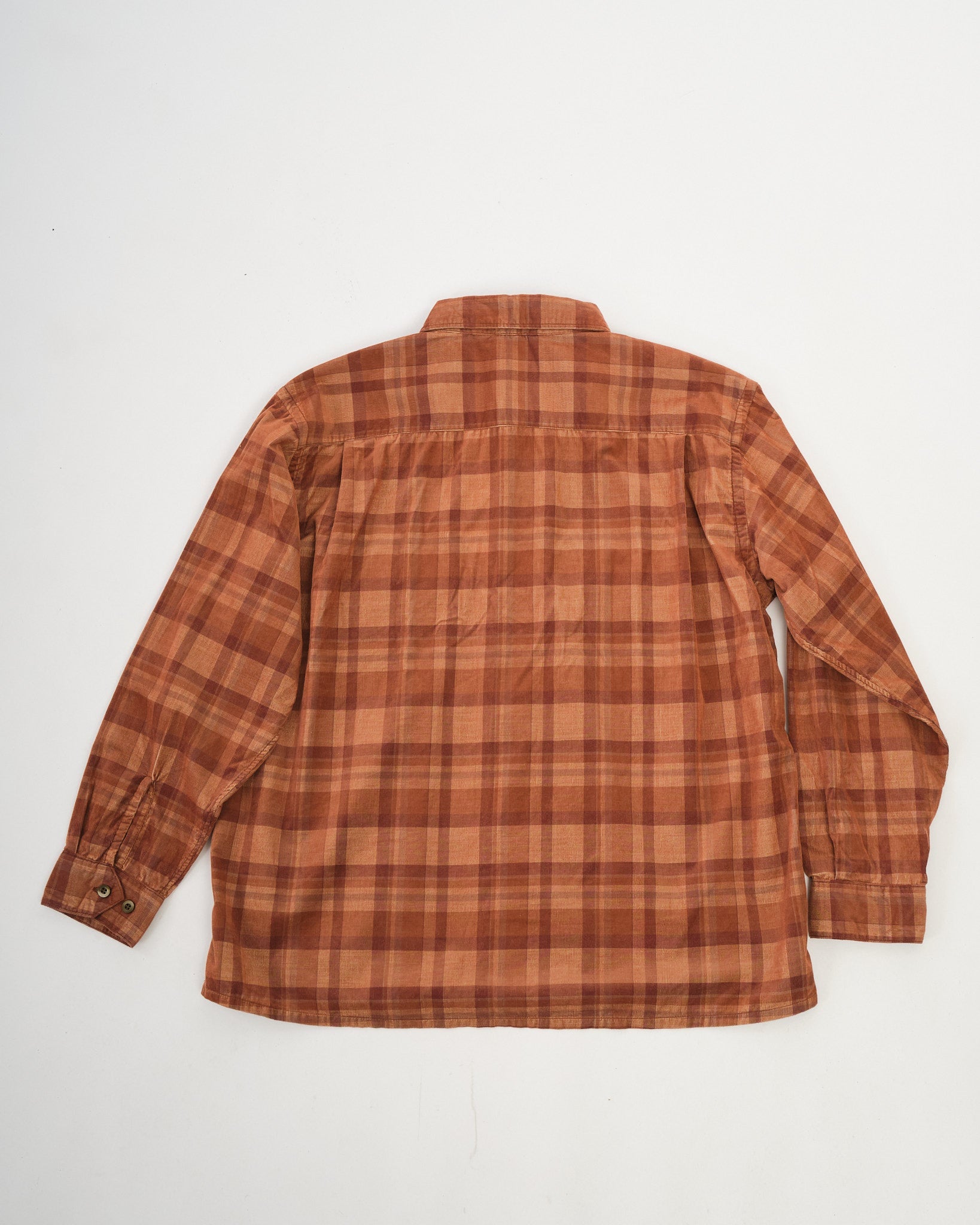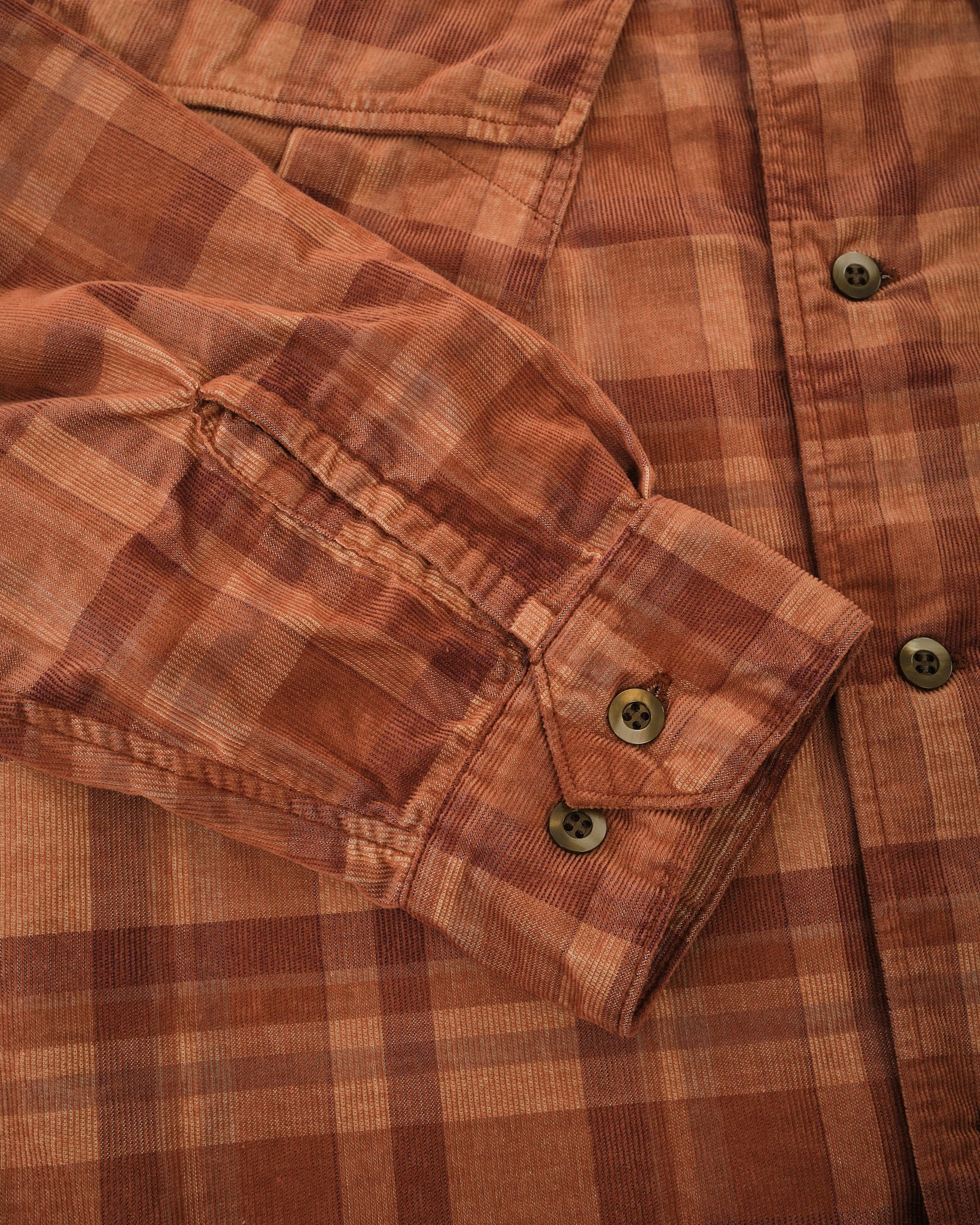 The 47-704H Fatigue Shirt from Spellbound reimagines classic military workwear in a bold orange tone. Crafted in Japan from durable cotton back satin, it’s garment-dyed for depth of colour and a soft, broken-in feel from day one. Featuring double chest pockets, tonal buttons, and triple-needle stitching, this piece blends rugged utility with refined construction. Wear it as a lightweight jacket or as a casual shirt — either way, it’s built to last and designed to age beautifully.