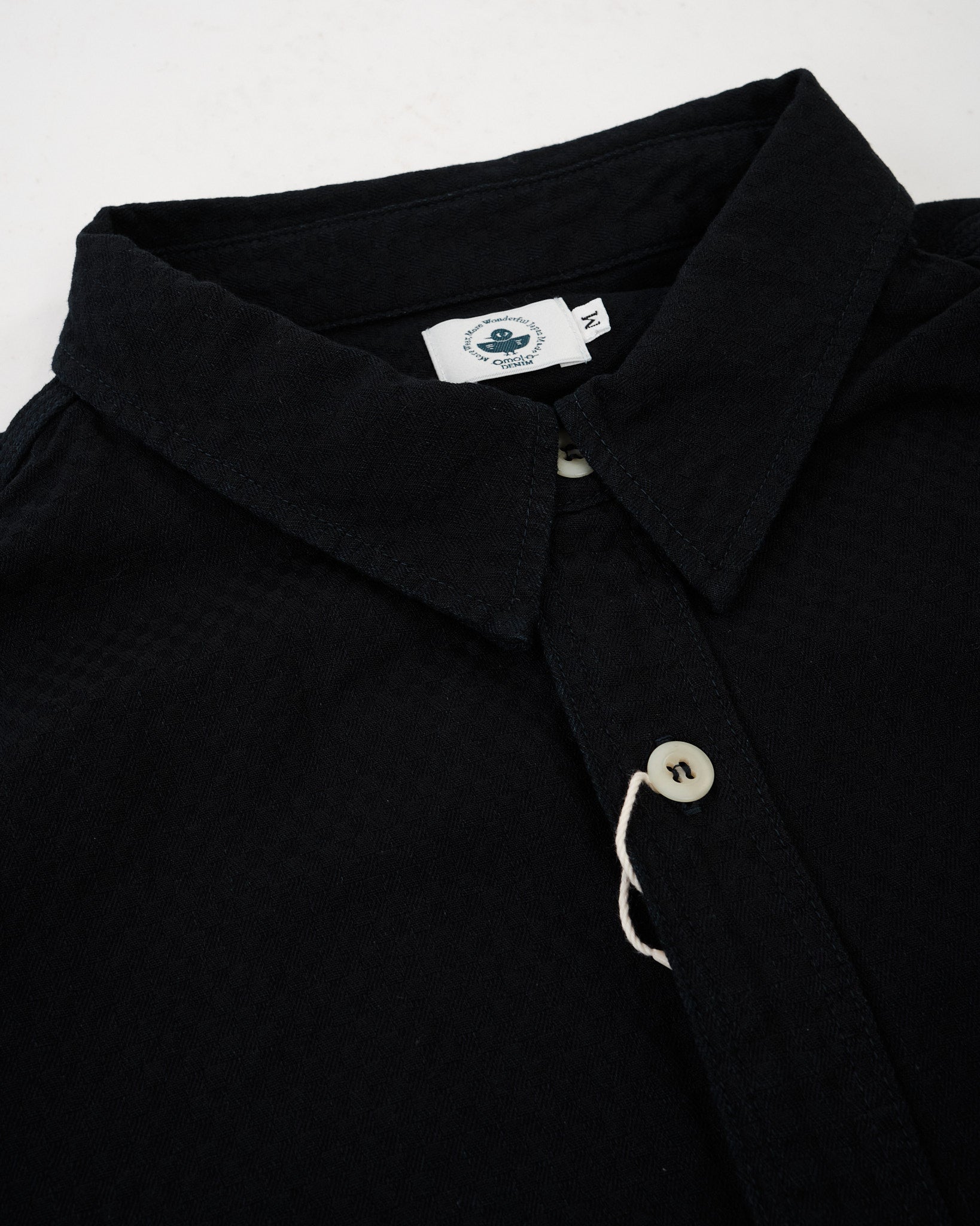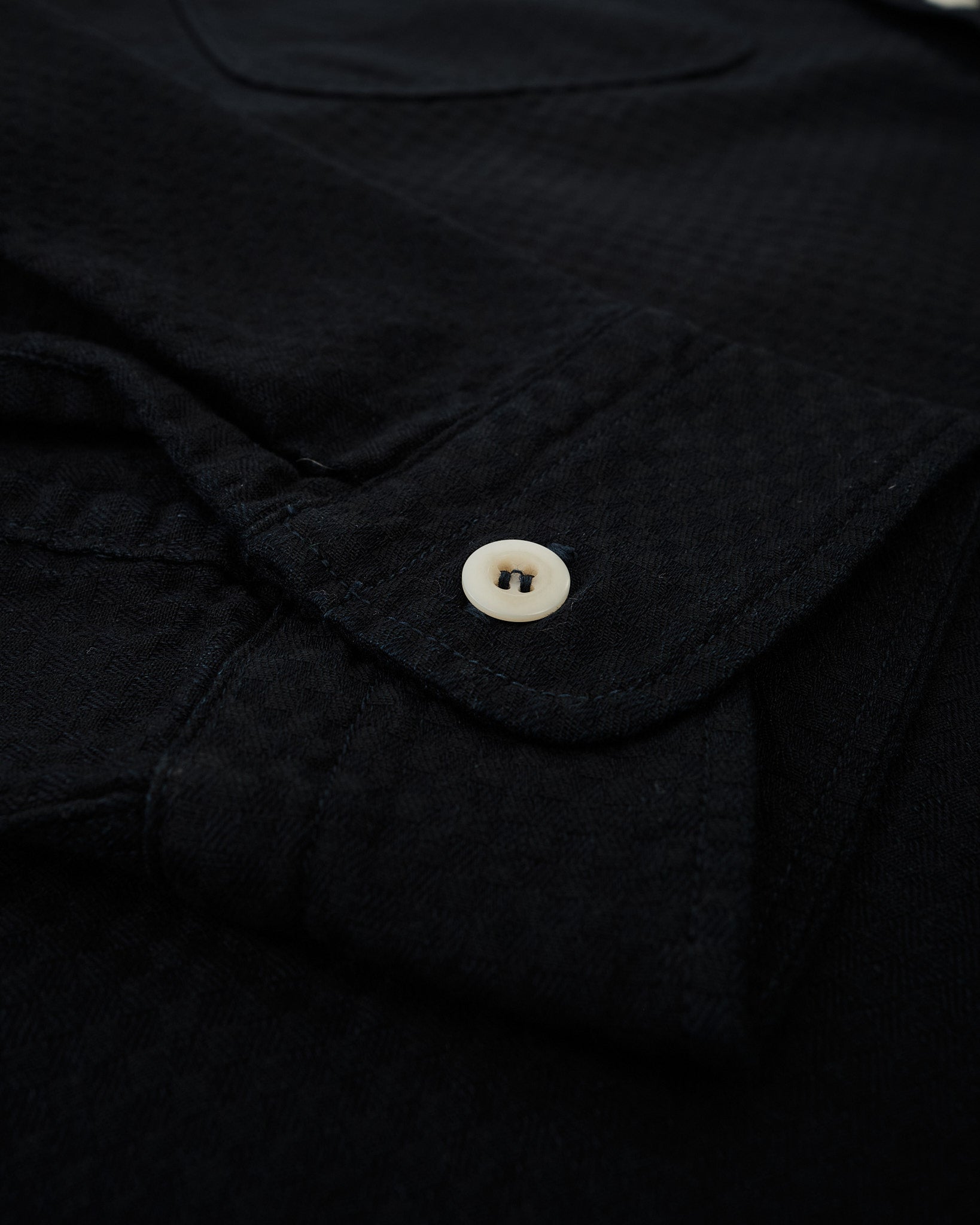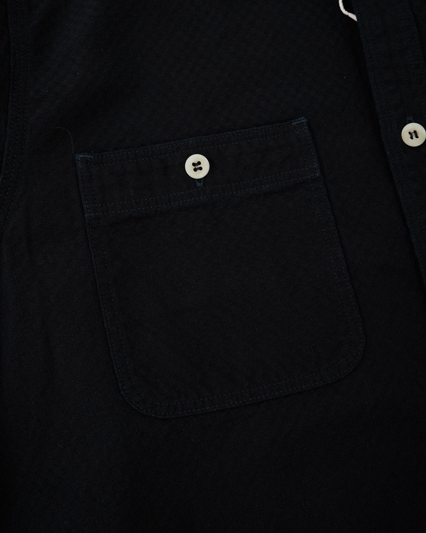 Key details include OMOTO’s blue-green “MIMI” selvedge, original metal buttons, and reinforced stitching for long-lasting wear. A classic work shirt silhouette makes this a timeless staple, blending heritage craftsmanship with modern styling.
