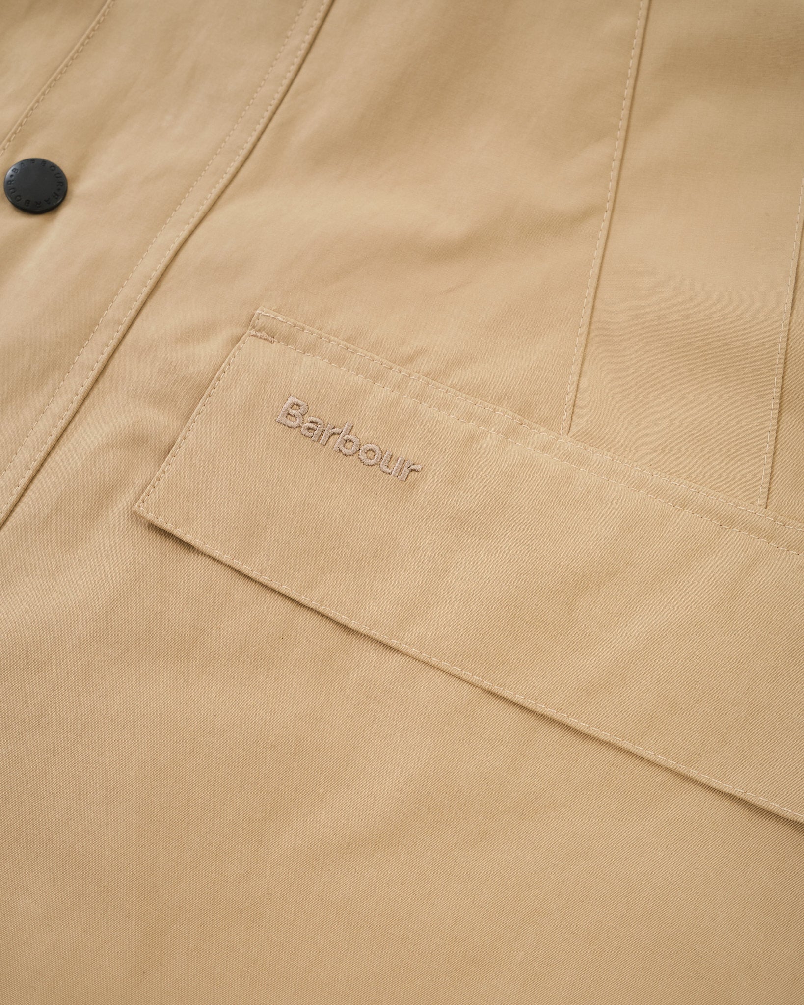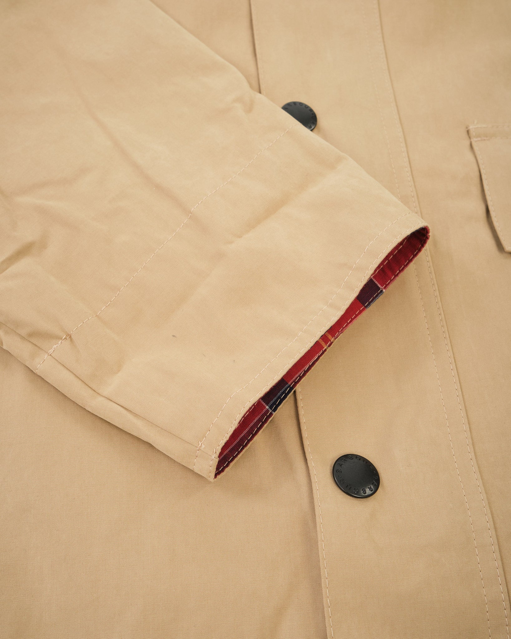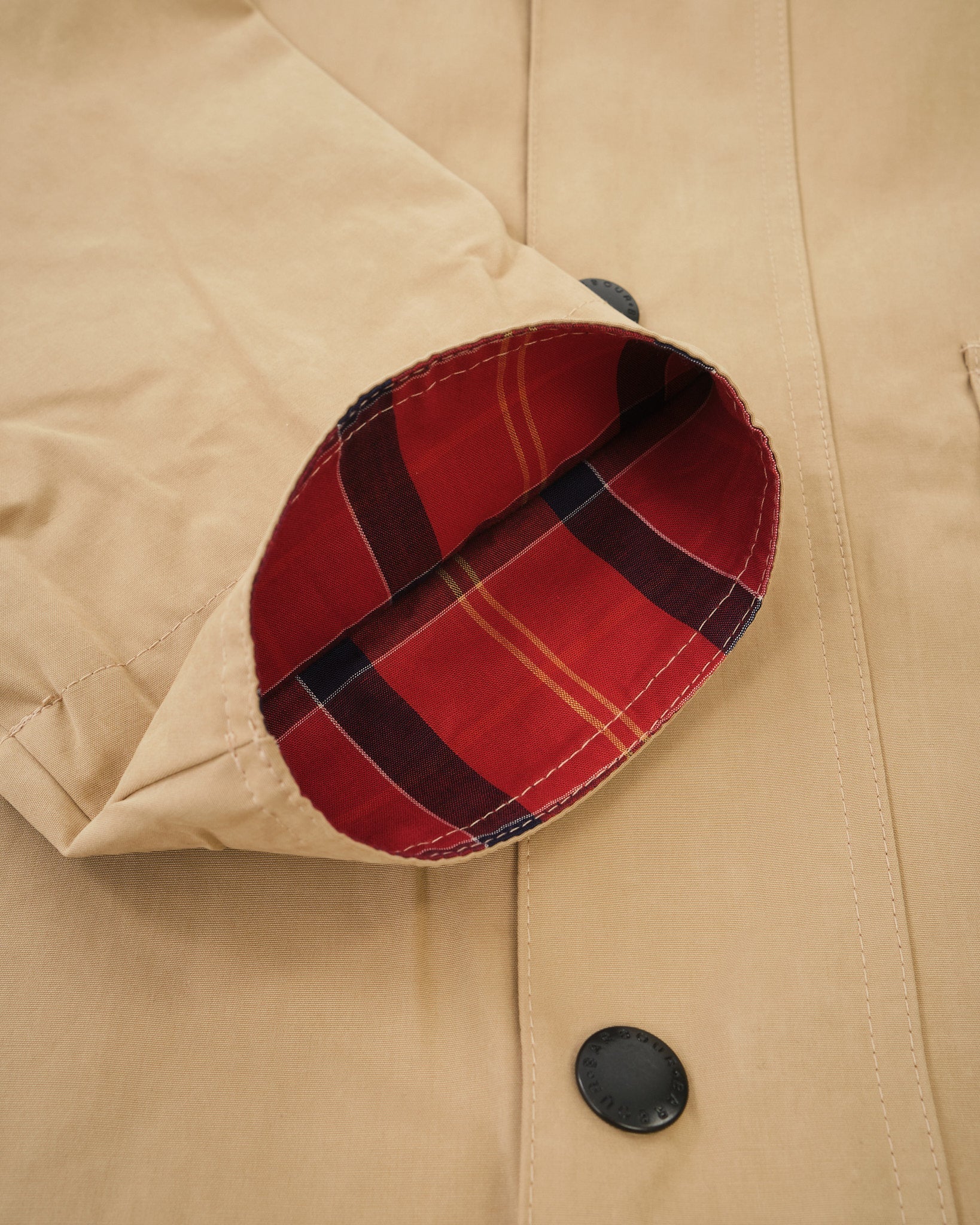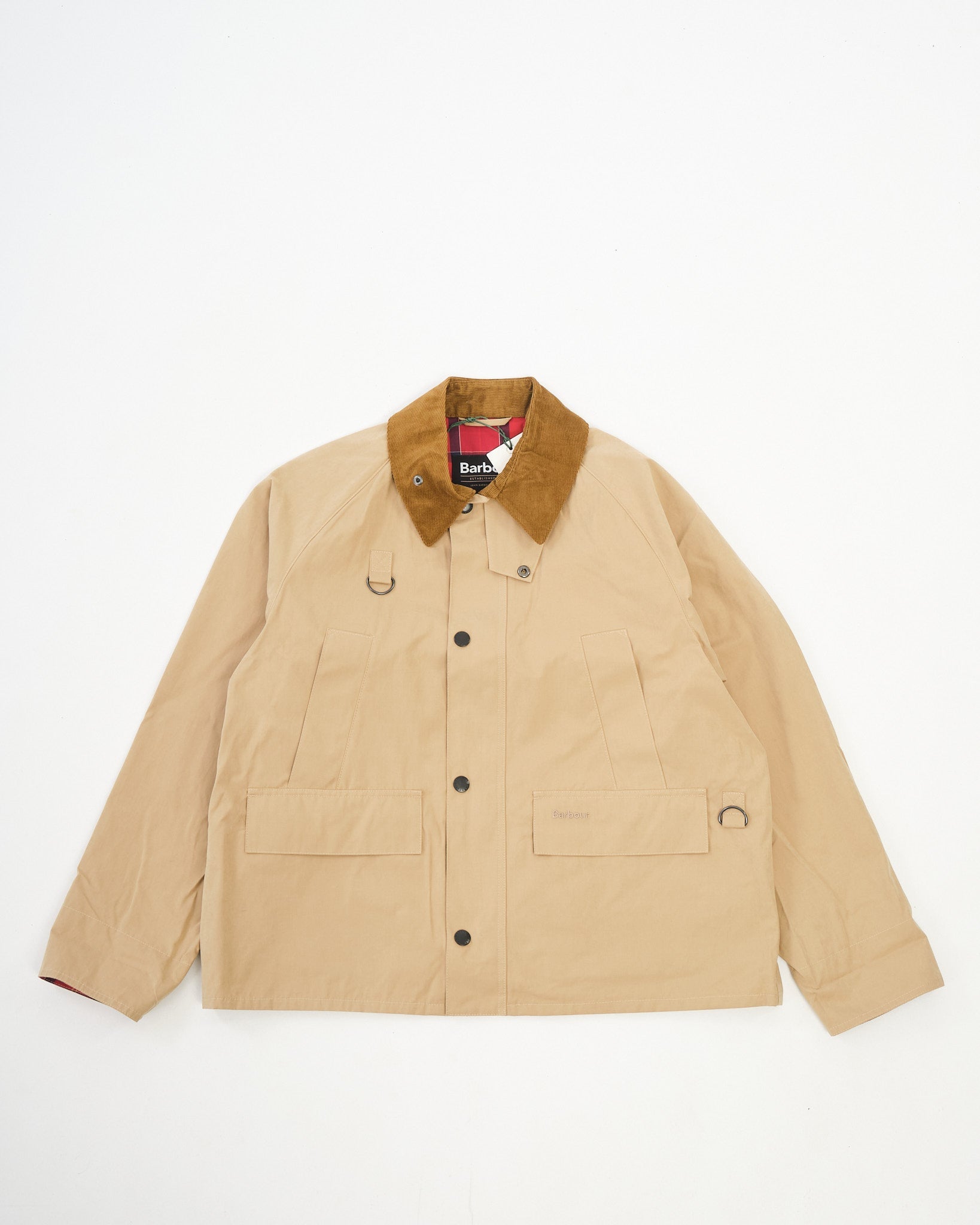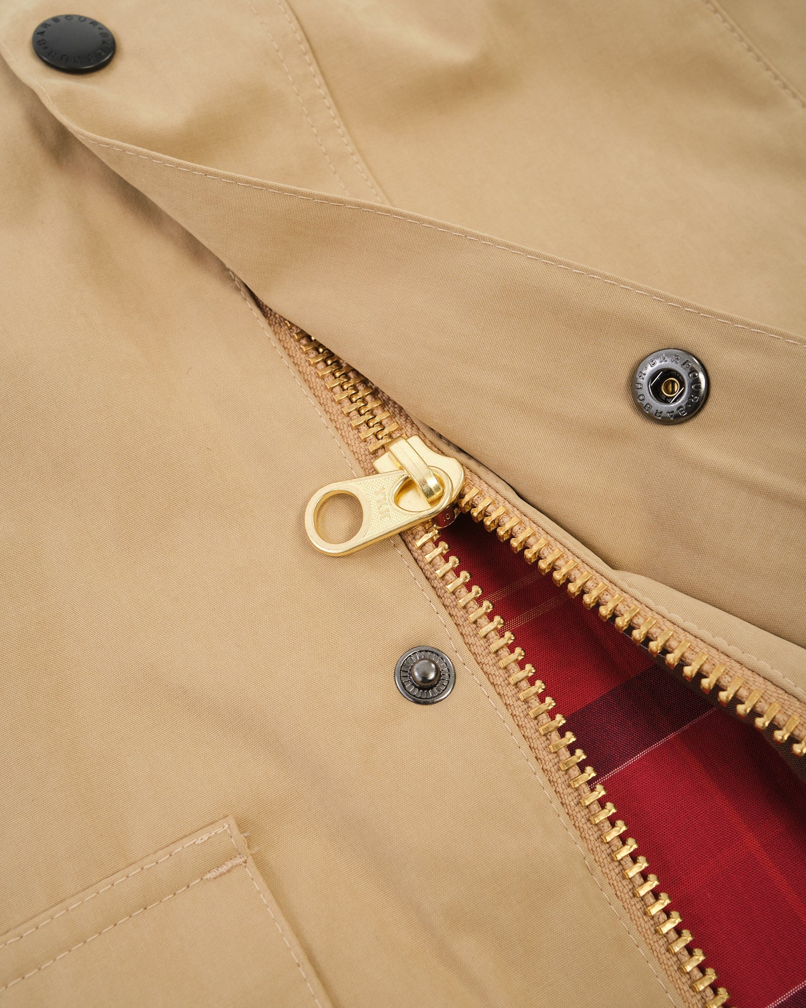 The Barbour Solar Spey Casual Jacket in Stone is a limited-edition reinterpretation of the classic Spey silhouette, released in celebration of Lunar New Year. Crafted from Barbour’s signature waxed cotton-touch fabric, it offers a lightweight, weather-resistant outer layer with a crisp finish. The interior features a bold red version of Barbour’s iconic tartan lining, symbolizing good fortune in Chinese culture. Design details include a corduroy collar with throat strap, two large front flap pockets, a zip front with snap-close storm placket, and a red top stud fastening accompanied by a Barbour Lunar New Year pin badge. This jacket blends heritage design with festive detailing, making it a standout piece for the season.