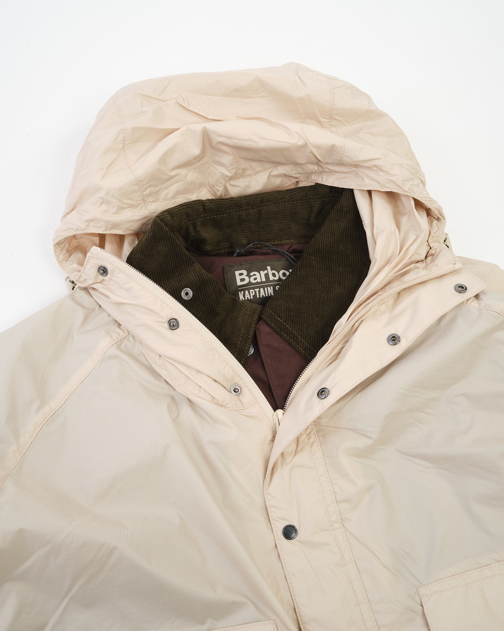 The main coat is made from a durable 200g canvas and features Barbour’s signature bellows pockets, handwarmer pockets, and a classic corduroy collar. Adjustable cuffs and a large rear vent enhance comfort and freedom of movement. Completing the design is a removable overlayer, crafted from a lightweight fabric and inspired by the compact, utilitarian Barbour Spey Jacket.
