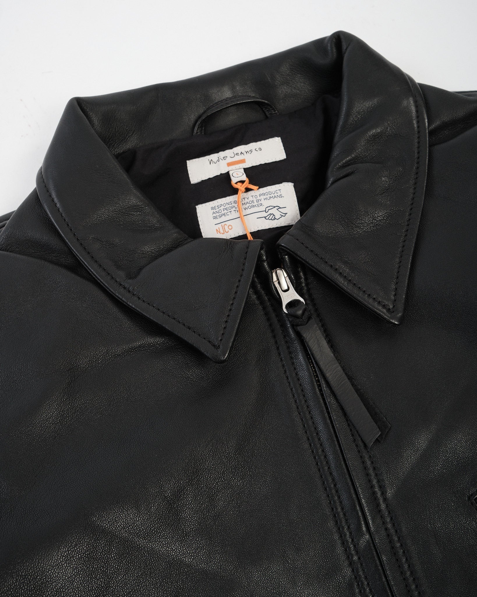 The 160985 Blake Zip Jacket Leather is crafted from vegetable-tanned lambskin with a super supple, soft hand and a short, boxy silhouette in a regular fit. It’s fully lined in a recycled polyamide/organic cotton blend for smooth layering, and finished with corozo buttons and antique silver trims for a nicely understated hardware look. Inside you’ll find two jetted pockets for essentials, plus adjustable cuffs and side tabs so you can dial in the fit. Produced in a gold-rated tannery with a focus on responsible manufacturing, including a verified living-wage contribution.
