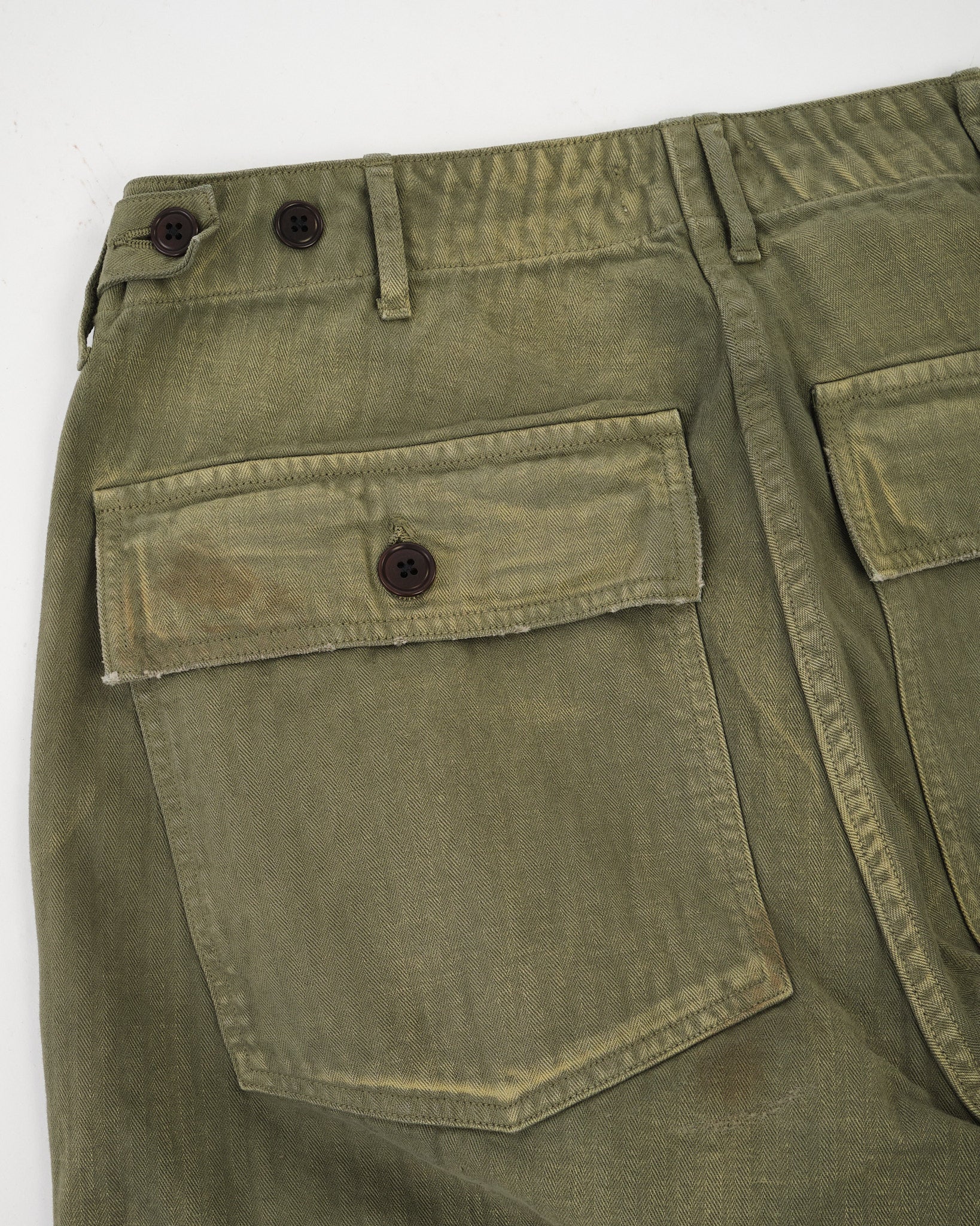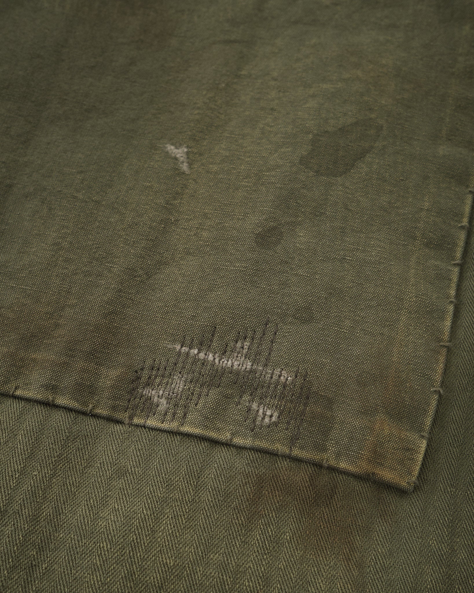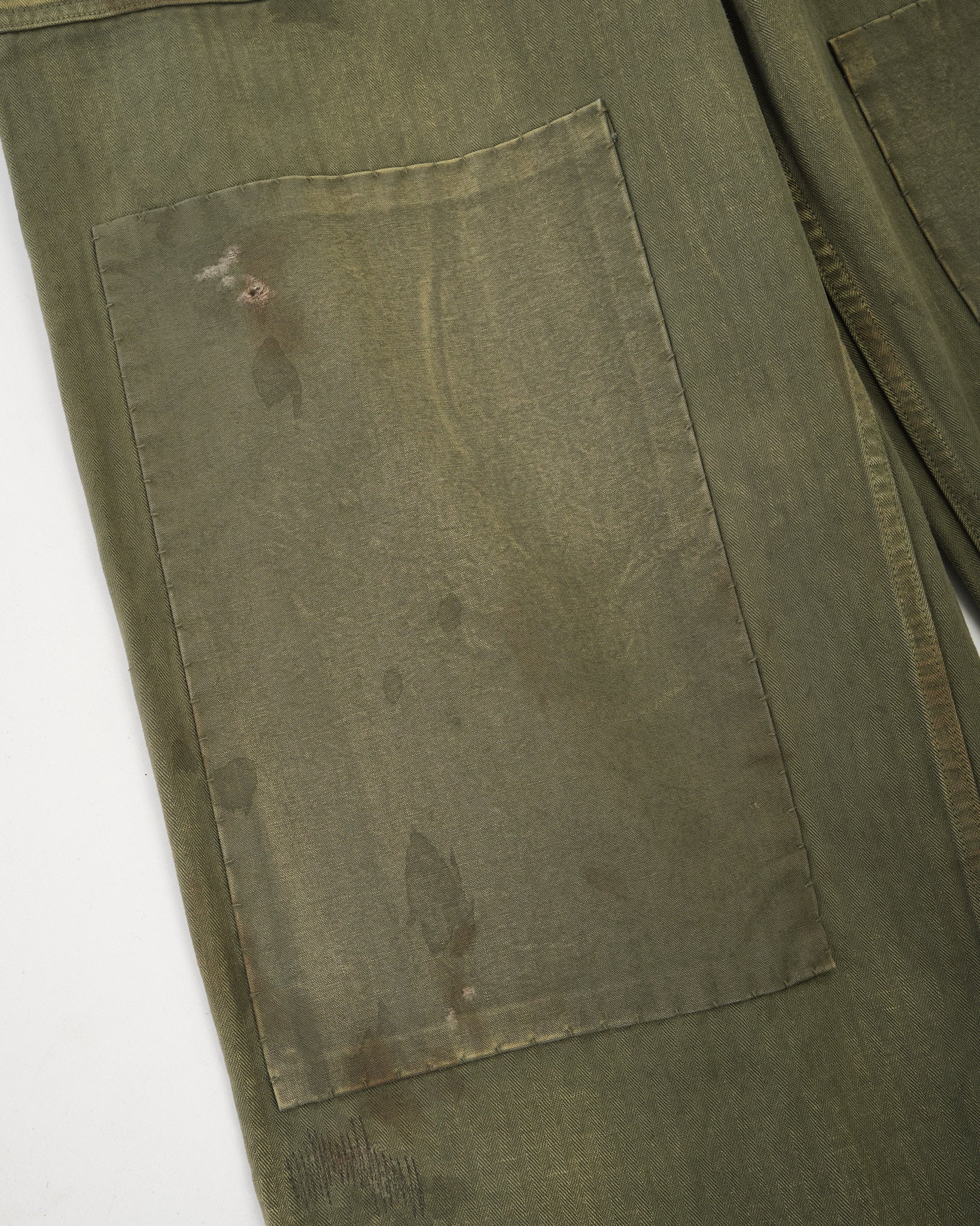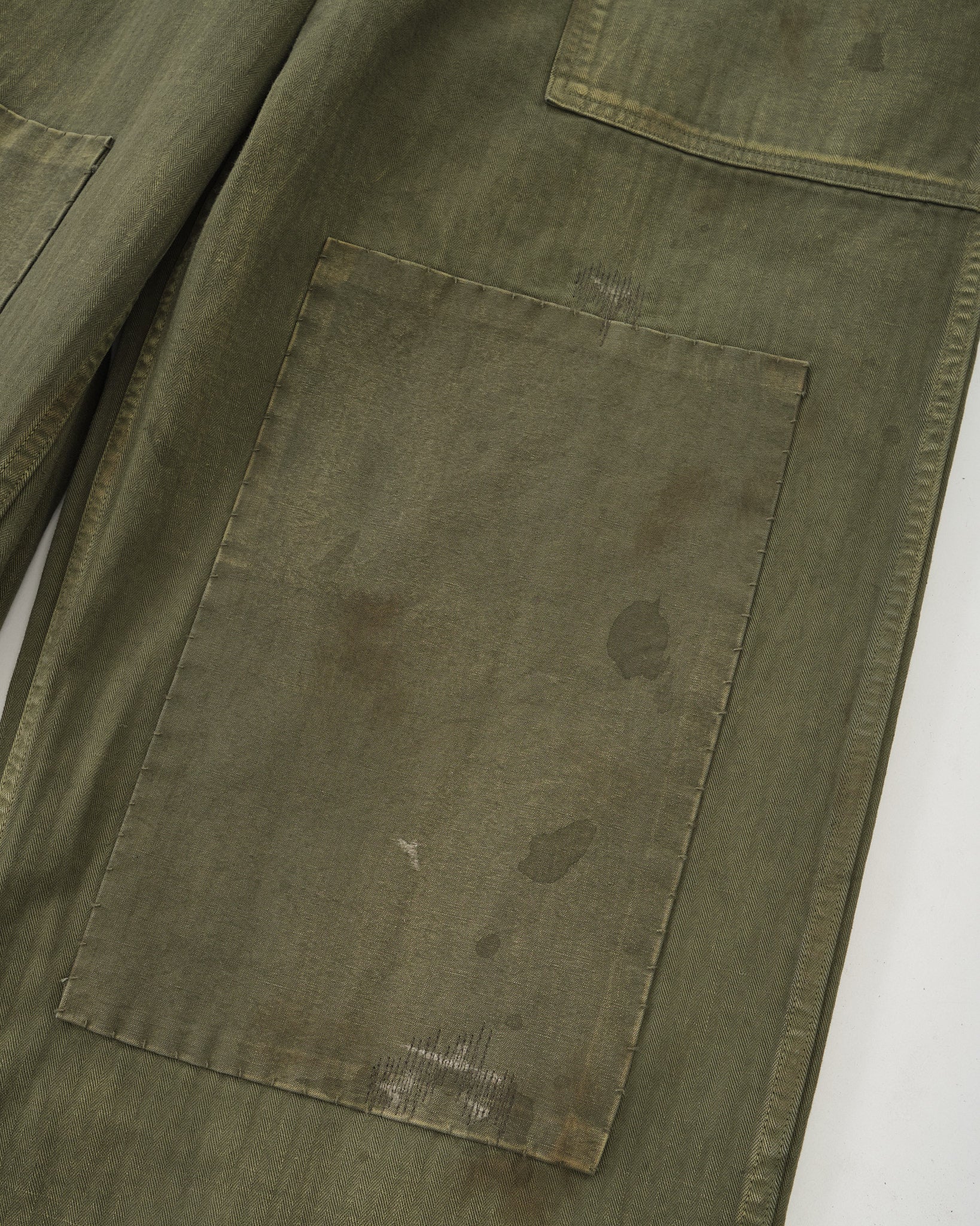 Featuring a relaxed fit, these pants incorporate boro-style patchwork detailing, creating a unique textured look that evolves beautifully over time. The olive colorway enhances the vintage military appeal, making them a versatile choice for everyday wear. Made in Japan, they are a testament to expert craftsmanship and timeless design.