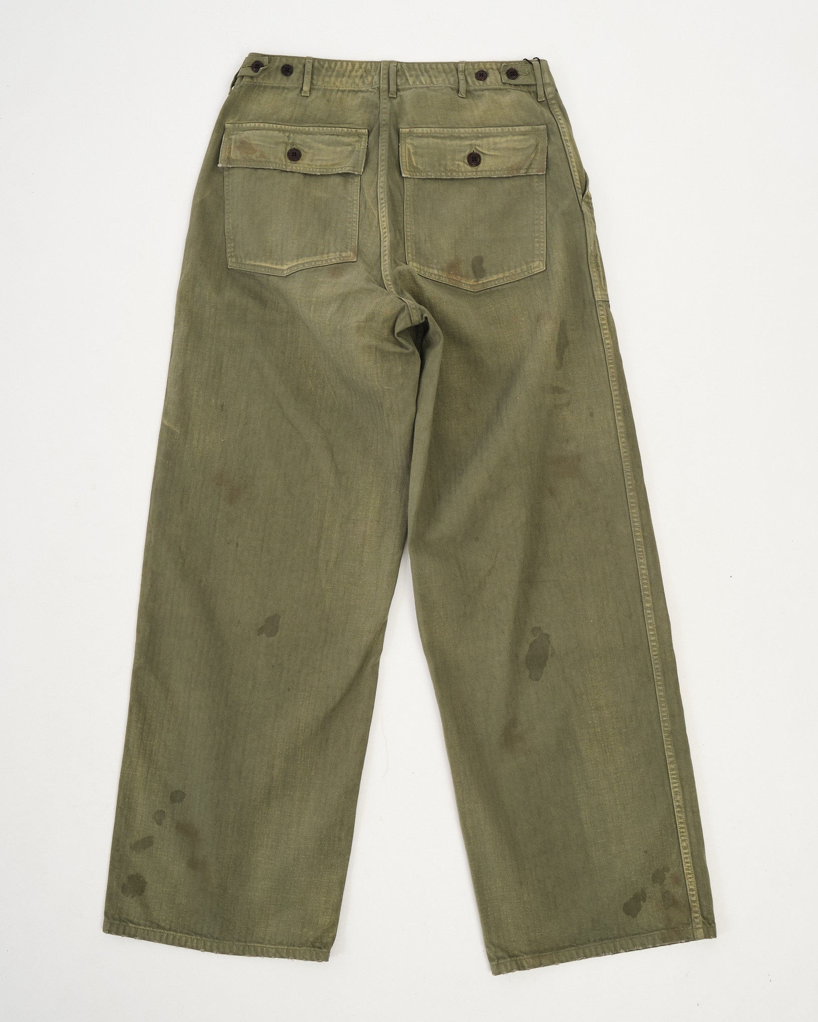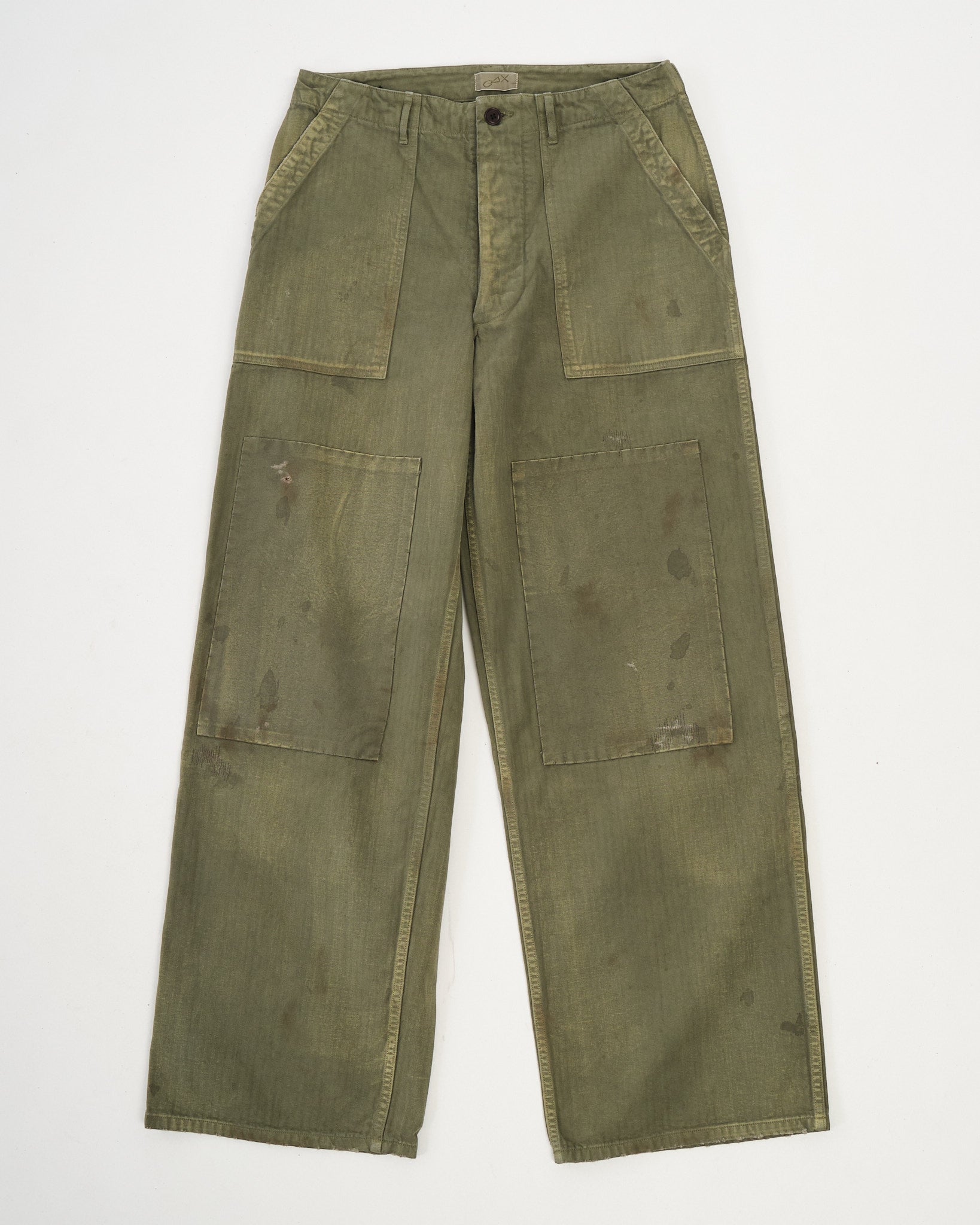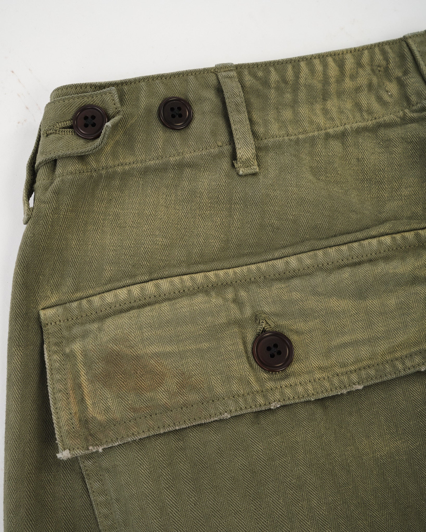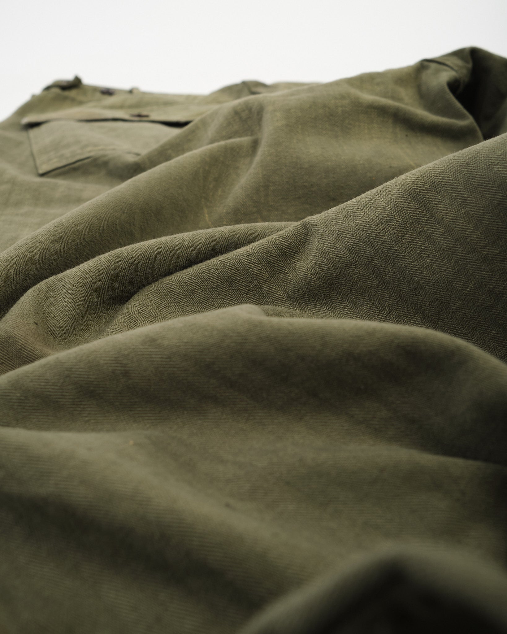 Featuring a relaxed fit, these pants incorporate boro-style patchwork detailing, creating a unique textured look that evolves beautifully over time. The olive colorway enhances the vintage military appeal, making them a versatile choice for everyday wear. Made in Japan, they are a testament to expert craftsmanship and timeless design.