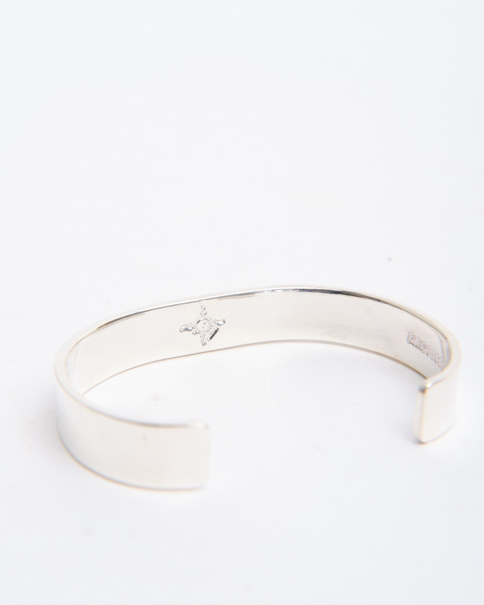 The Flat Hammered 12mm Plane Bungle with Turquoise in L size is a bold piece of jewelry that blends natural beauty with traditional craftsmanship. Handcrafted in Japan from Britannia Silver 950, the wide 12mm band is hammered by hand, giving each bracelet a unique surface that reflects light and movement. A genuine turquoise stone, individually chosen for its natural colour and pattern, is set into the silver as both decoration and symbol. Long regarded as a stone of protection, turquoise adds depth and meaning to the bracelet. Treated with First Arrows’ exclusive heat process, the silver is strong yet radiant, aging with a patina that enhances its contrast with the turquoise. Inspired by Native American jewelry but elevated with refined Japanese craft, this bungle is a lifelong companion with both spirit and style.