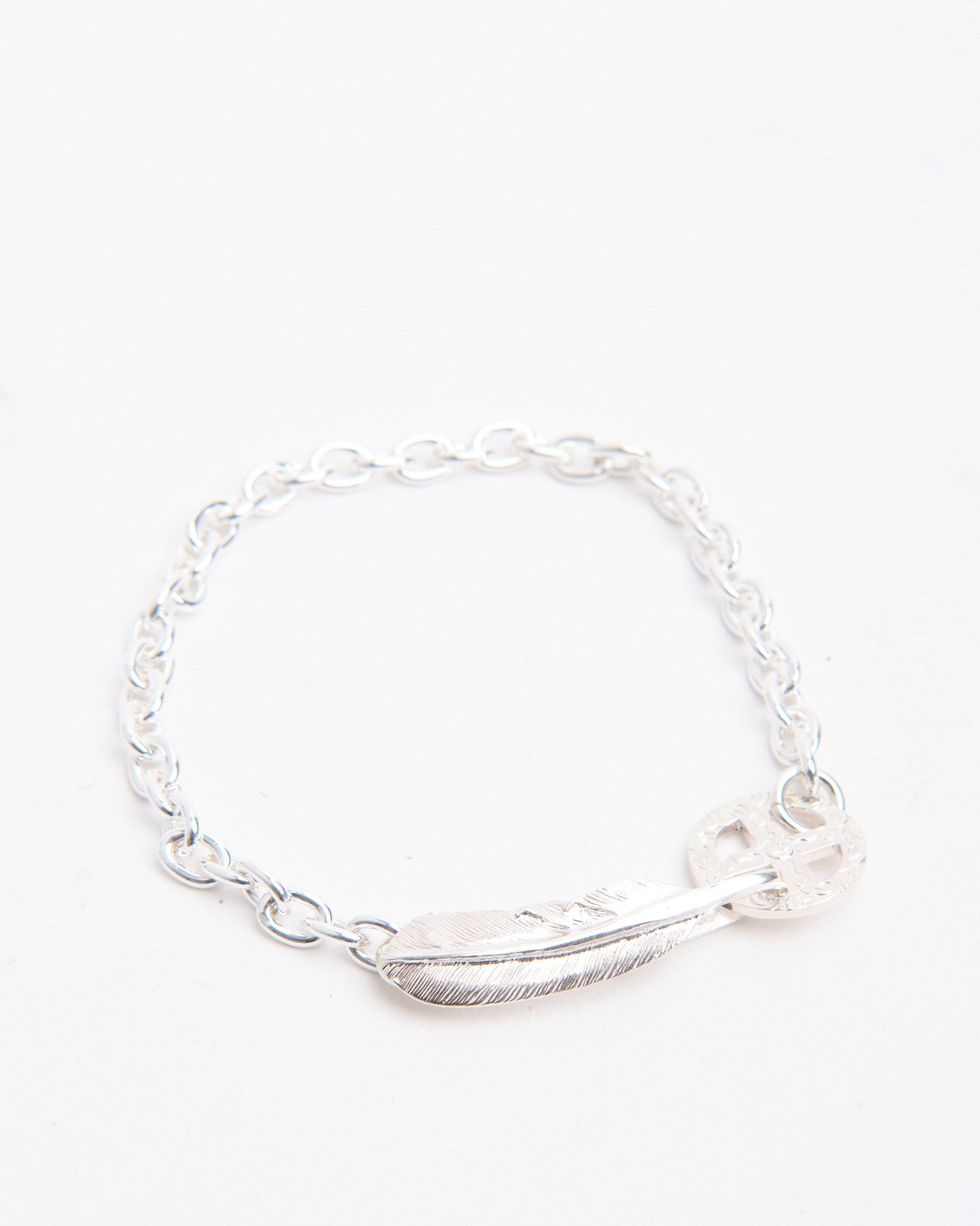 BR-305S FEATHER HOOK+MEDICINE WHEEL CHAIN BRACELET Lsize
