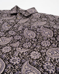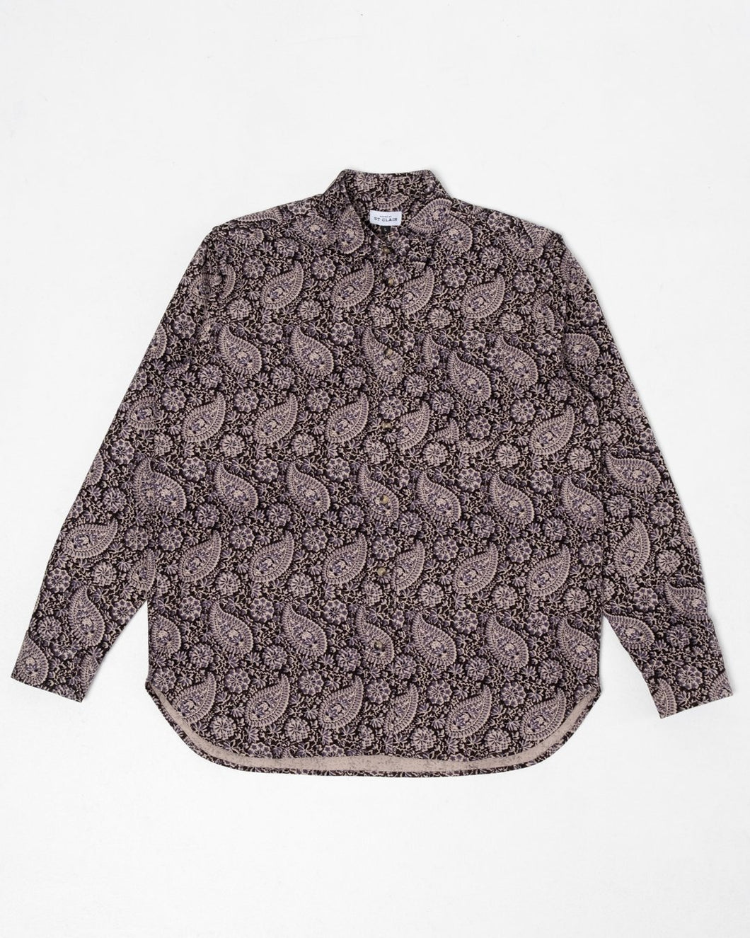 Broadway Shirt Purple Paisley from House of St. Clair. Button down shirt in 100% Japanese cotton melon cloth. One chest pocket, straight hem with side slits. Real horn buttons. Made in USA.