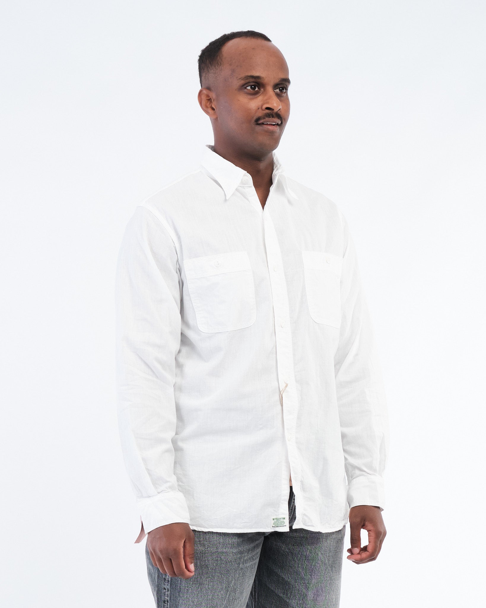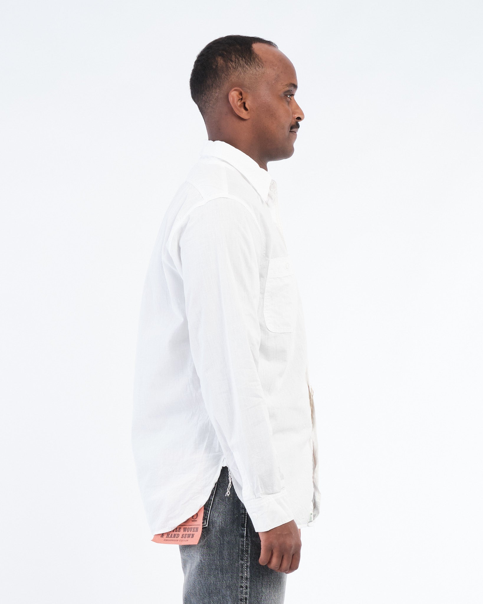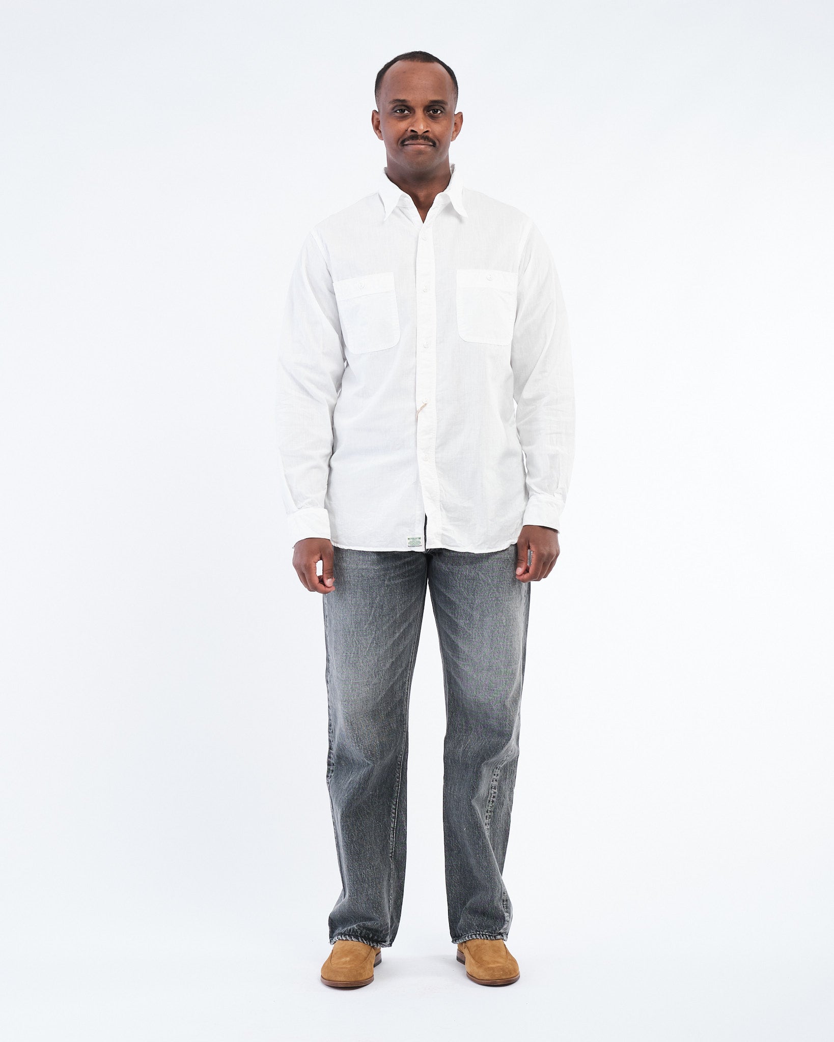 The Chambray Work Shirt from orSlow (style 01-8270-69) blends traditional workwear charm with modern comfort. Made in Japan from premium white Japanese chambray, it offers a soft, breathable feel while maintaining durability. Classic details like double-needle stitching, reinforced elbows, and two chest pockets nod to vintage utility shirts, while the regular fit makes it an easy layer year-round. Whether buttoned up or worn open over a tee, this is a timeless piece built to get better with age.