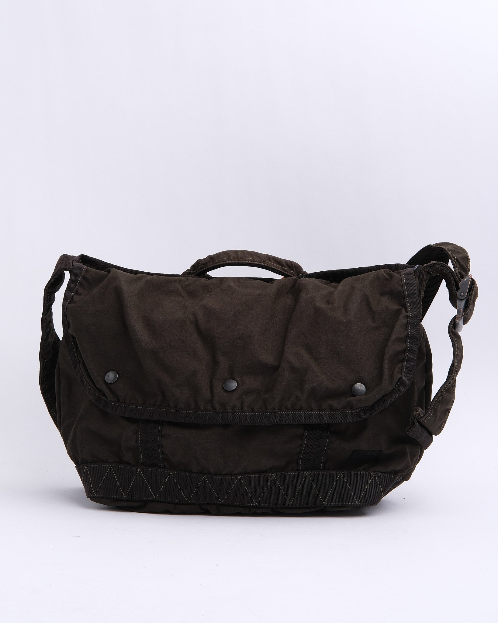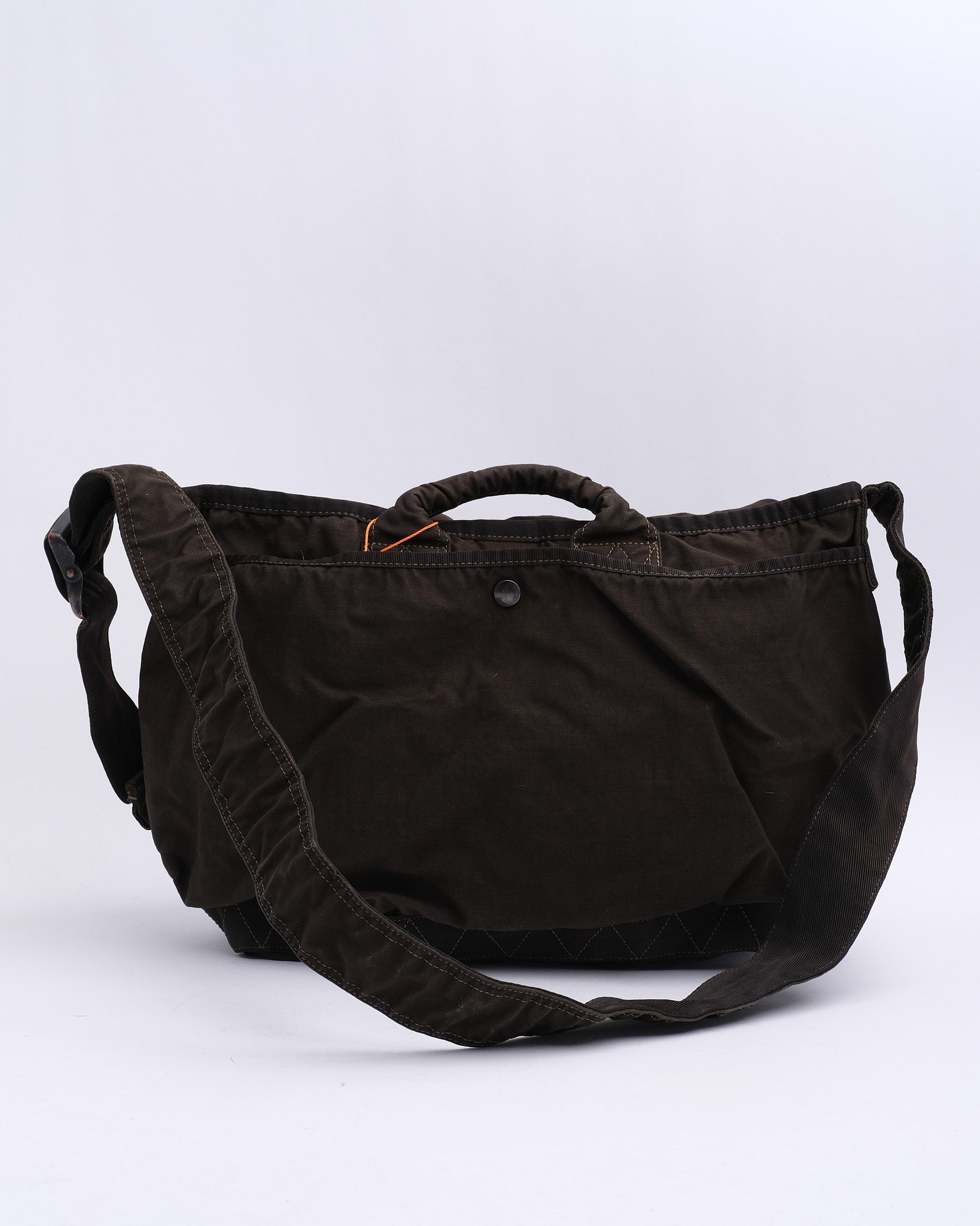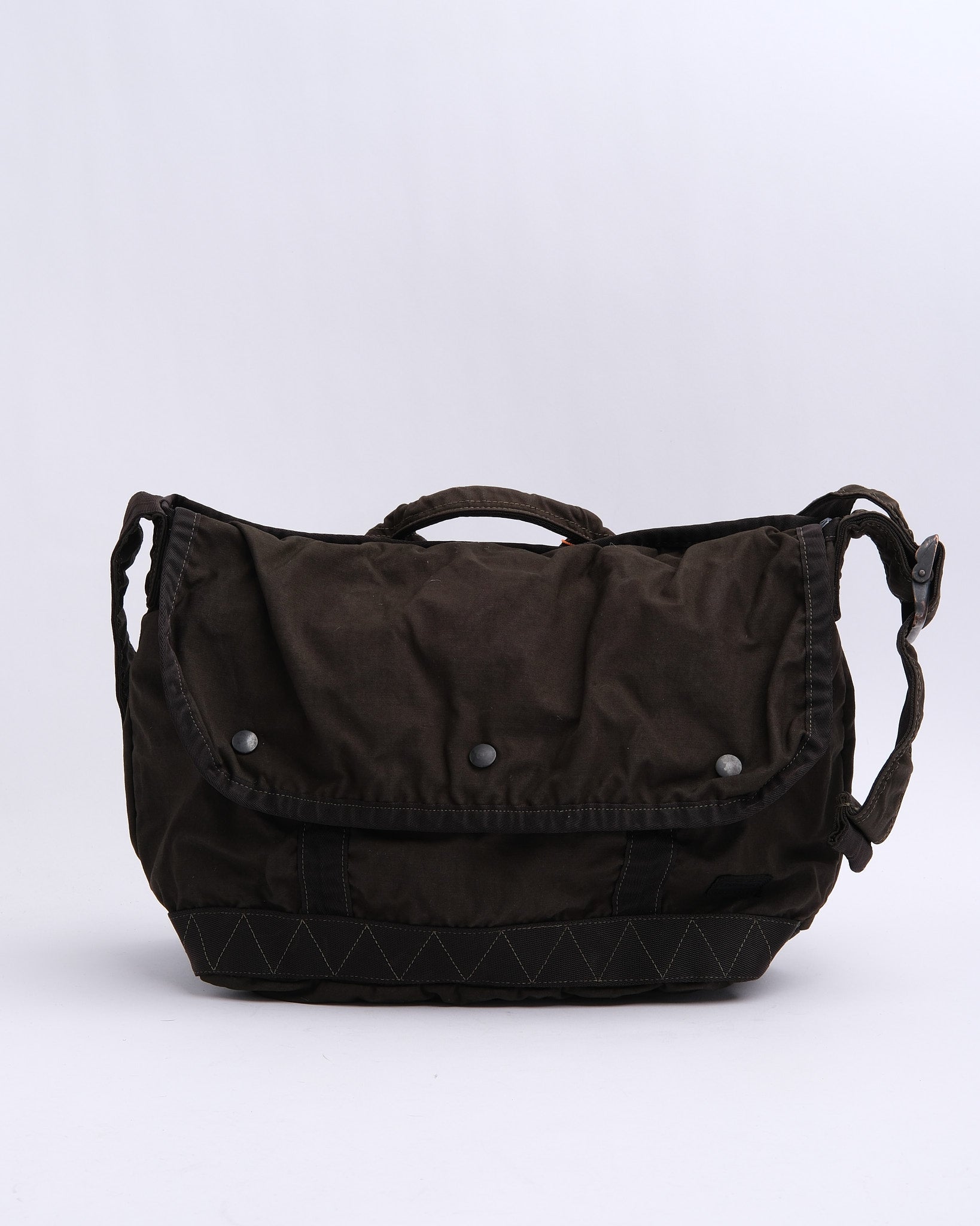 The PORTER BY YOSHIDA Crag Messenger Bag (M) in Khaki is part of the PORTER CRAG series, known for its distinctive product-dyeing technique that produces a rich depth of color and texture. Made from back satin fabric, a high-density blend of nylon and cotton, this messenger bag features the durability and texture that make it stand out. The two-bath dyeing process ensures a deep, multi-dimensional color, giving each bag a unique and vibrant finish.