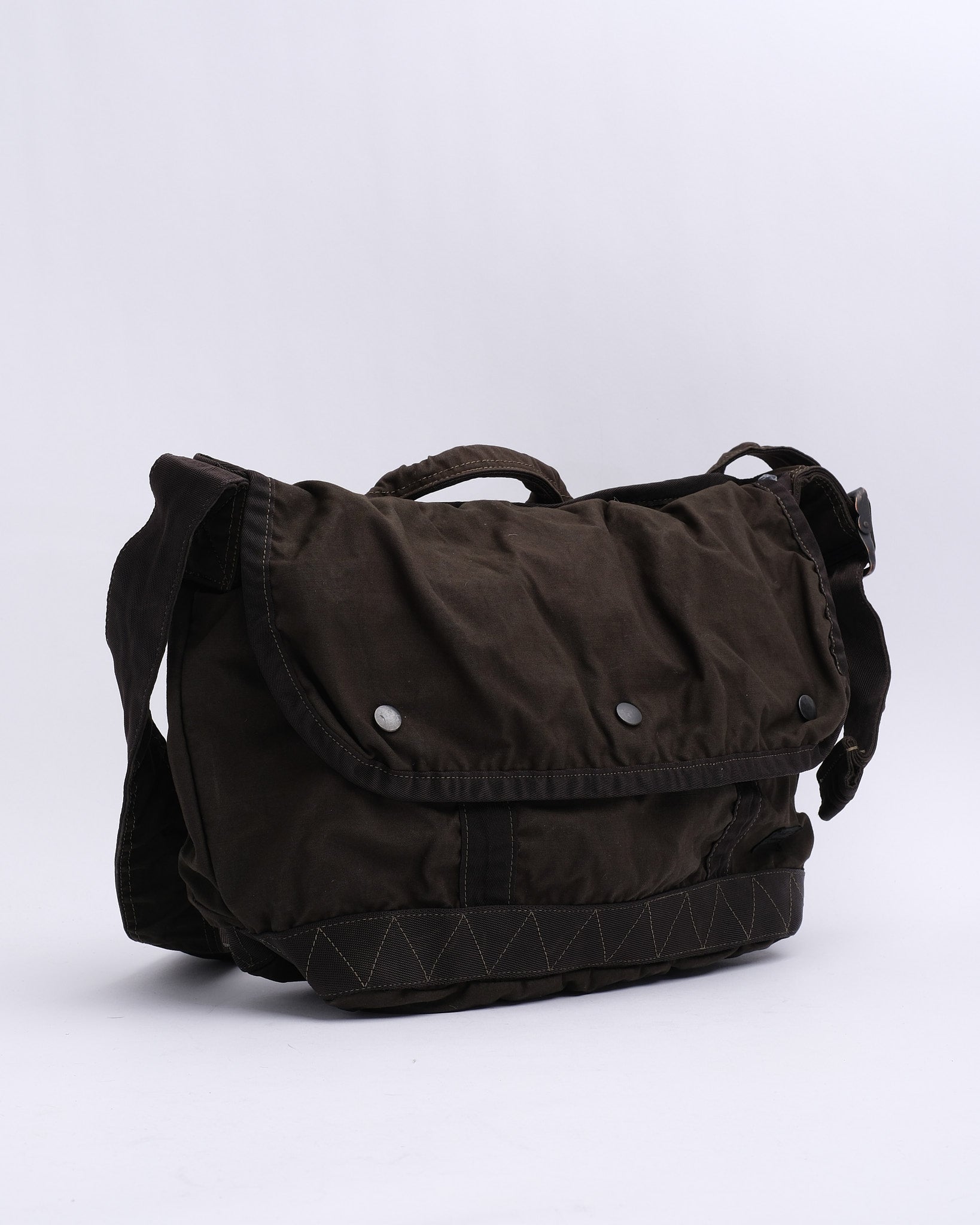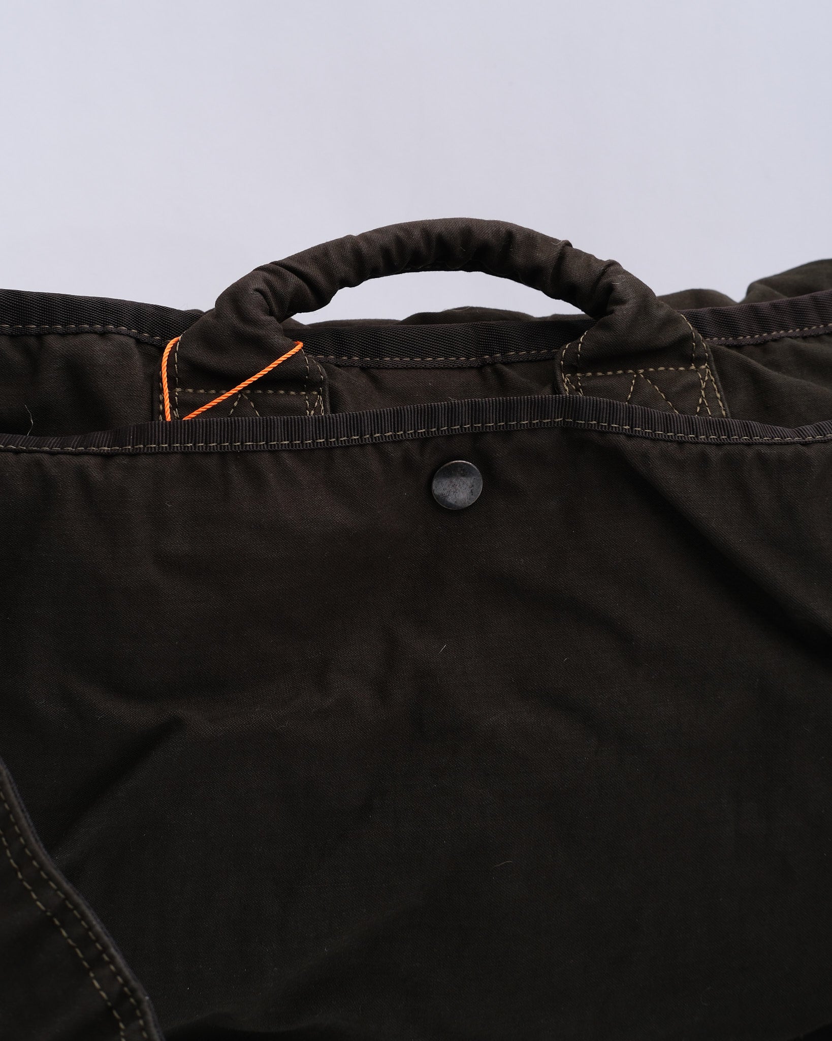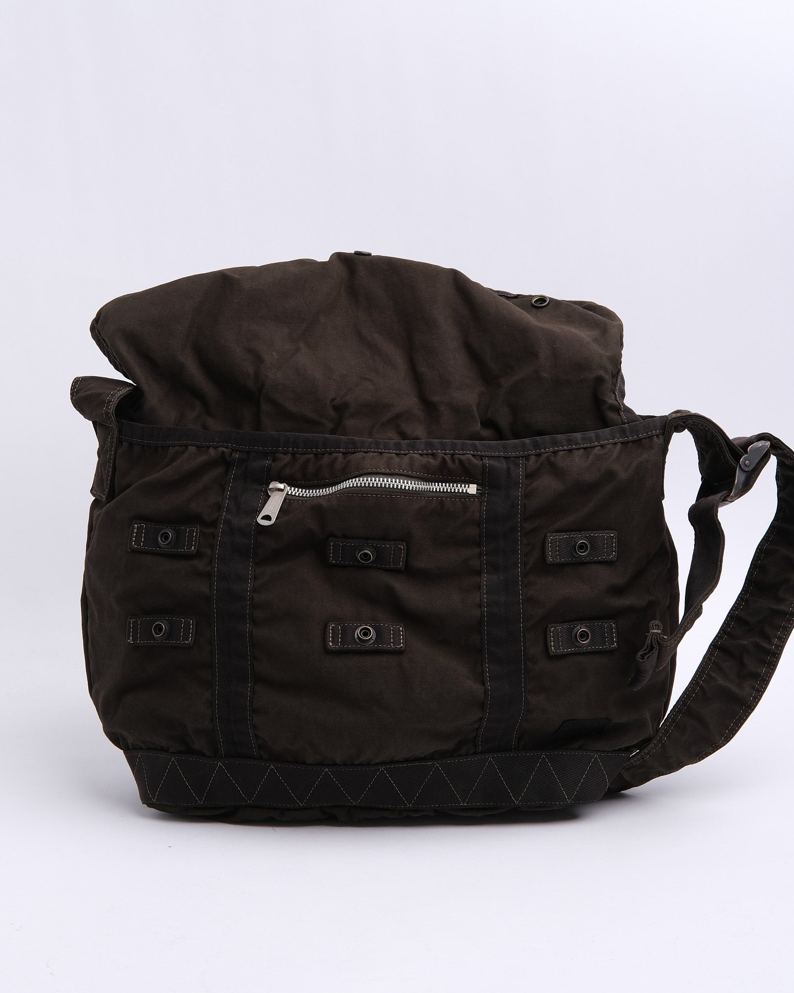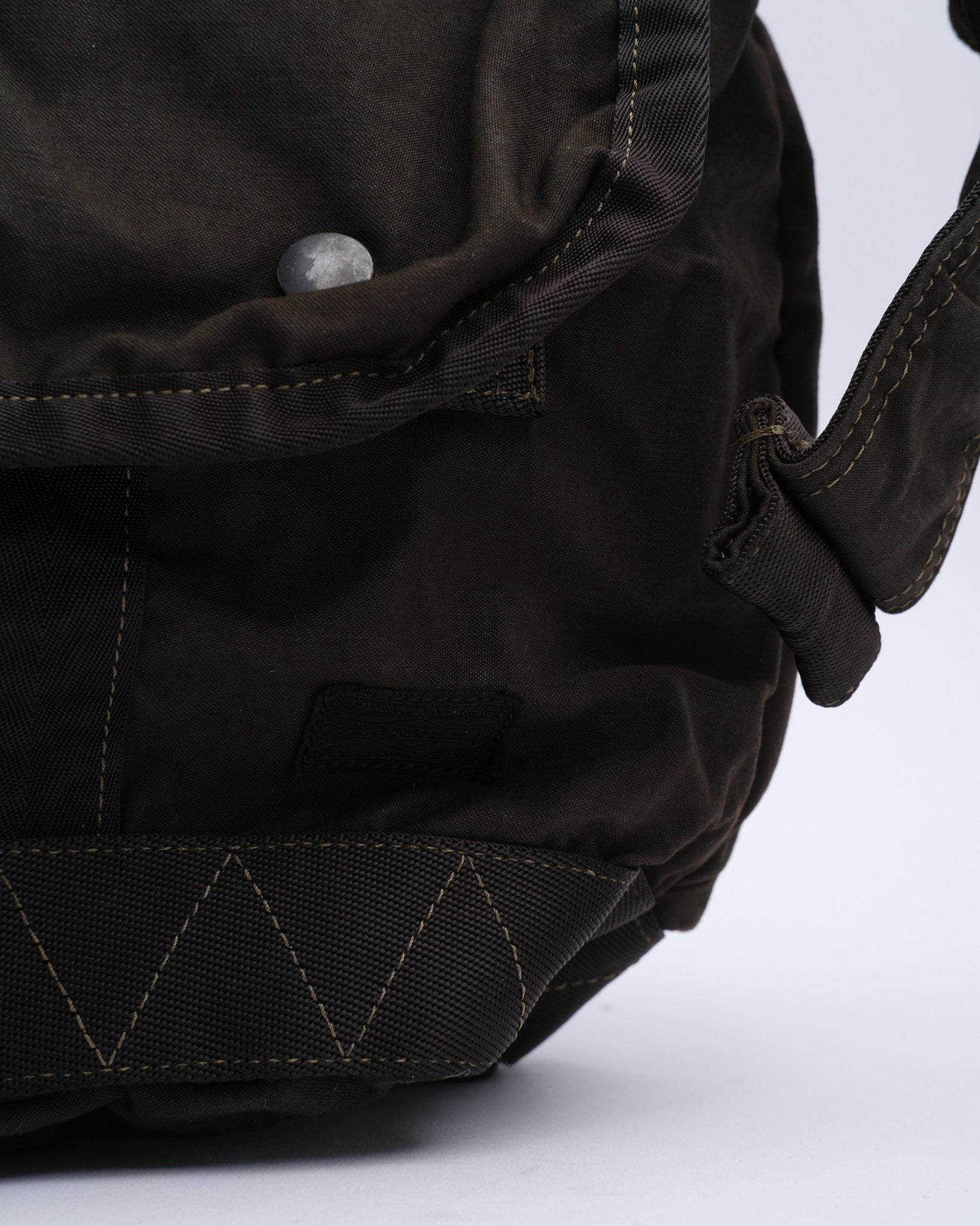 The PORTER BY YOSHIDA Crag Messenger Bag (M) in Khaki is part of the PORTER CRAG series, known for its distinctive product-dyeing technique that produces a rich depth of color and texture. Made from back satin fabric, a high-density blend of nylon and cotton, this messenger bag features the durability and texture that make it stand out. The two-bath dyeing process ensures a deep, multi-dimensional color, giving each bag a unique and vibrant finish.