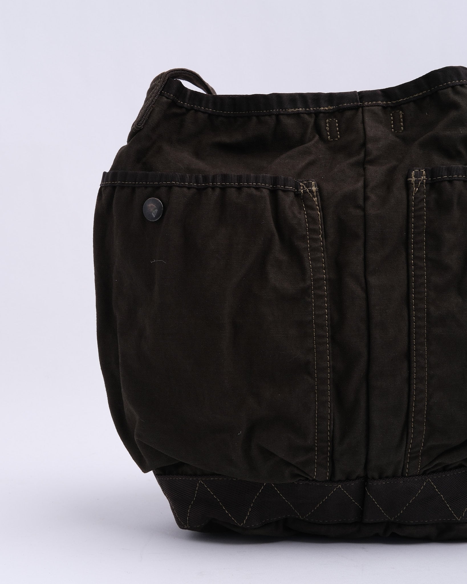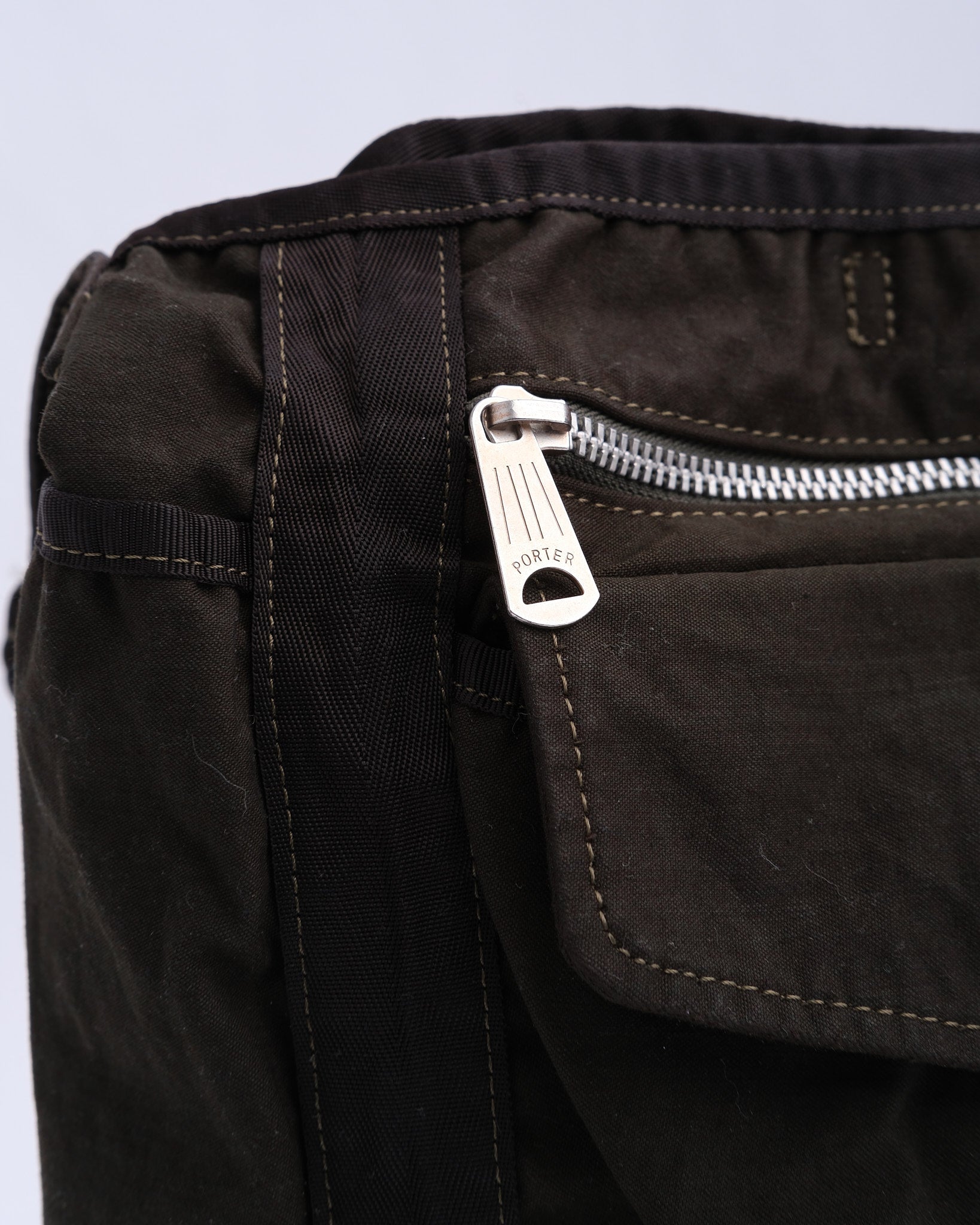 The PORTER BY YOSHIDA Crag Shoulder Bag (S) is part of the PORTER CRAG series, known for its distinctive product-dyeing process that creates deep, rich colors and unique textures. Made from back satin fabric, a high-density blend of nylon and cotton, the bag is both durable and lightweight. The two-bath dyeing technique enhances the depth of color and creates subtle variations, ensuring that each piece is one-of-a-kind.