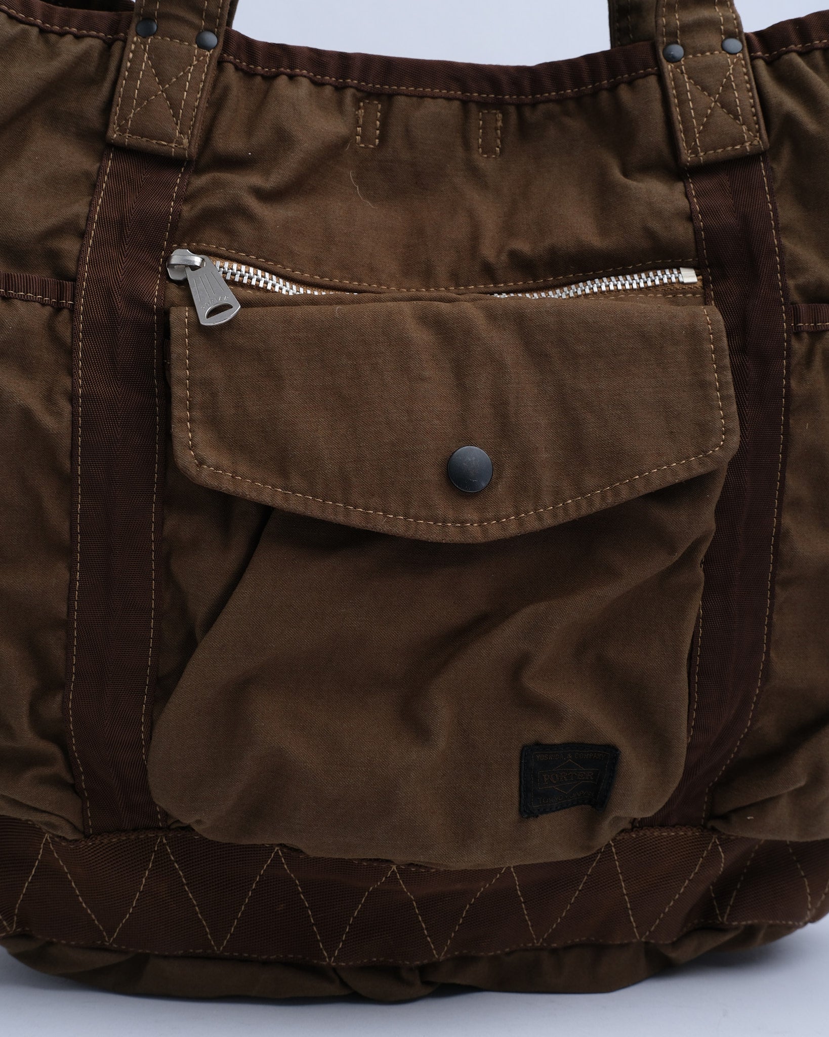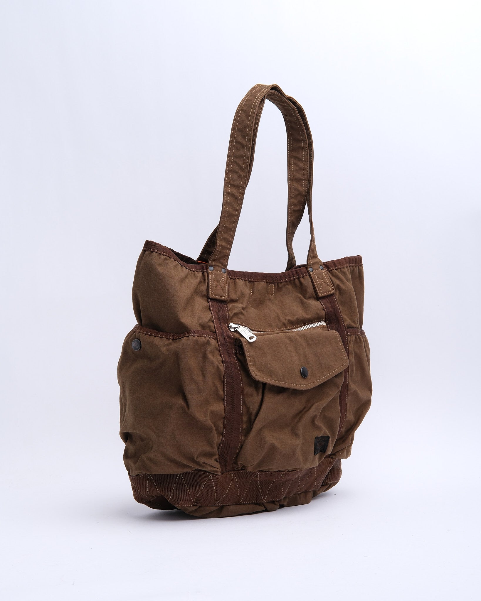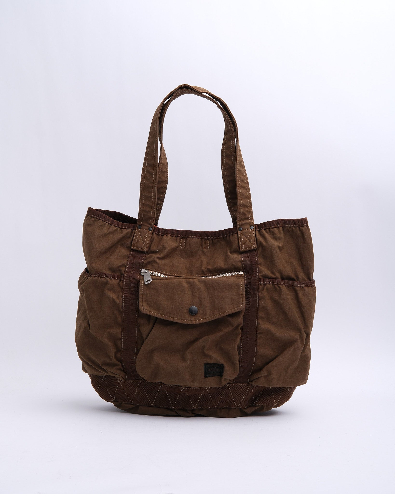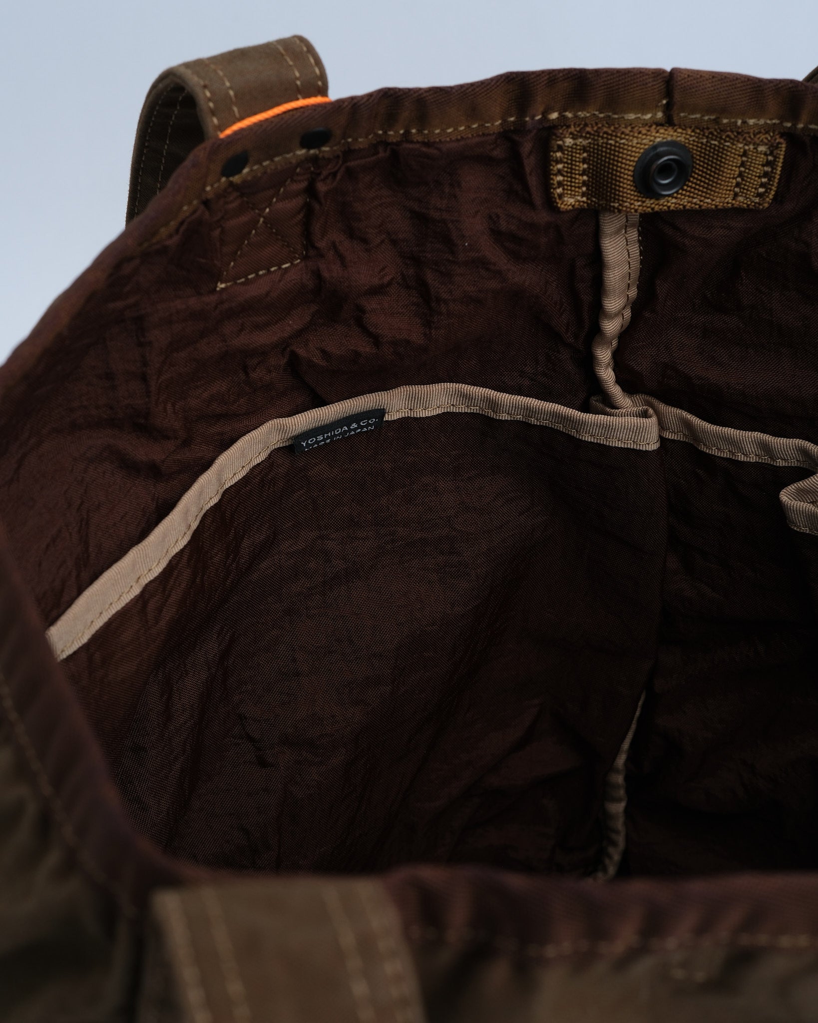 The PORTER BY YOSHIDA Crag Tote Bag (540-19643-40) is part of the PORTER CRAG series, known for its unique product-dyeing process that creates deep, rich colors and textures. Made from back satin fabric, a high-density blend of nylon and cotton, the bag is both durable and lightweight. The two-bath dyeing technique ensures multi-dimensional hues and natural variations, making each bag distinct.