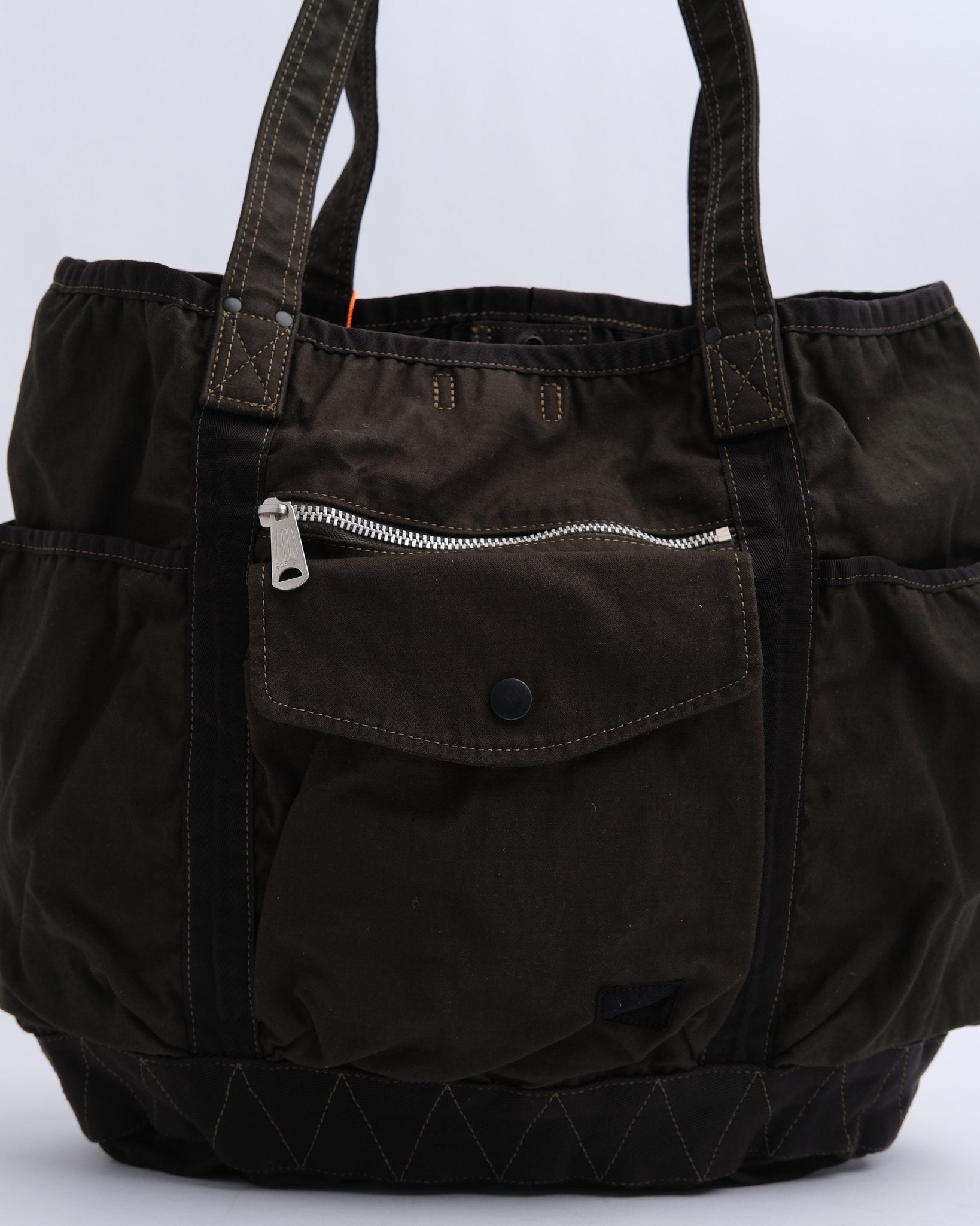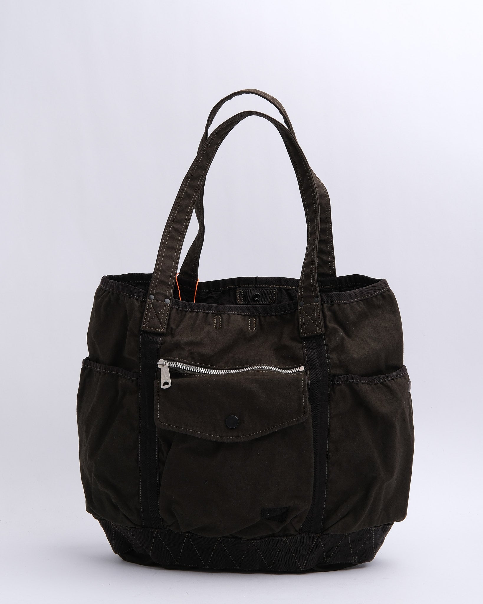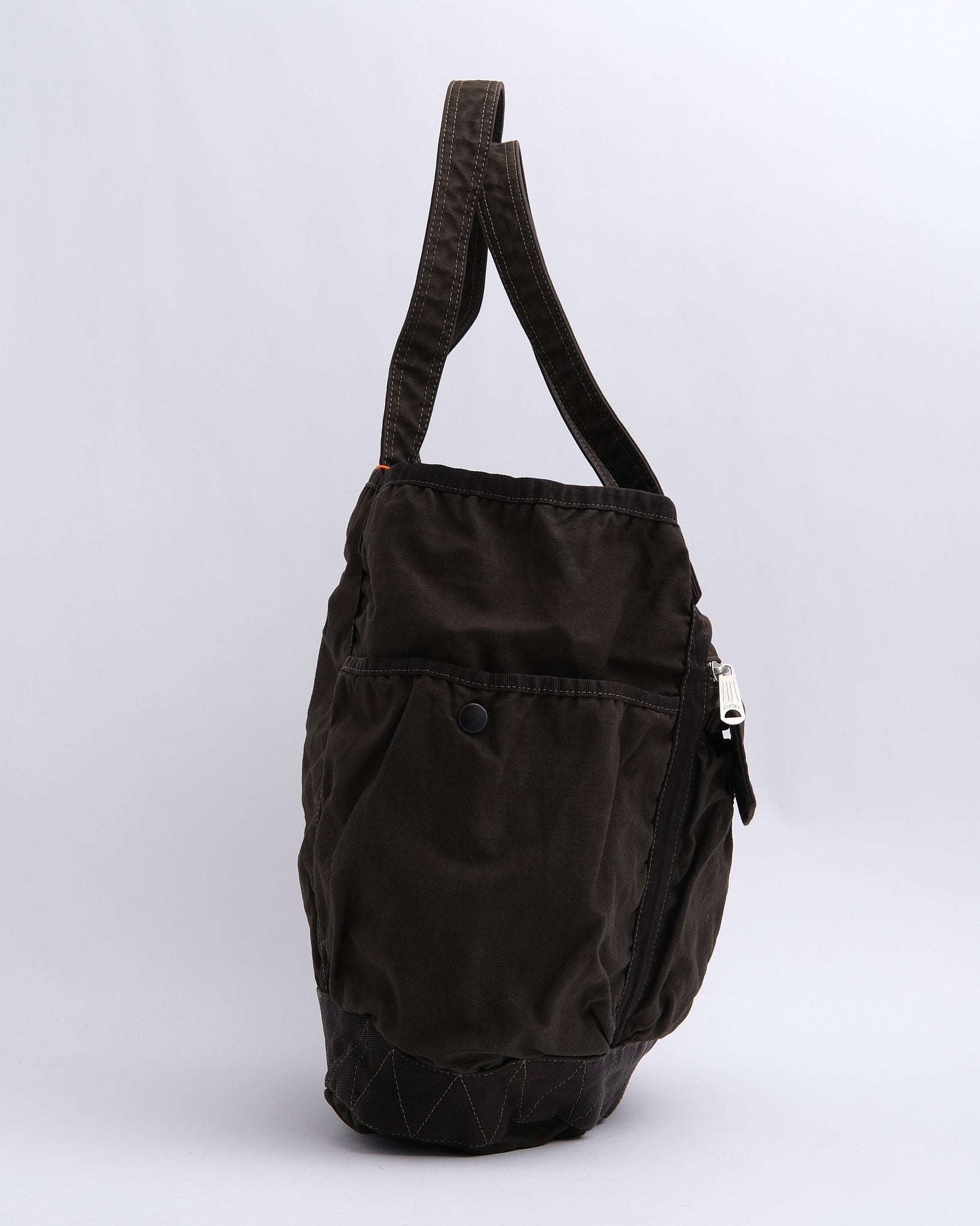 The PORTER BY YOSHIDA Crag Tote Bag (540-19643-30) is part of the PORTER CRAG series, known for its unique product-dyeing process that creates deep, rich colors and textures. Made from back satin fabric, a high-density blend of nylon and cotton, the bag is both durable and lightweight. The two-bath dyeing technique ensures multi-dimensional hues and natural variations, making each bag distinct.
