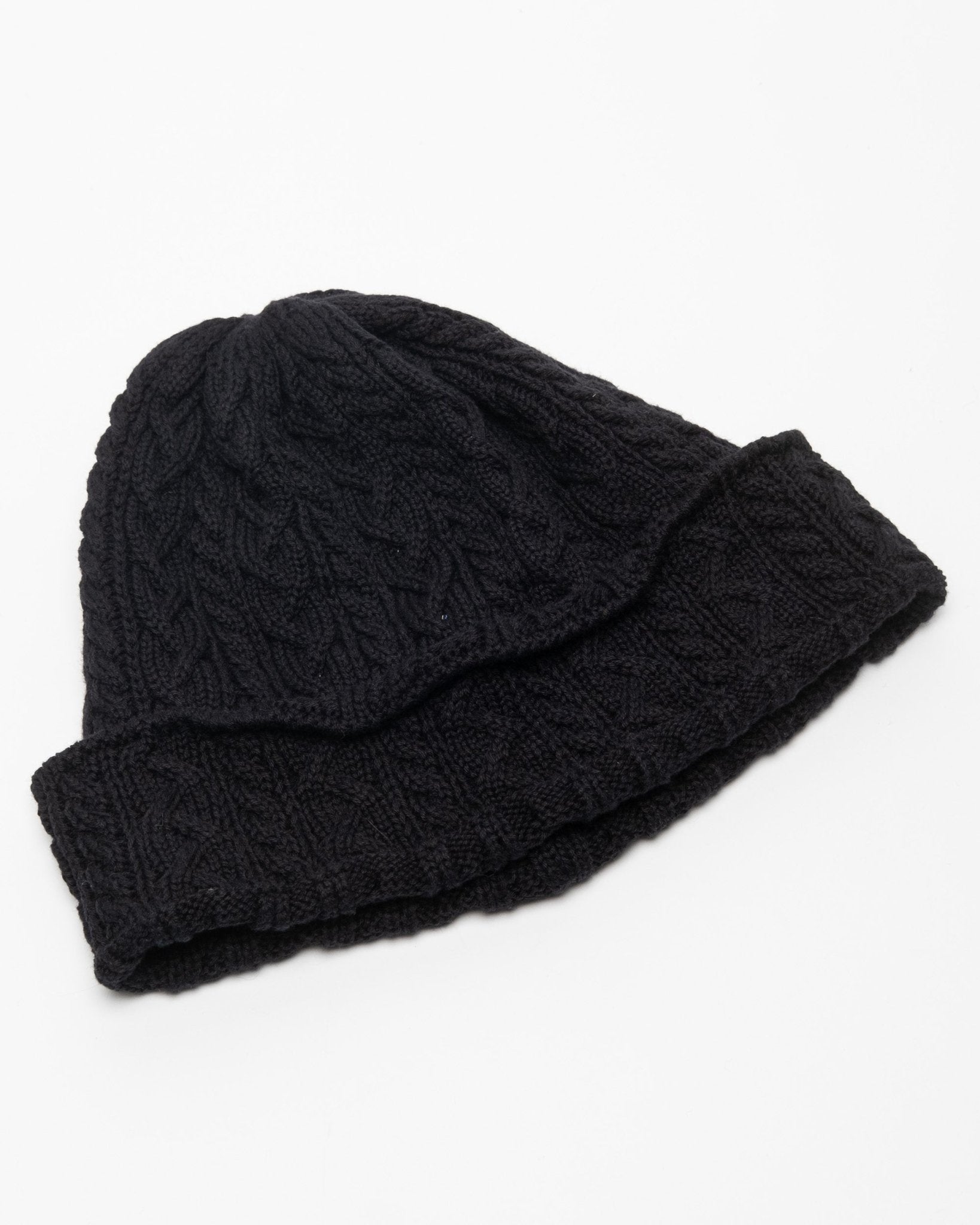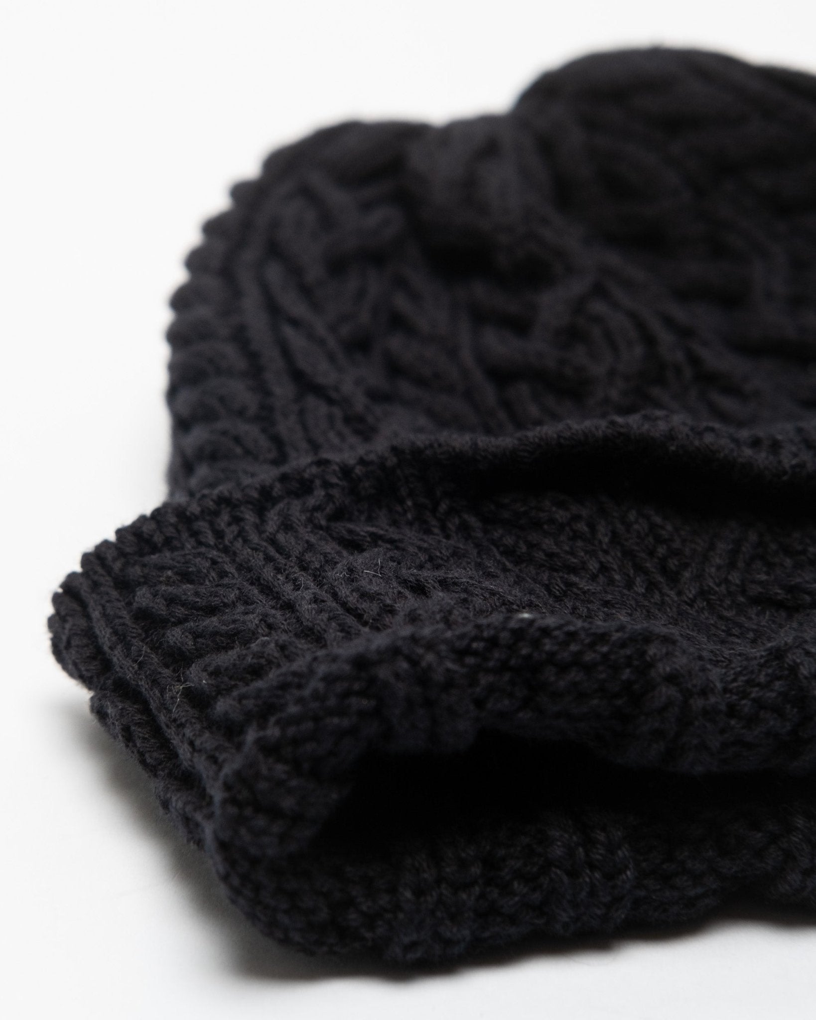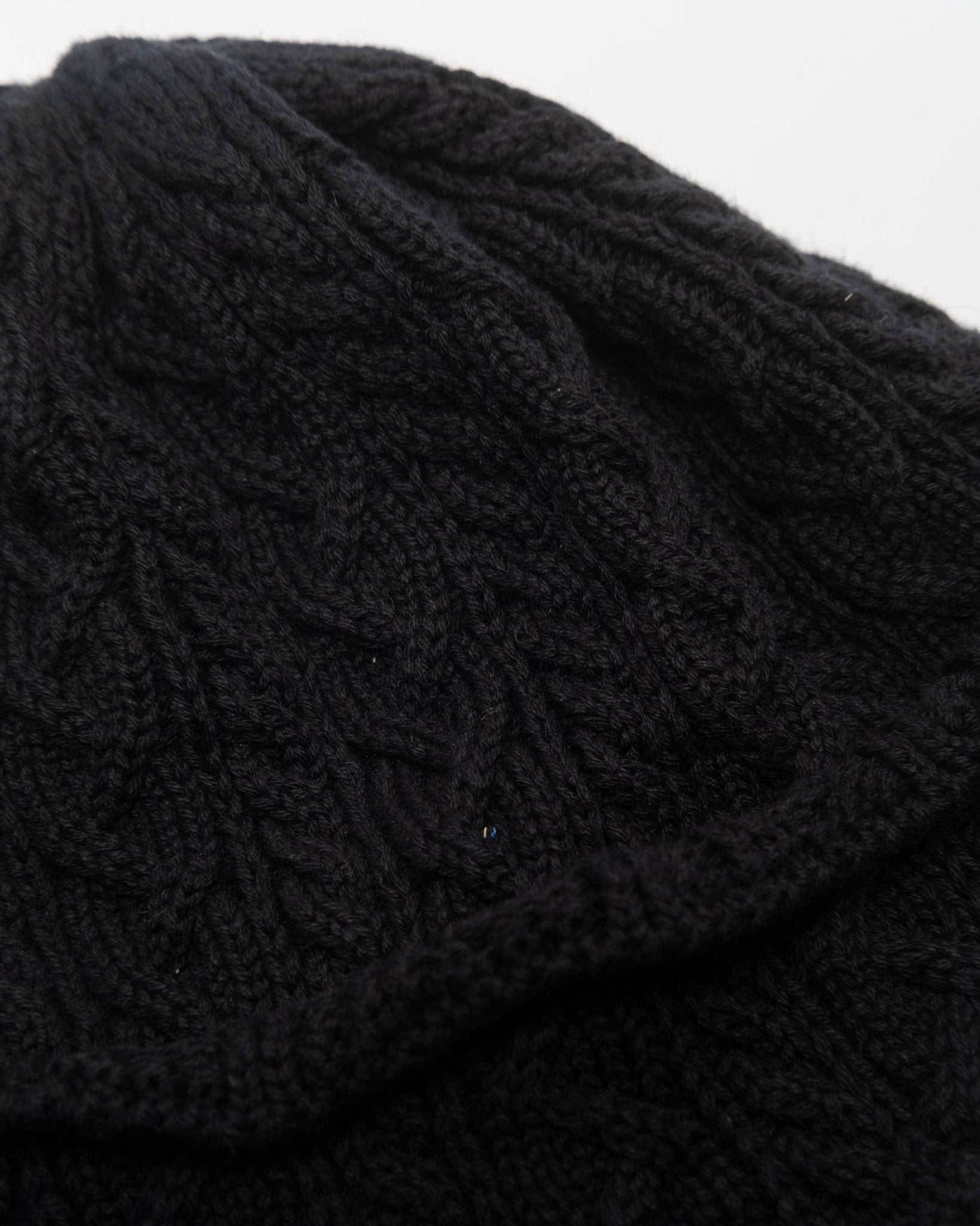 Fisherman Cable Knit Hat Black by Found Feather. A snug, high-gauge knit hat, made of 100% merino wool. Made in Japan.