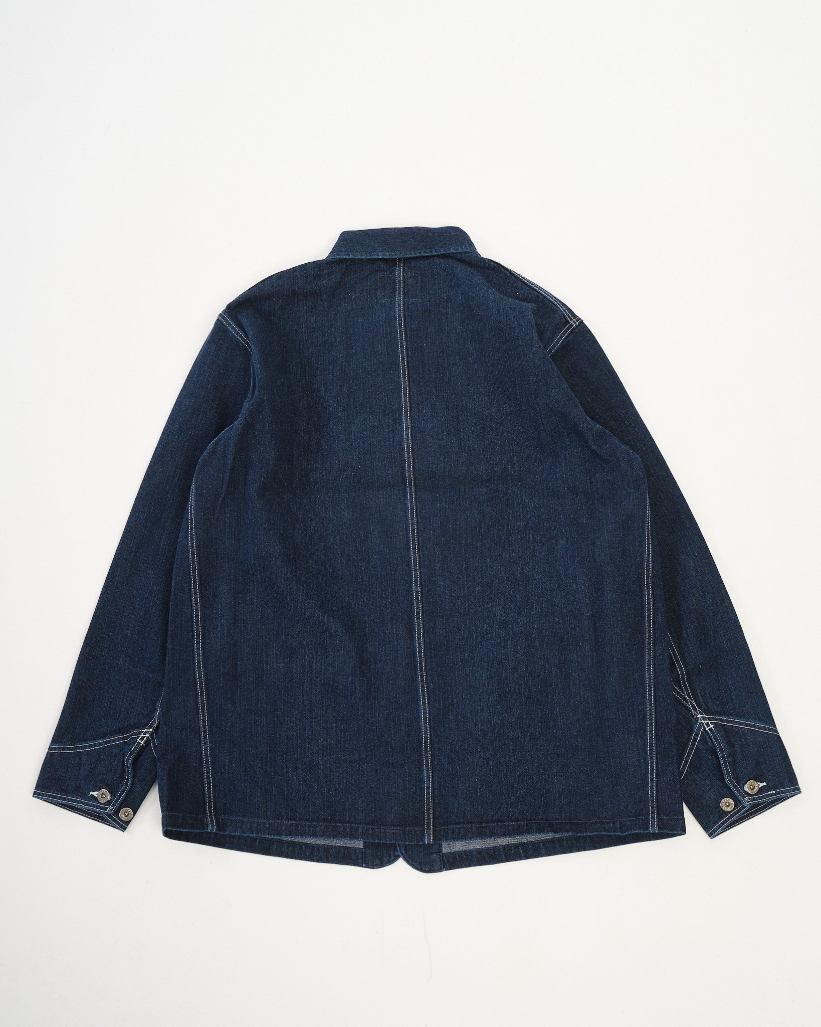 The design is rooted in wartime-era coveralls, featuring a classic two-pocket front and a relaxed silhouette that allows for comfortable layering and ease of movement. A carefully applied faded finish gives the garment a worn-in, time-earned appearance, echoing the natural aging of well-used workwear rather than relying on harsh processing.