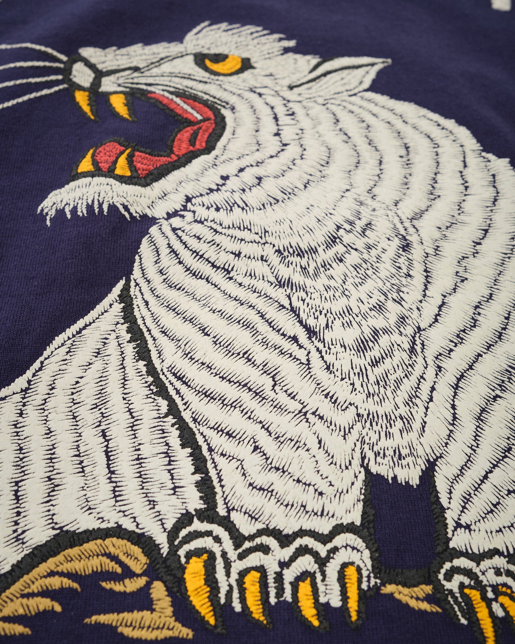 Designed with tubular knit construction (no side seams) for a seamless fit, this T-shirt features two-on/one-off collar stitching with #20 cotton thread for added reinforcement. The high-quality rubber printing ensures the tiger graphic remains sharp and vibrant, even after repeated washes. One-washed for a soft feel from the first wear, this T-shirt is perfect for those who appreciate heritage-style graphics and premium materials.