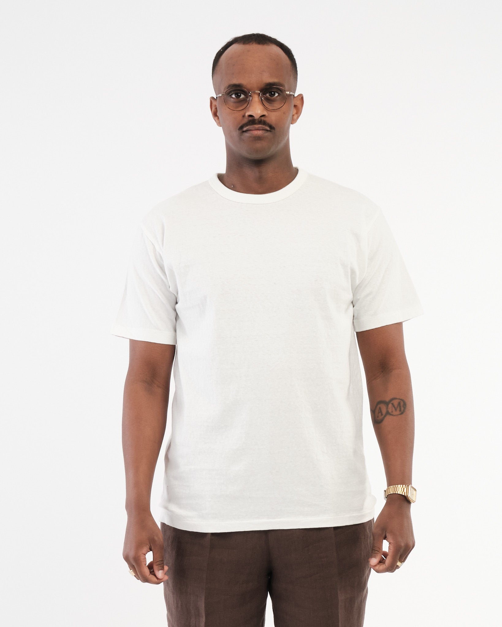 Presenting the Haleiwa Short Sleeve T-Shirt Off White from Sunray Sportswear, a nod to the classic styles of the '50s. This Japanese-crafted t-shirt features a relaxed, regular fit, traditional collar, rib-design, and fabrics. Made on antique circular knitting machines, our t-shirts offer a unique side-seam-free construction. Each t-shirt is a labour of love, taking over 1.5 hours of meticulous crafting, ensuring a garment that maintains its shape and comfort. Experience the blend of timeless style, resilient quality, and traditional appeal of Sunray Sportswear.