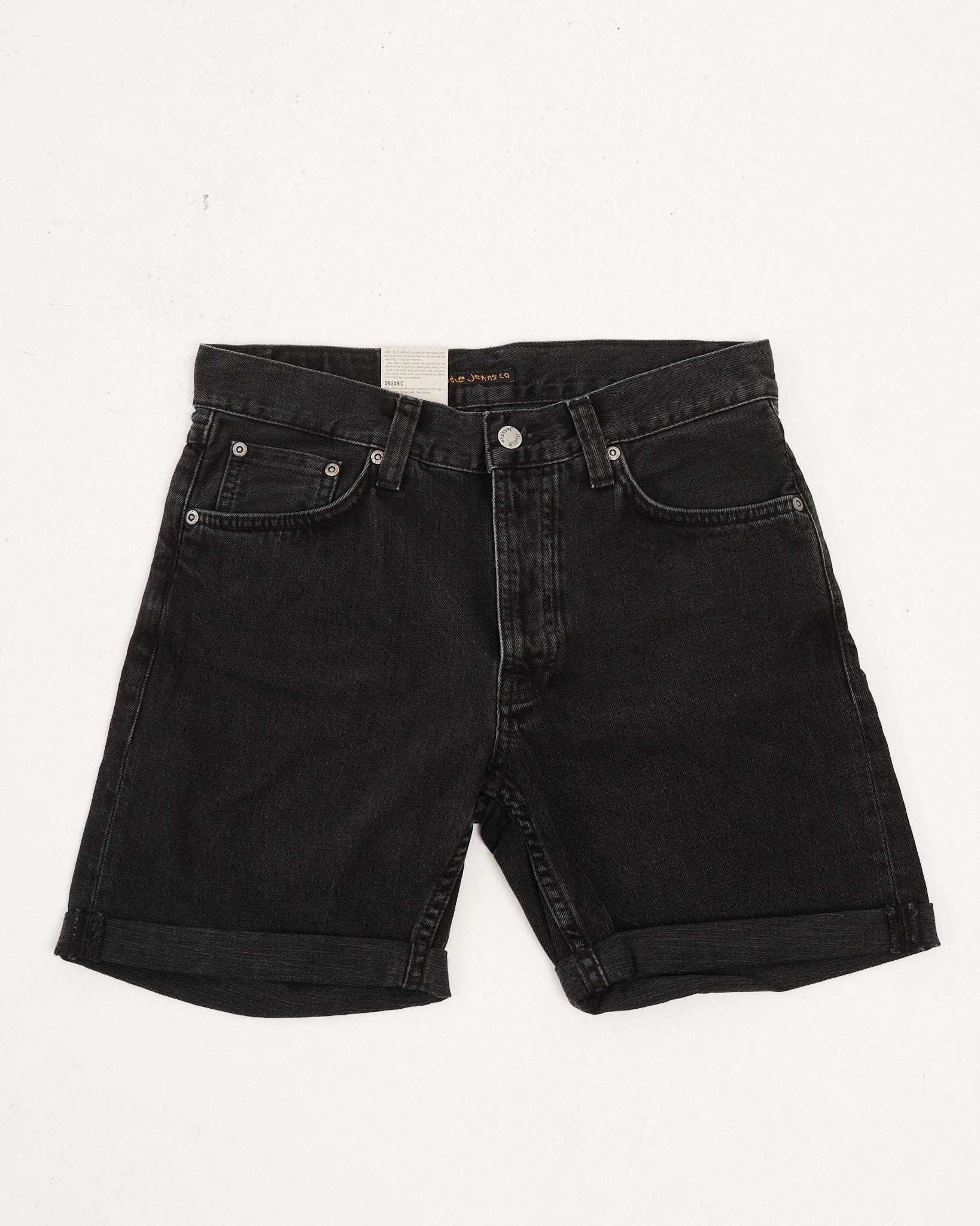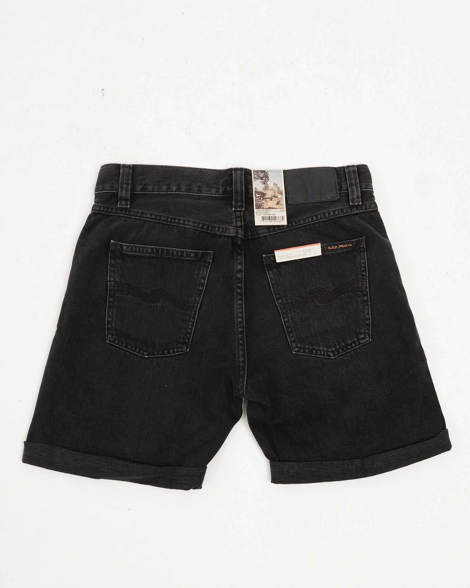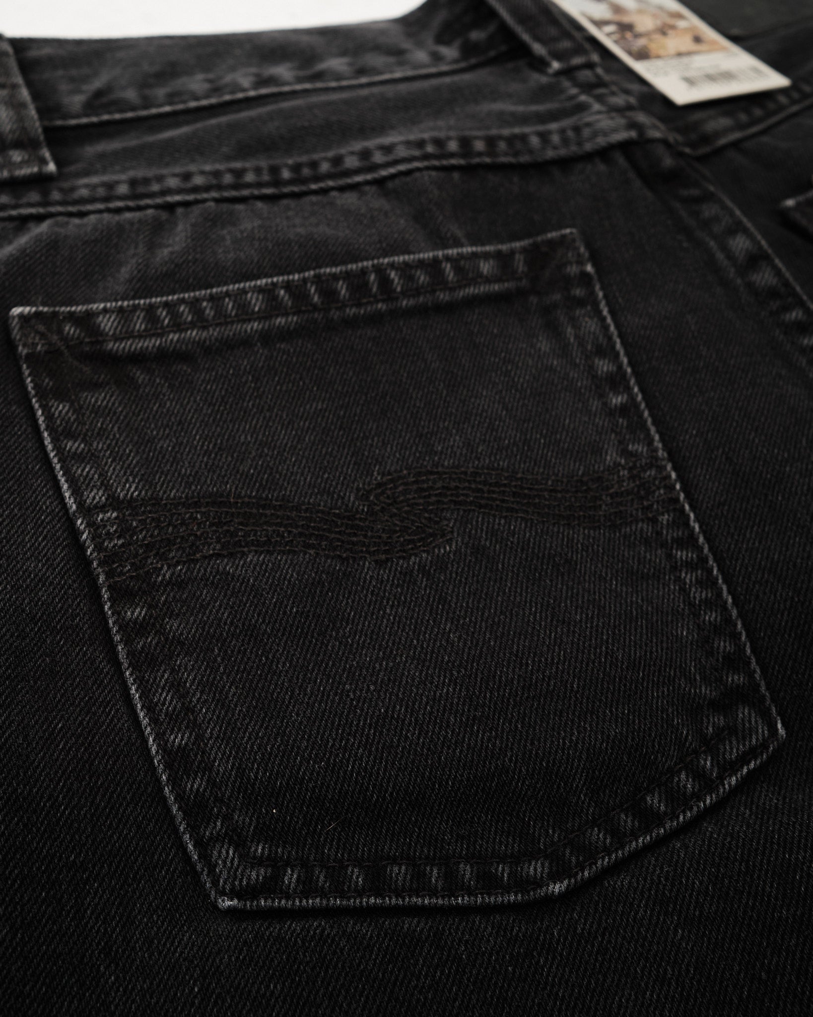 The denim’s been lightly washed for a muted black tone that brings out the coarse texture of the fabric, giving these shorts character without flash. Details like black thread at the seams, copper trims, and a Jacron patch provide contrast and personality, while the button fly keeps it classic. Made in Tunisia with all the hallmarks of Nudie’s sustainability ethos.