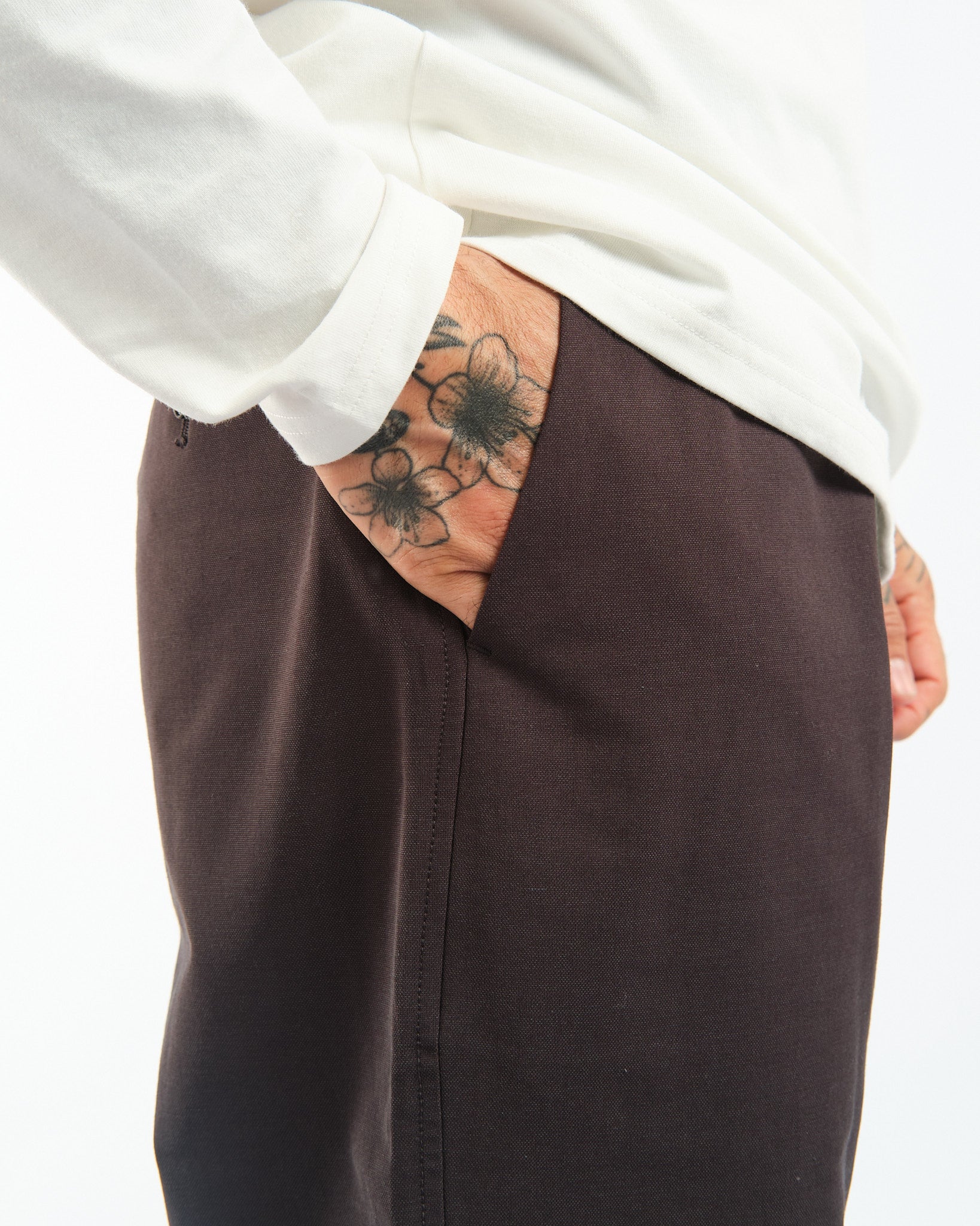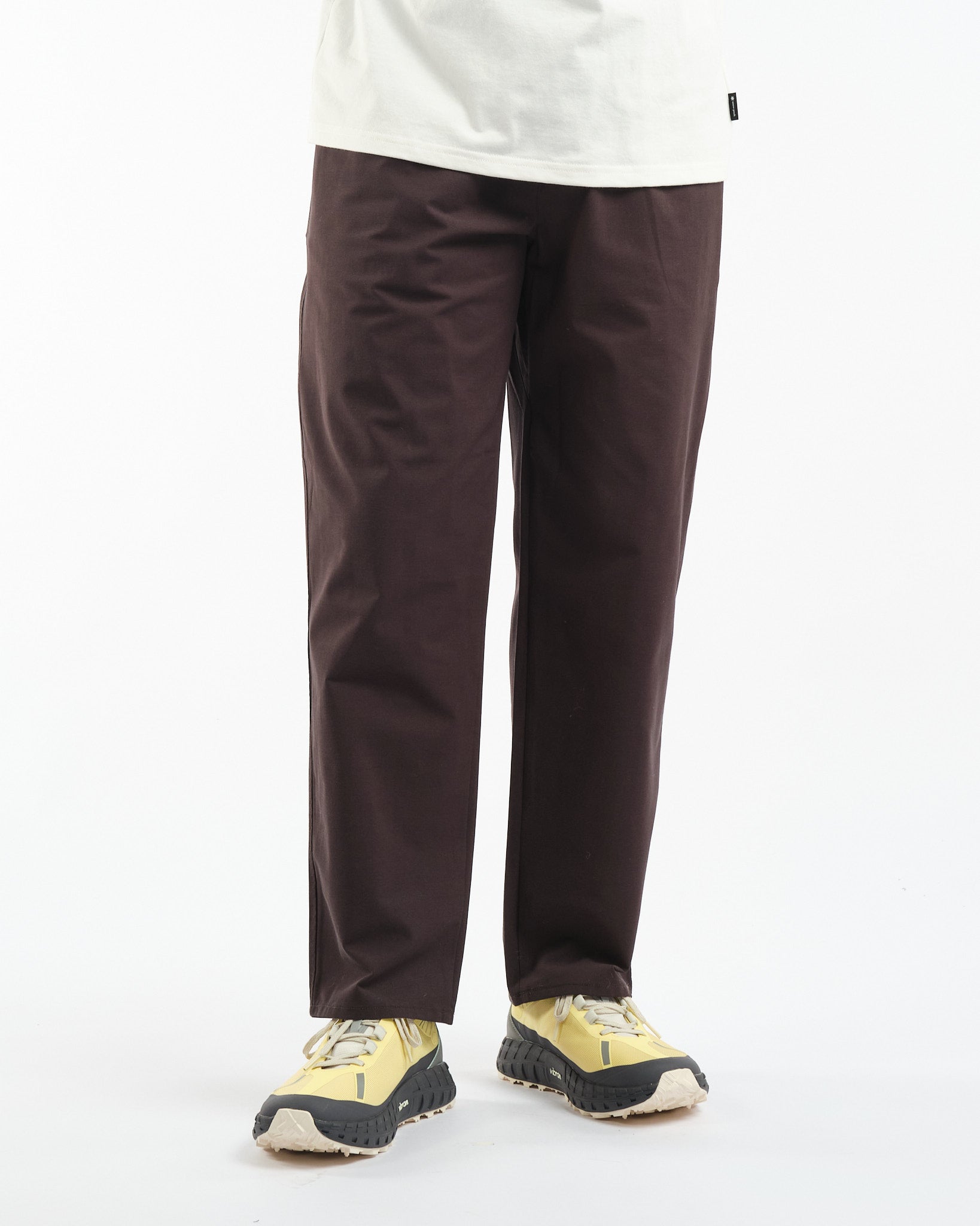 Discover the perfect combination of traditional Japanese weaving and modern fabric technology with the Nanamica Karami Easy Pants in Charcoal. These tapered cut pants are made with a unique "Karami" weave, typically used for summer kimonos and clerical robes. The fabric is sweat-absorbing, fast-drying, and stretchy, making them ideal for the summer months. The weft partially uses cotton, ramie, and linen, which creates a distinct, crisp texture.