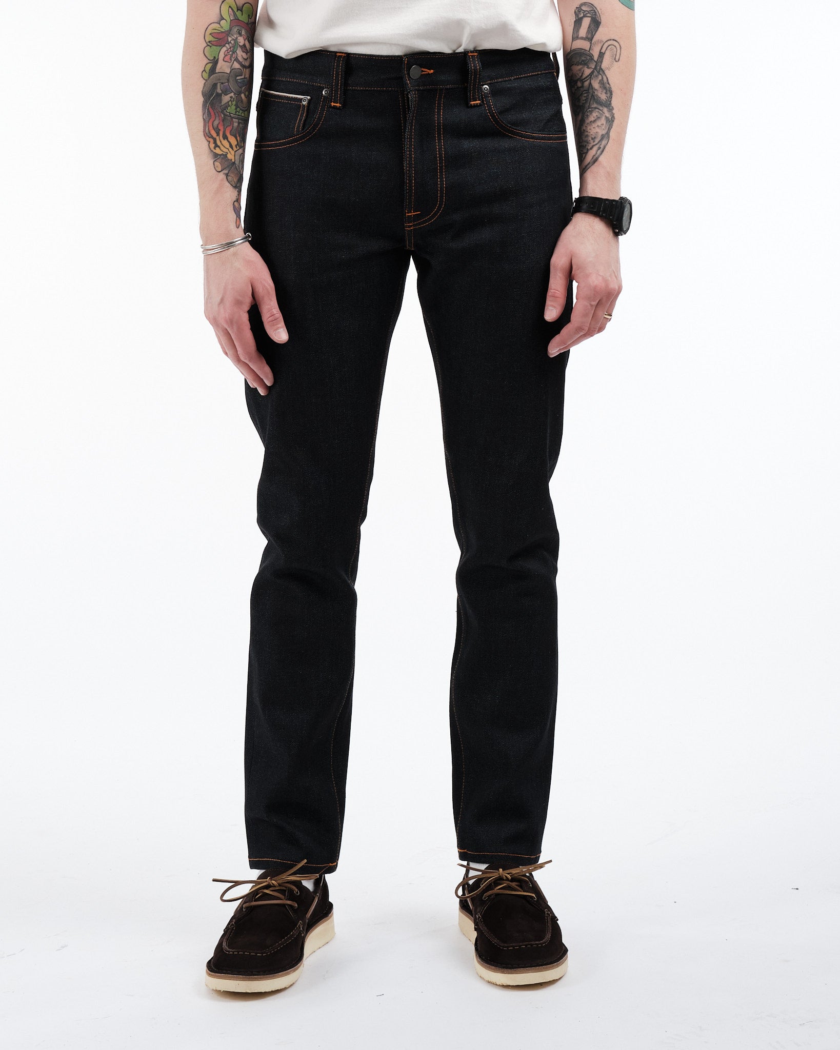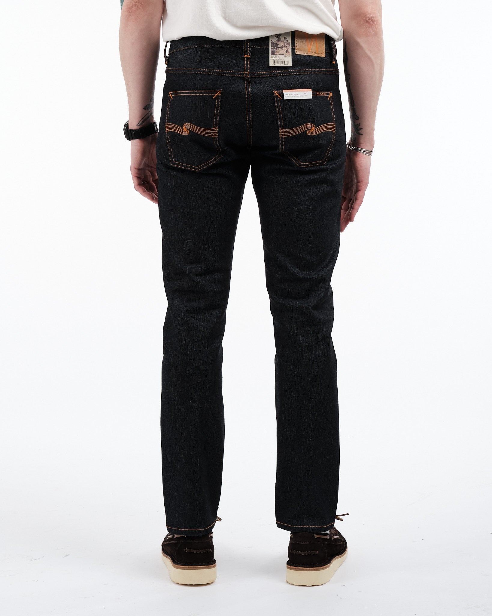 Unique Detailing: Orange threads on all seams and a distinctive orange selvage id line exclusive to Nudie Jeans Co., enhancing the jeans' visual appeal.