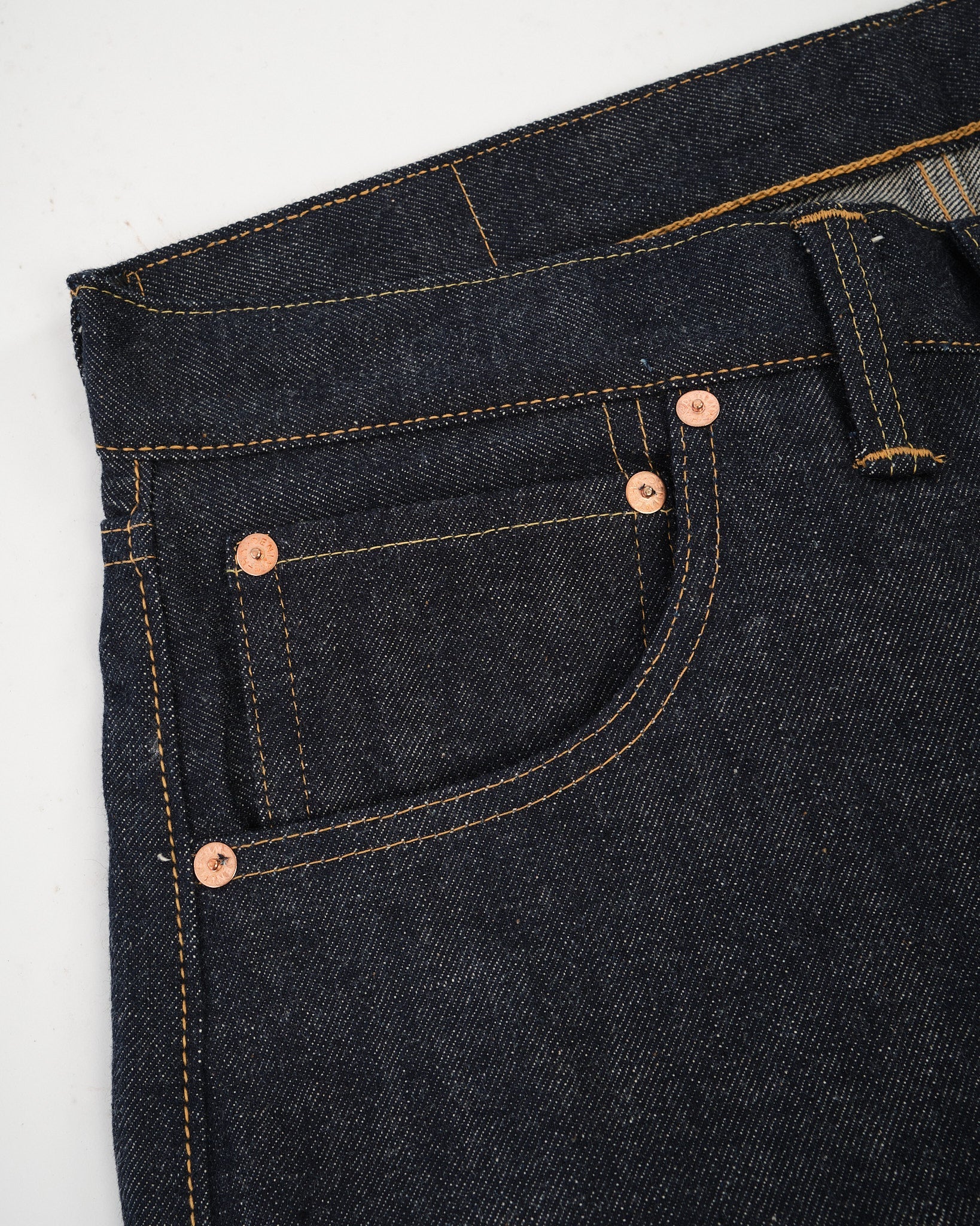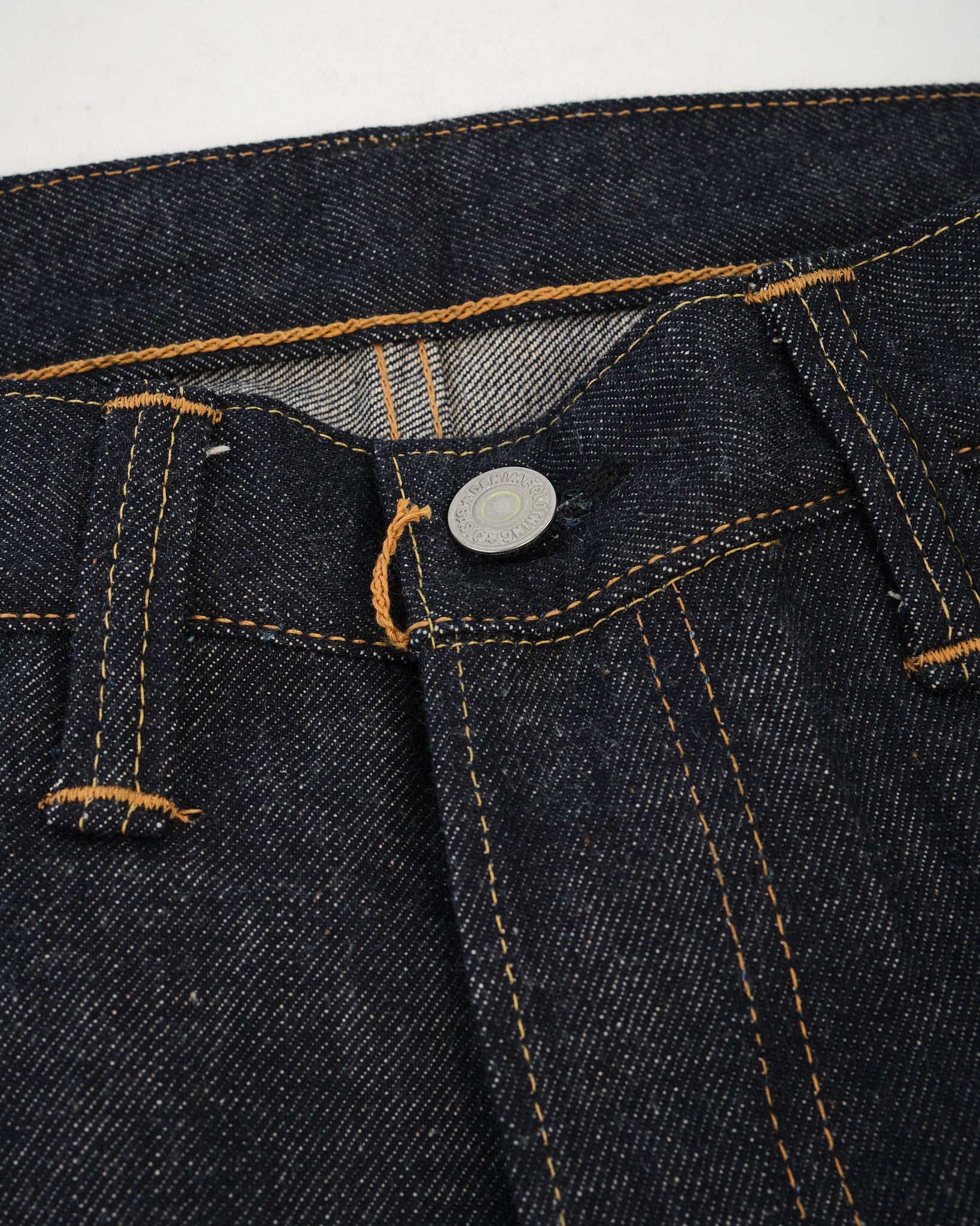 100% Cotton Selvedge Denim: Crafted with premium Kurabo Denim Mills fabric, and it even comes with a white-golden brown selvedge.