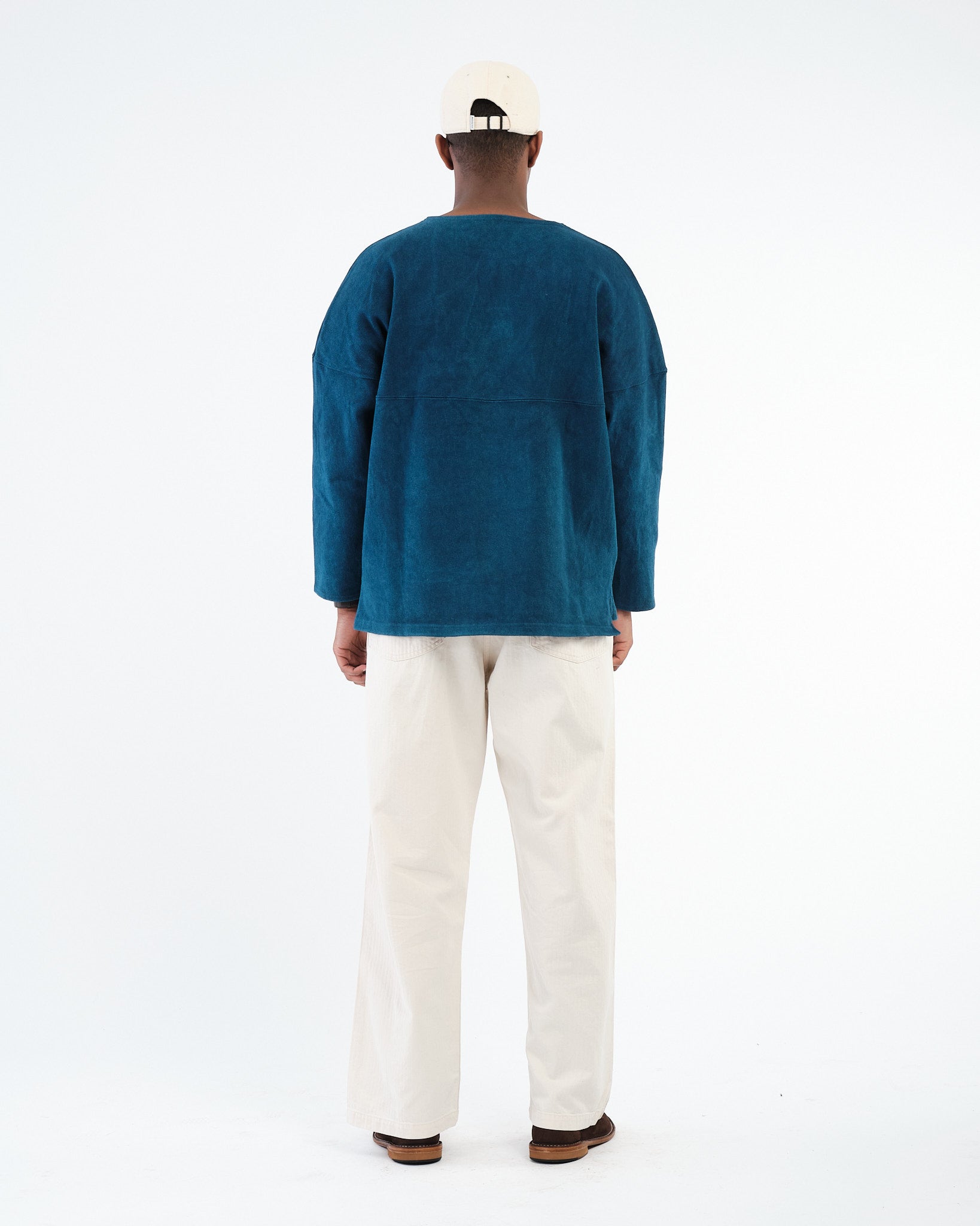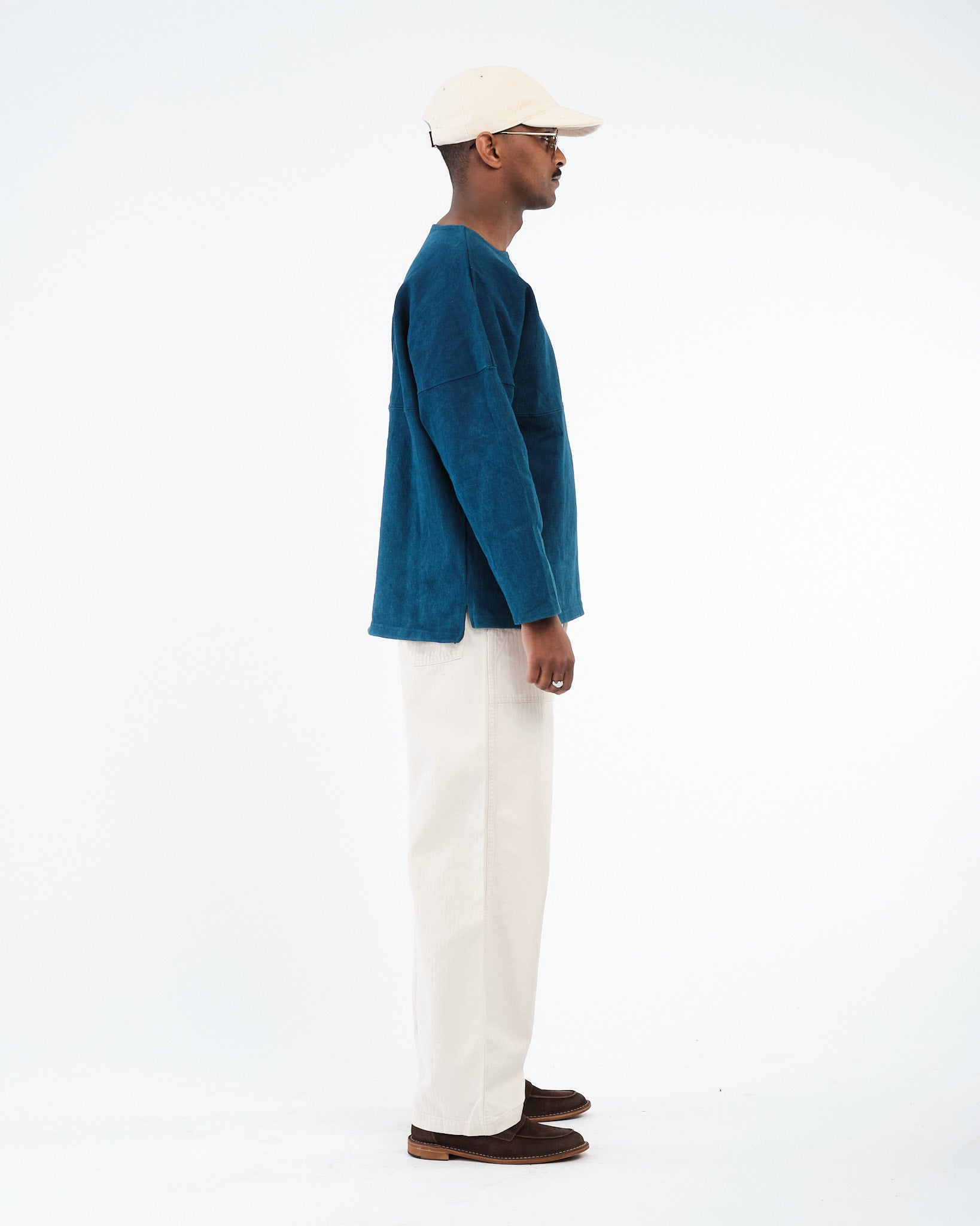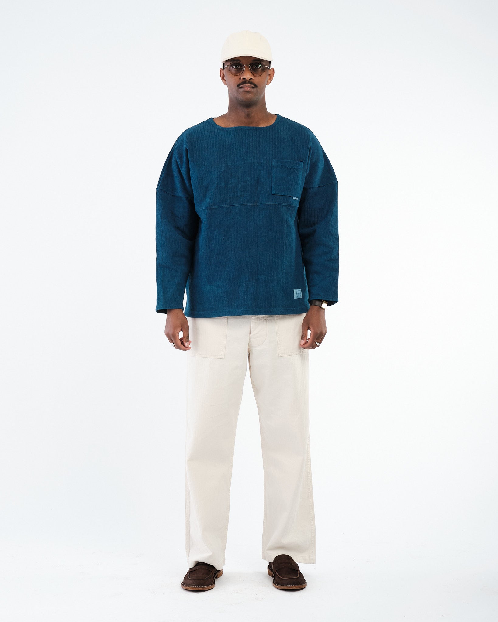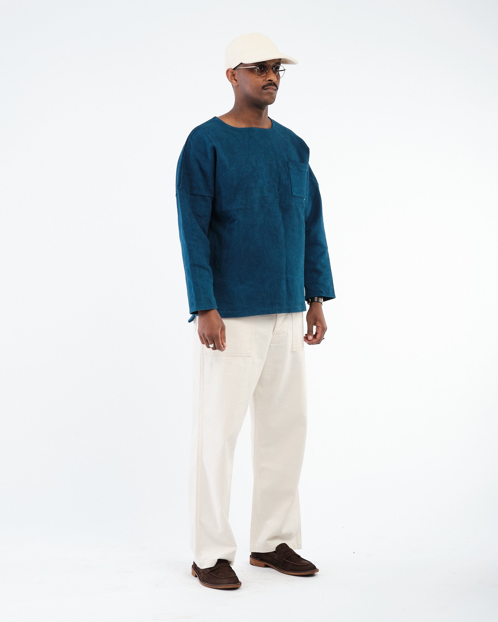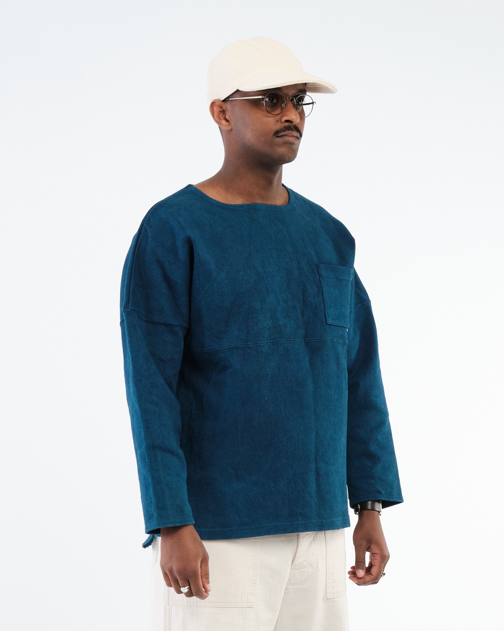 Featuring the iconic wide boat neck and slightly oversized silhouette, this Basque-style shirt is both functional and stylish. The heavyweight cotton fabric ensures durability and breathability, making it suitable for all seasons. Reinforced stitching and well-constructed seams add to its longevity, while the classic indigo color makes it incredibly versatile.