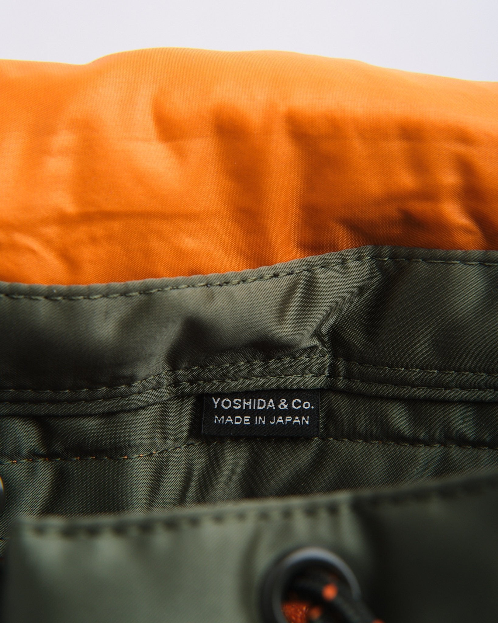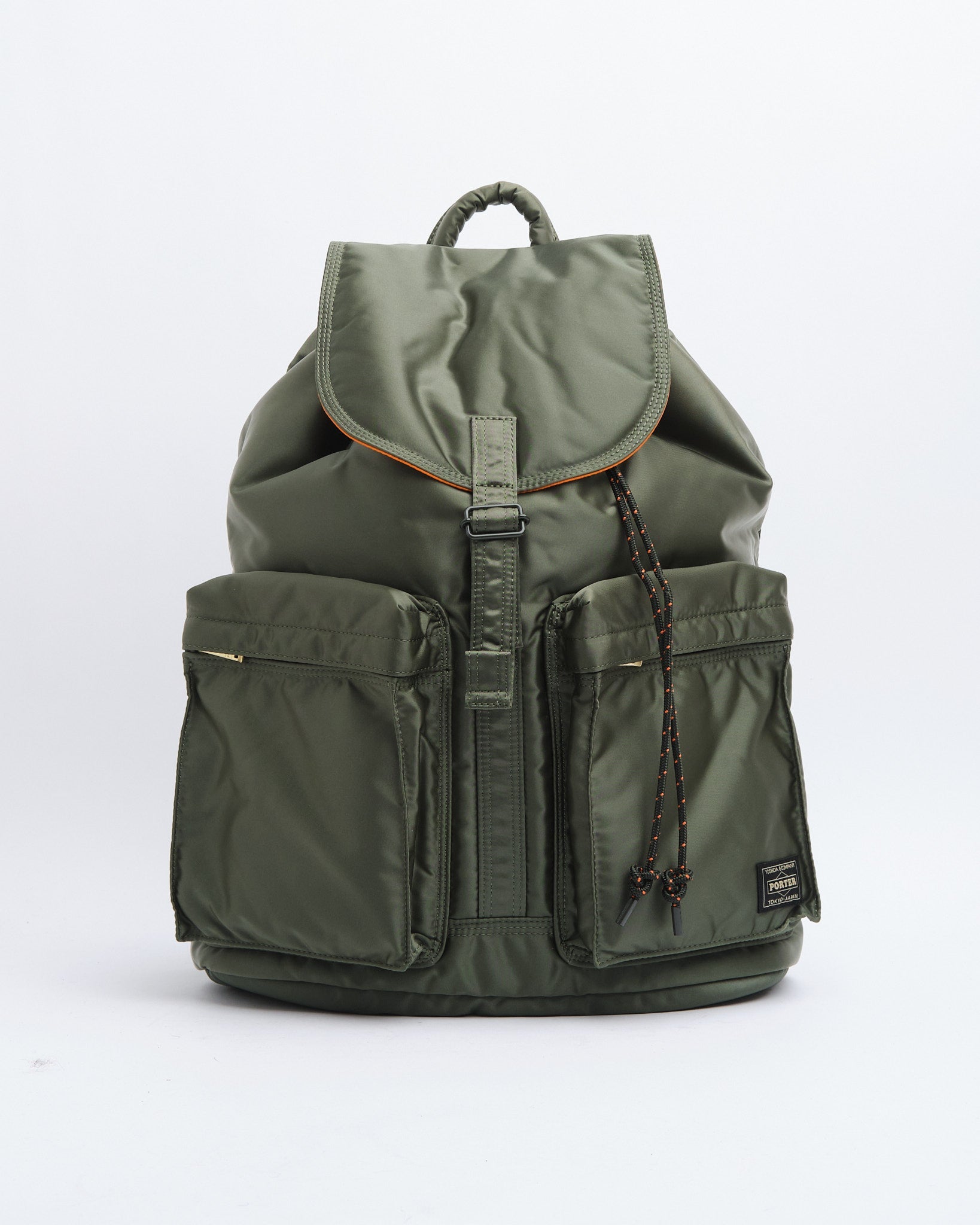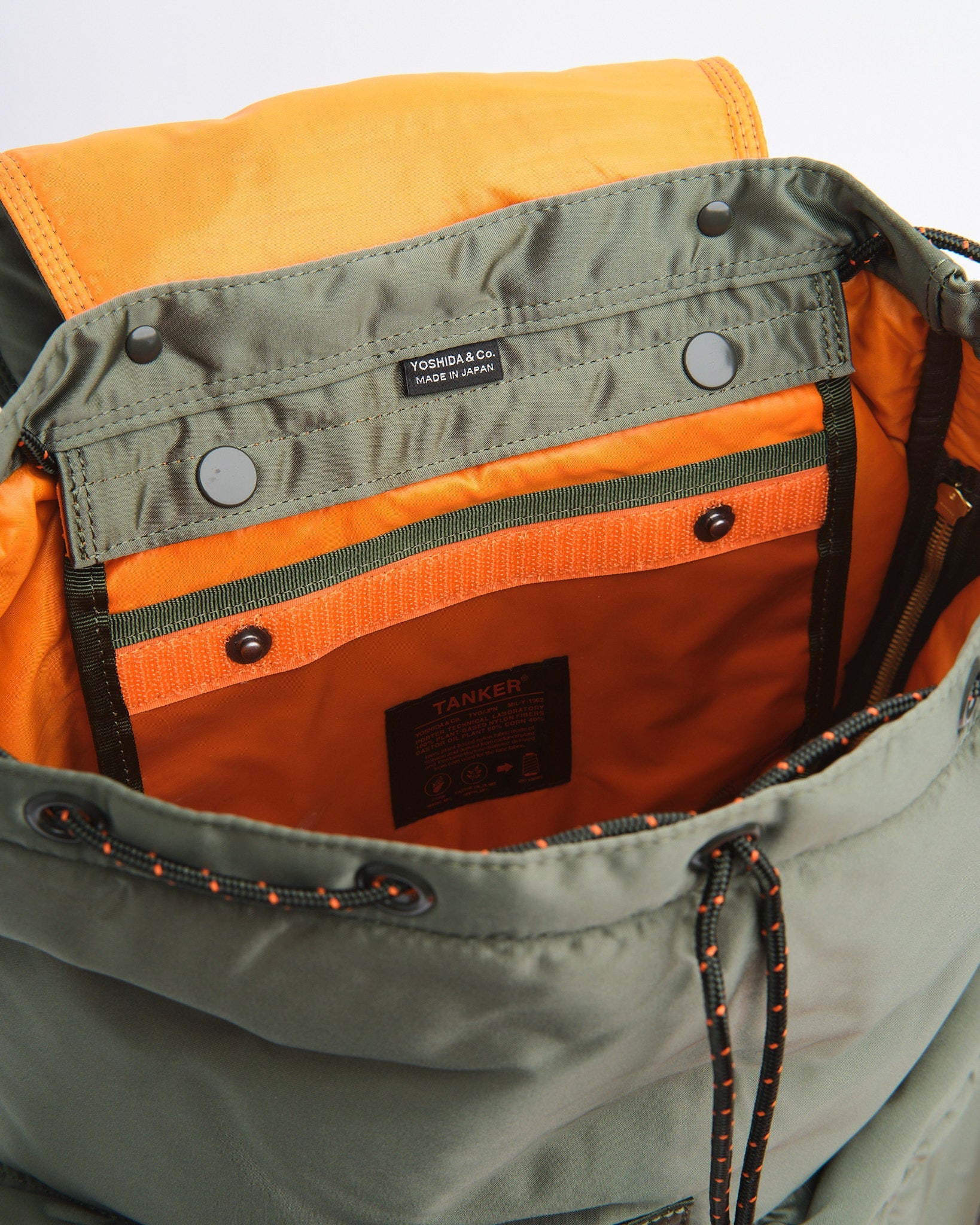 The PORTER BY YOSHIDA Tanker Rucksack (622-01630-30) in Sage Green is a standout from the newly reborn New Tanker series. Crafted with 100% plant-derived nylon, made from corn and castor oil plants, the rucksack continues the legacy of the iconic Tanker collection, now enhanced with modern updates. The fabric, produced by Toray Industries, offers superior strength, suppleness, and a vibrant luster, while maintaining an environmentally friendly approach.