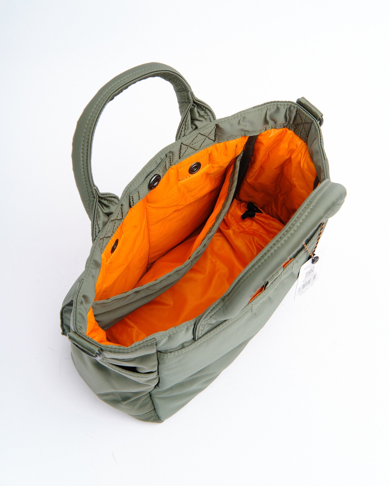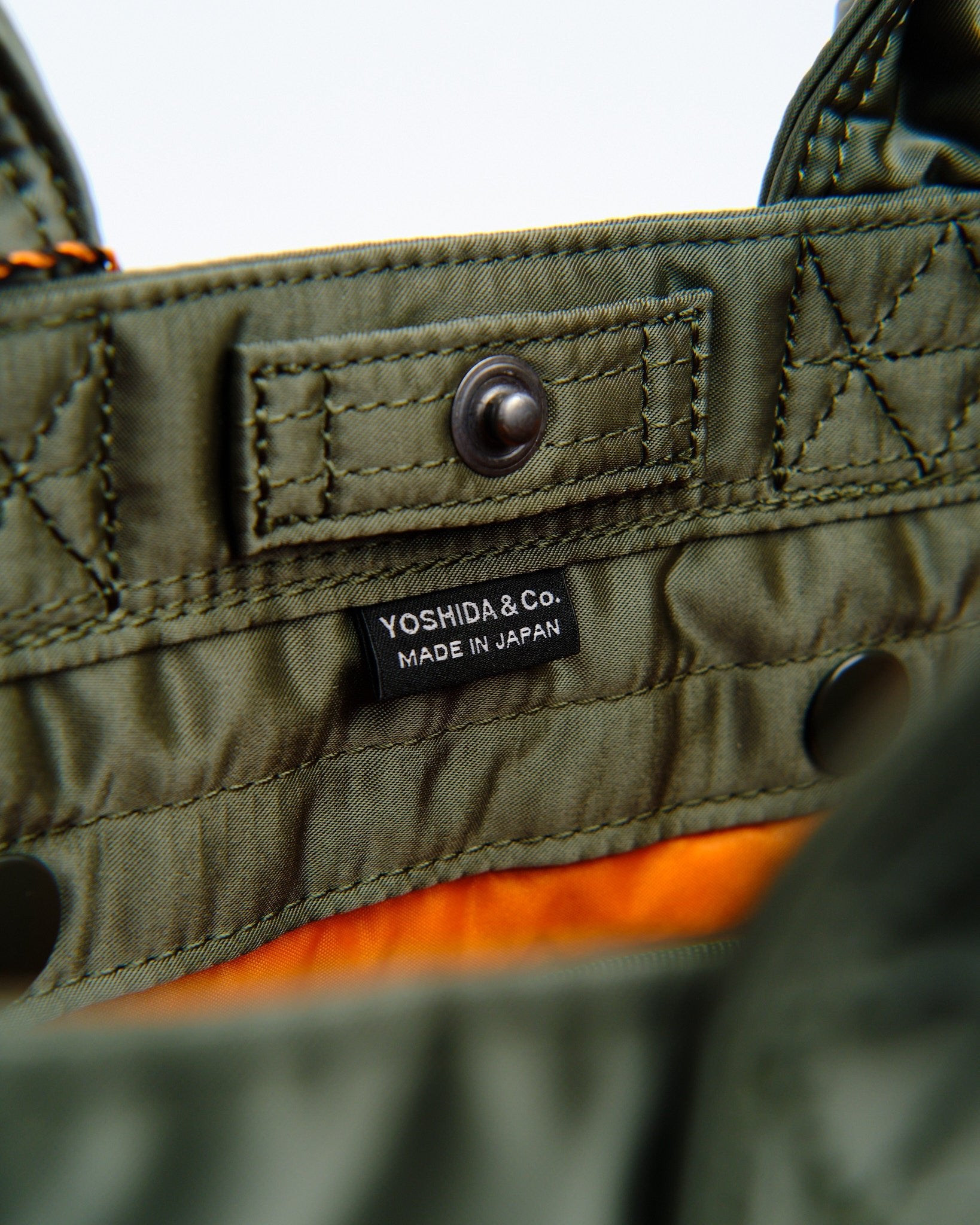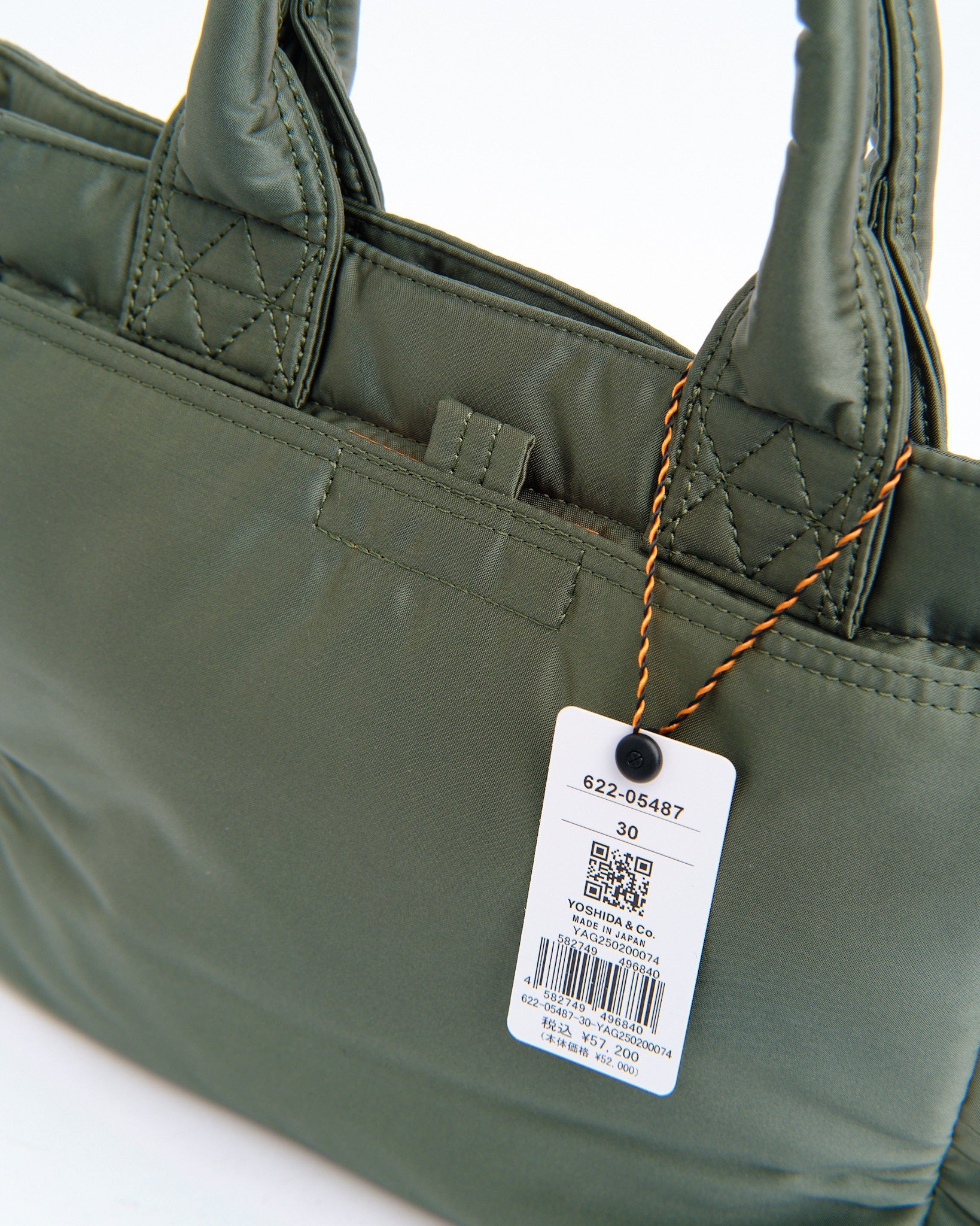 The PORTER BY YOSHIDA Tanker Tote Bag (622-05487-30) in Sage Green is a stylish and functional tote from the newly updated New Tanker series. Made from 100% plant-derived nylon, crafted from corn and castor oil plants, this tote bag embodies the classic durability and design of the iconic Tanker collection, now enhanced with modern updates. The fabric, produced by Toray Industries, offers excellent strength, softness, and a sleek luster, all while being environmentally friendly.