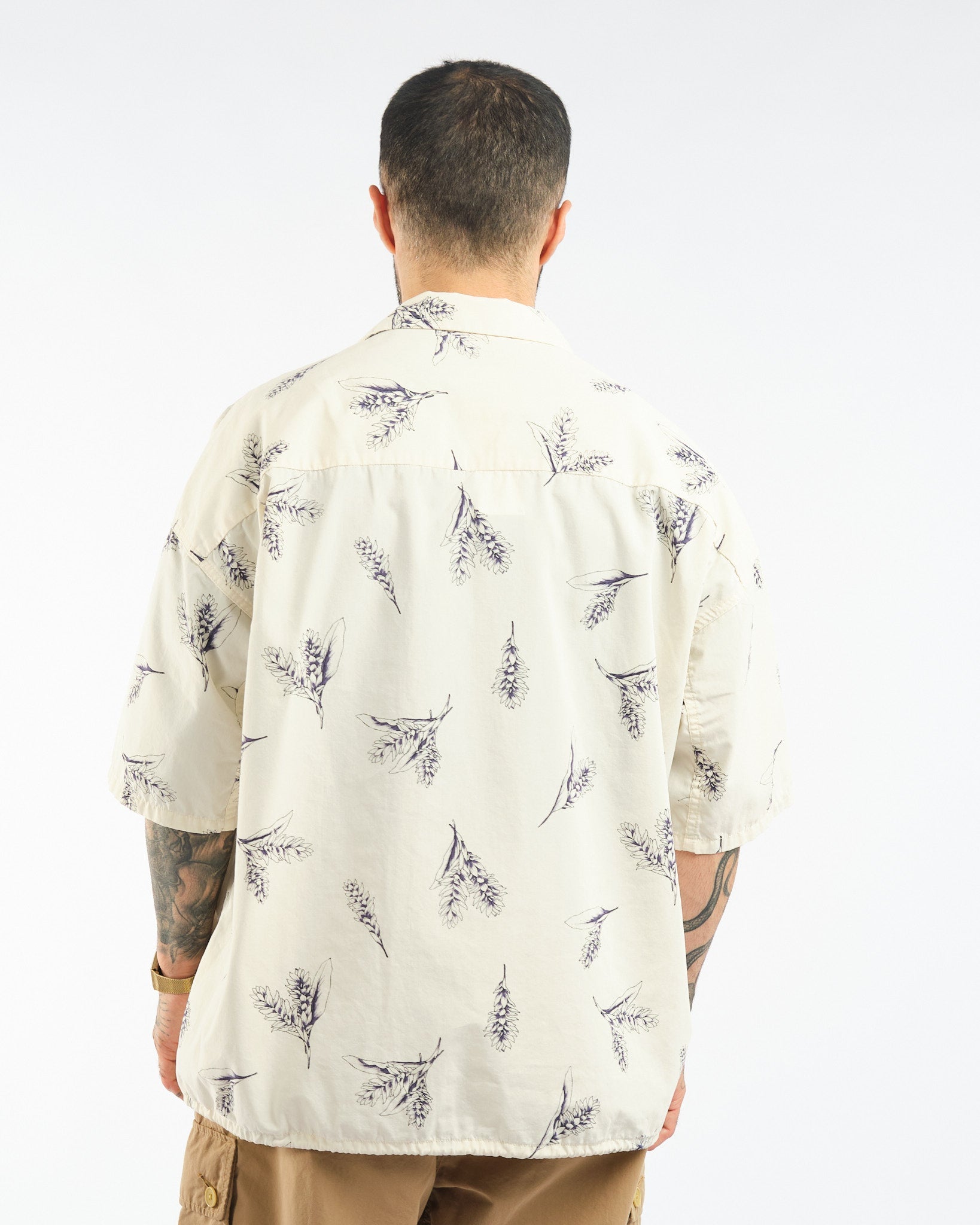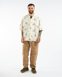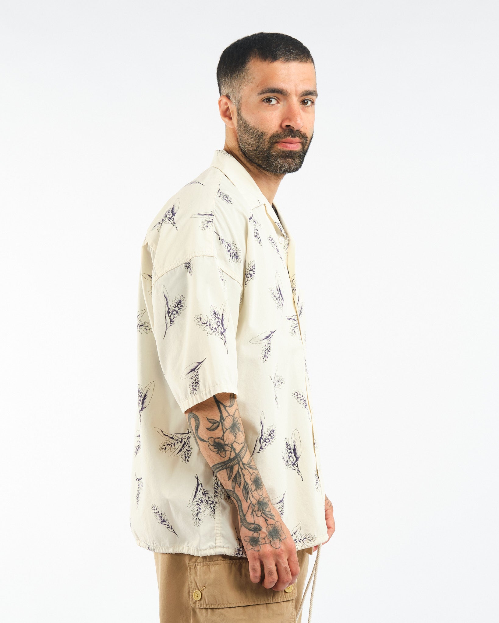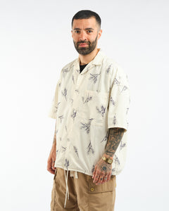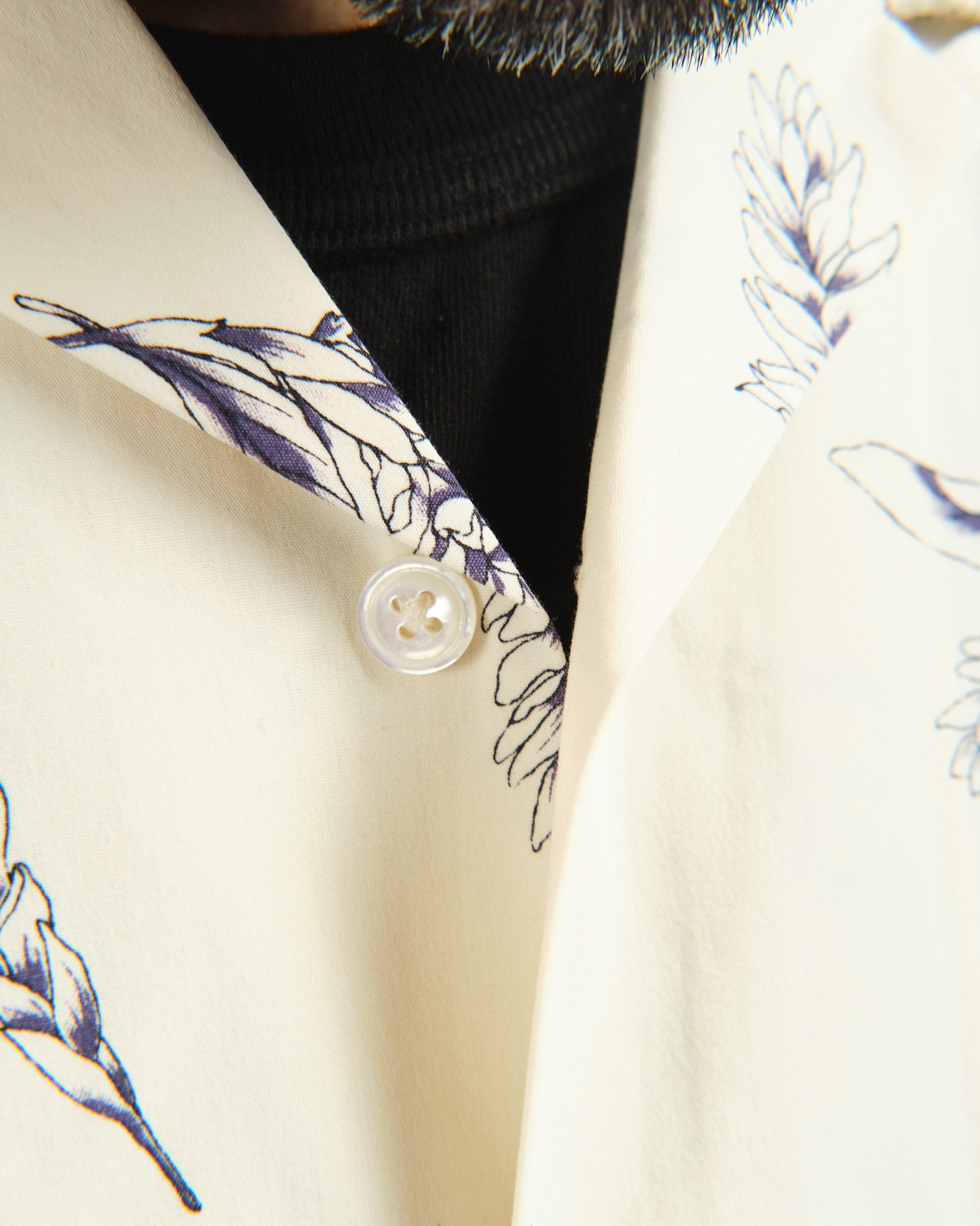 Experience the perfect blend of vintage and contemporary styles with Nanamica's Open Collar Wind H/S Shirt Ecru. This half-sleeve T-shirt features an oversize fit, dropped shoulders, and a drawstring cord that allows for size adjustments of the hem. Based on vintage shirts from the 60s, it has been restructured with a pattern switch design on the collar and sleeves. The broadcloth, made of covering core yarn with a polyester core wrapped in cotton, is printed with a sketch of red ginger flowers found in Hawaii and the South Sea Islands. The shirt also has a convenient patch pocket on the left chest.