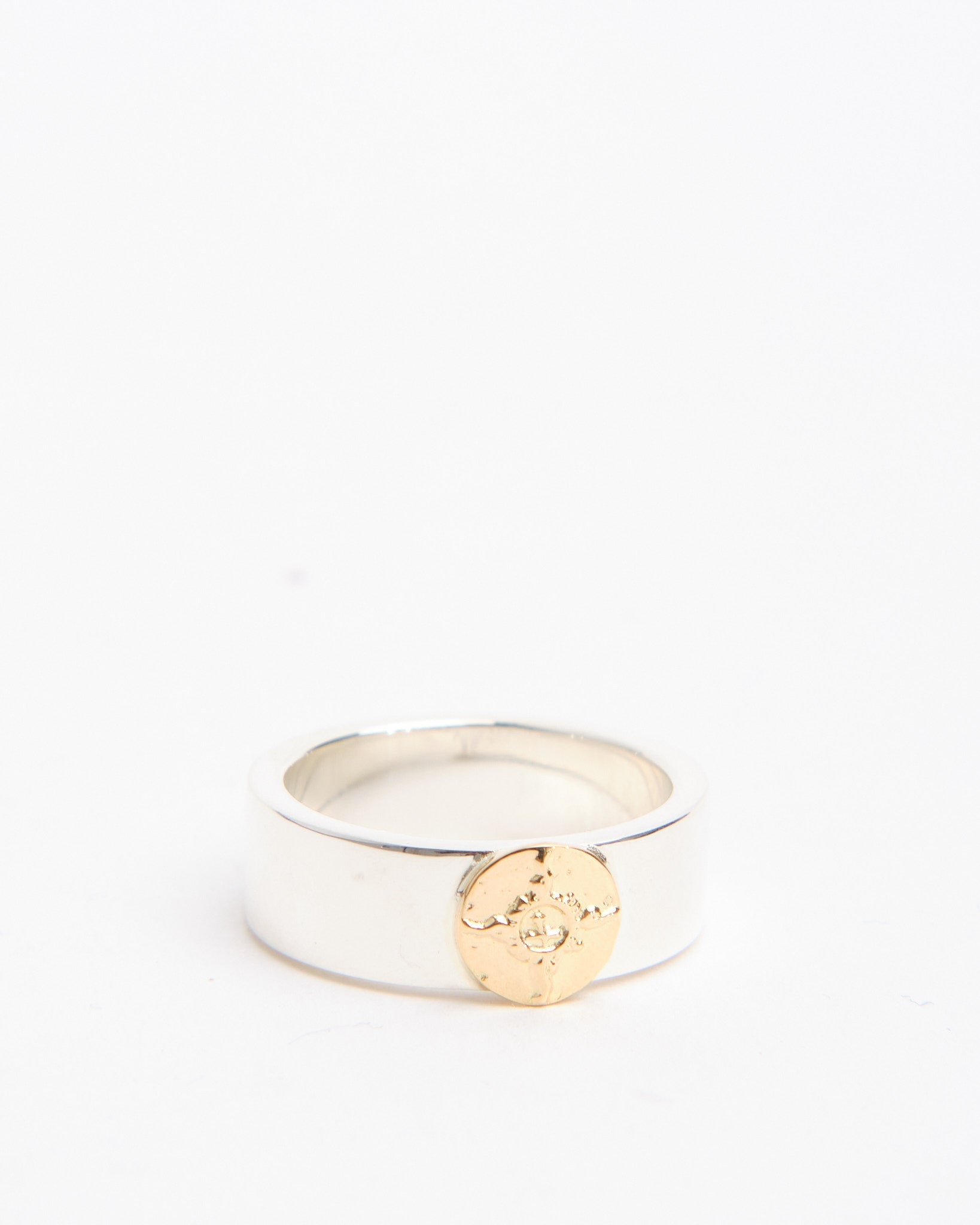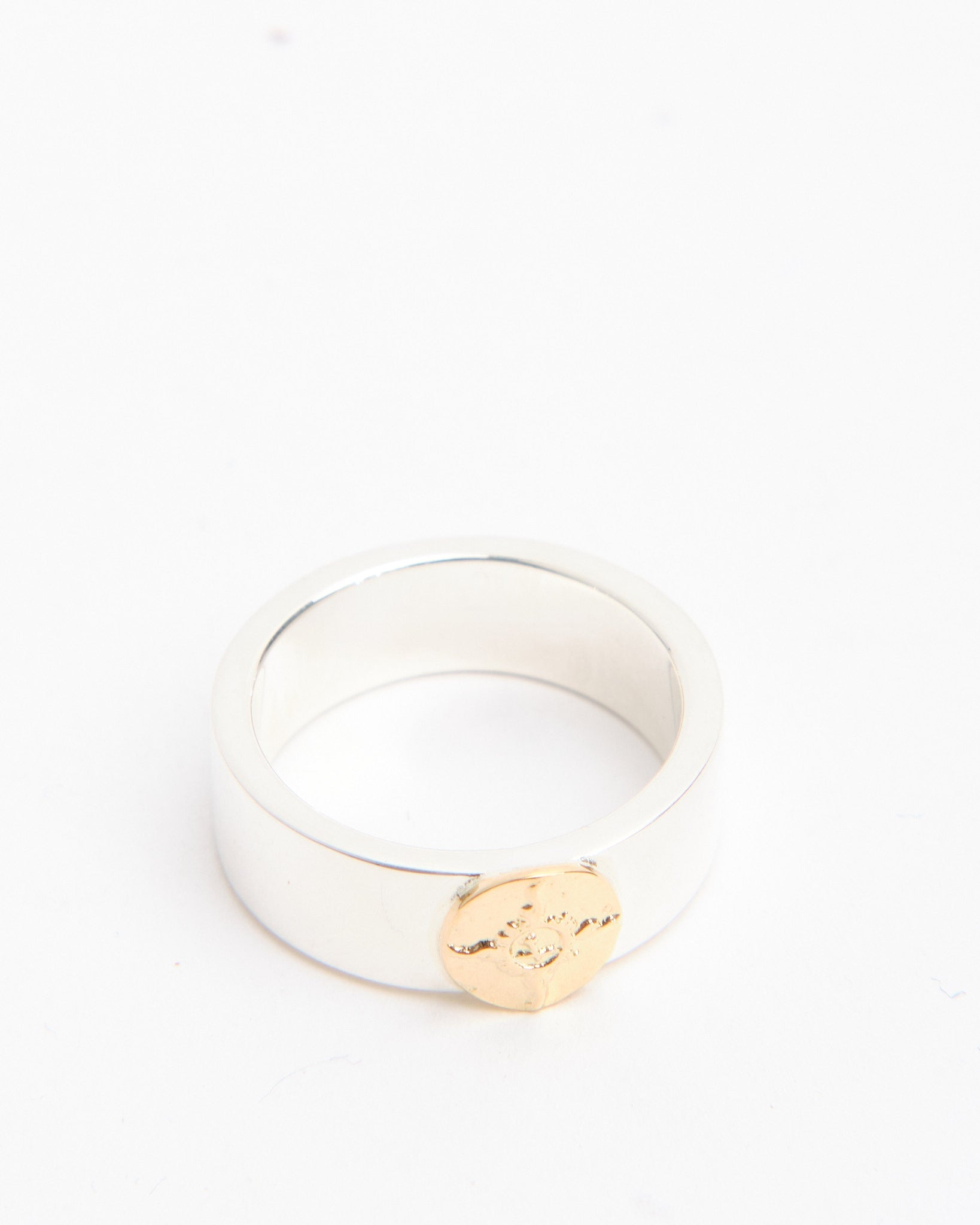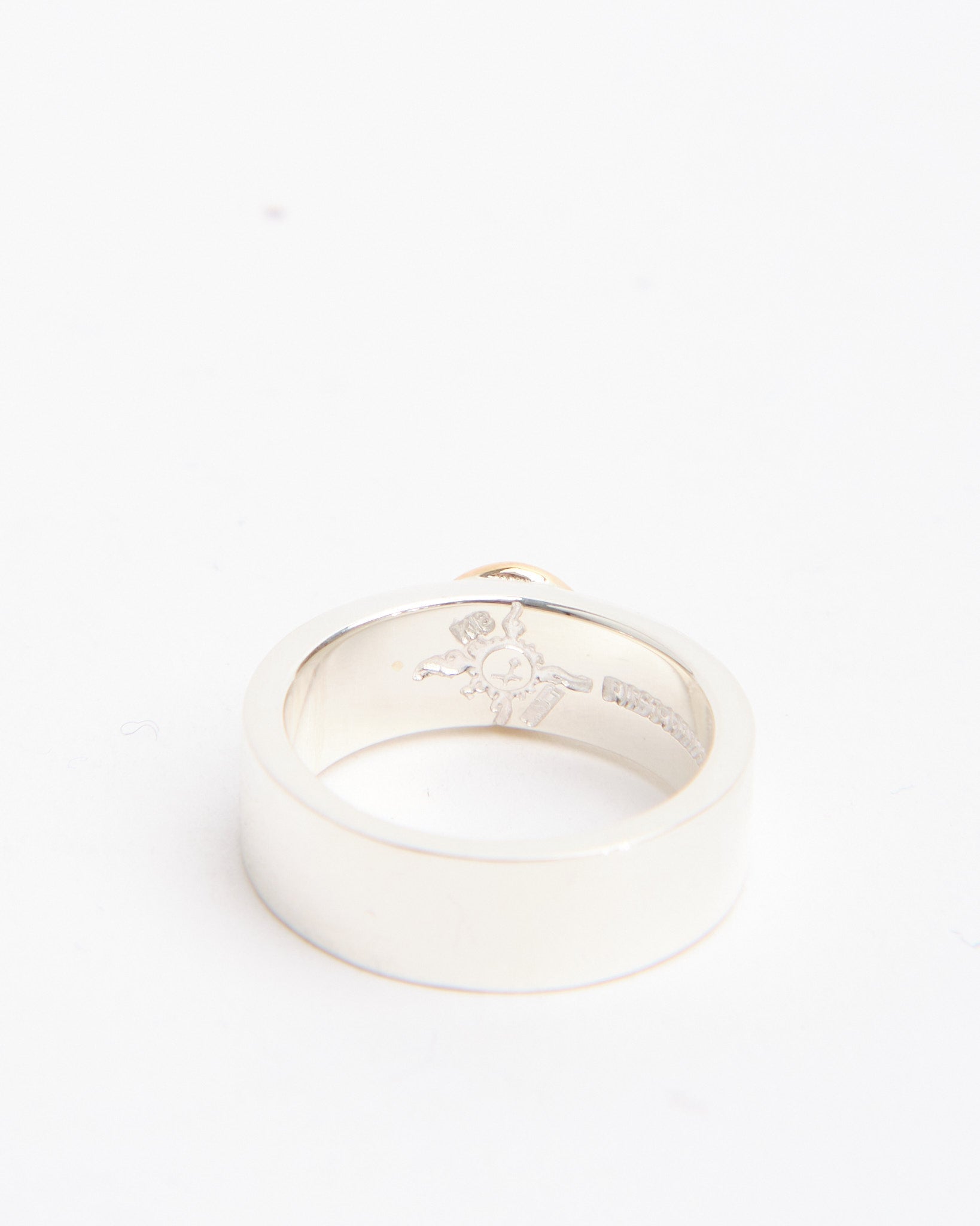 The Flat Hammered 8mm Plane Ring with K18 (#22) is a striking band that showcases First Arrows’ signature blend of craftsmanship and symbolism. Handcrafted in Japan from Britannia Silver 950, the ring features an 8mm wide band with a hammered finish, giving it a textured surface that reflects light in unique ways. A detail in 18k yellow gold provides contrast and warmth, standing out against the brilliance of the silver. Strengthened by First Arrows’ exclusive heat-treatment process, the silver is both durable and radiant, aging beautifully as it develops a patina that enhances the gold detail. Inspired by Native American motifs and elevated with Japanese refinement, this ring is a bold statement piece designed to grow more personal over time.