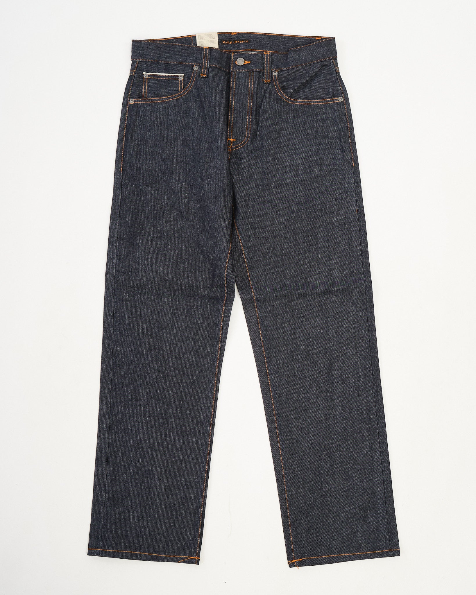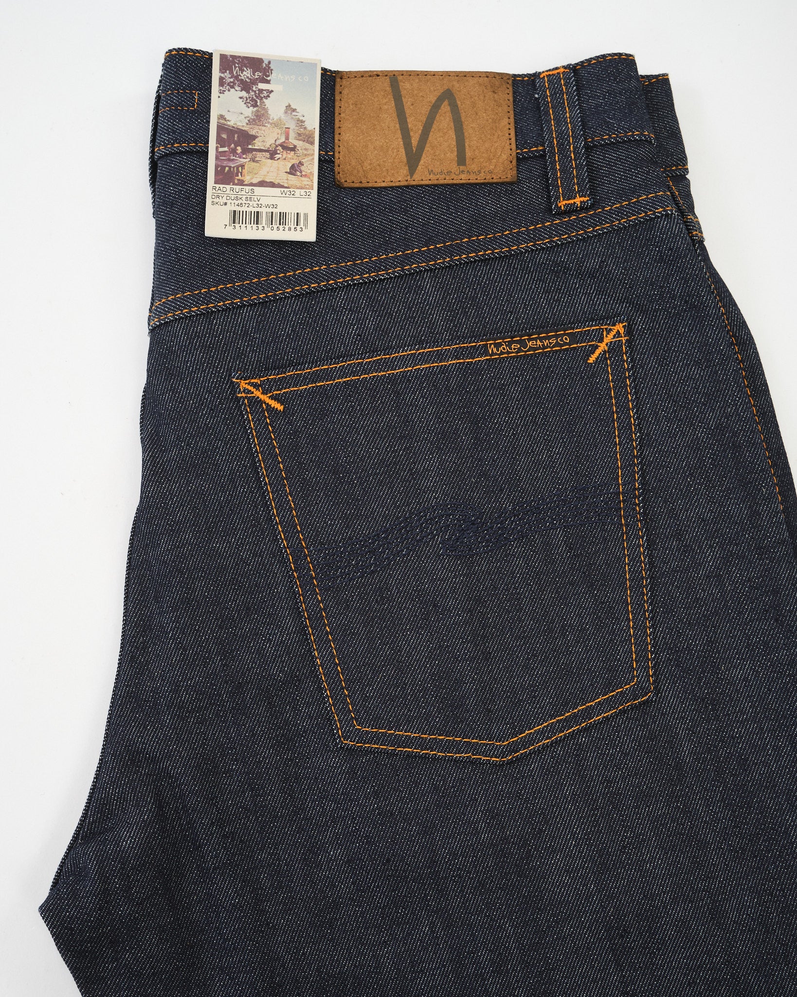 Step into the world of premium denim with NUDIE JEANS CO. RAD RUFUS DRY DUSK SELVAGE. These high-waisted, regular-fit jeans feature a classic straight leg and are crafted from 13 oz. rigid Turkish selvage denim, woven from organic and recycled cotton. The pure natural indigo dye gives them a deep, rich tone, while the all-white selvage ID and slubby texture add character.