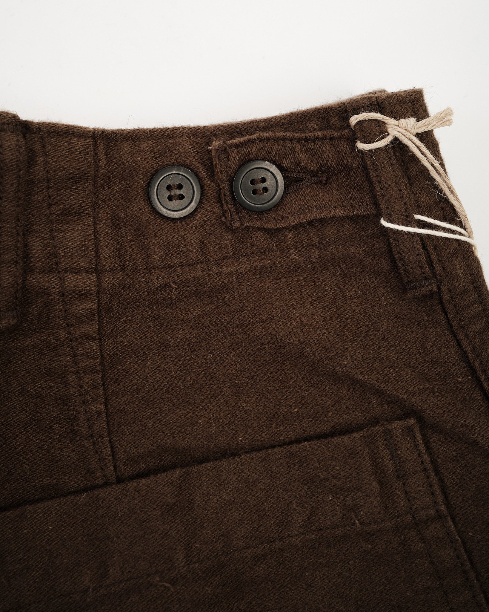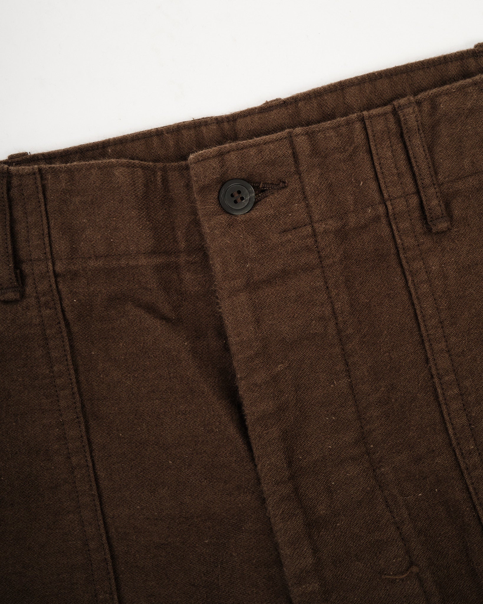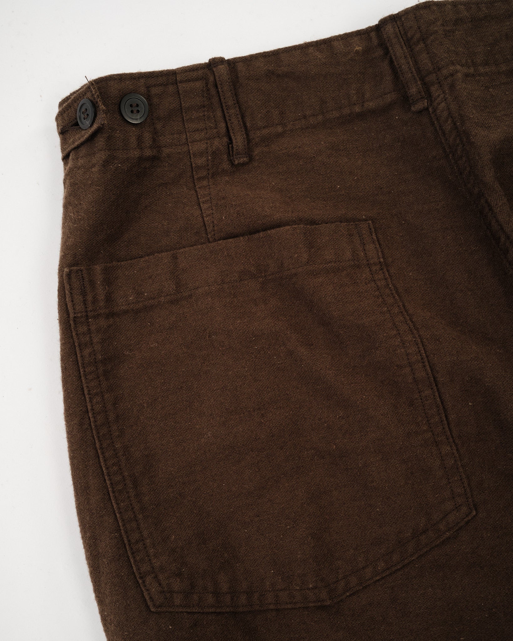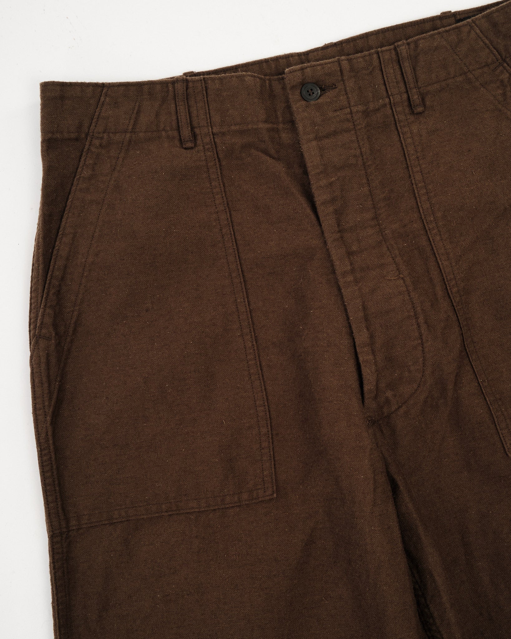 orSlow’s Relax Fit Cotton Linen Moleskin Fatigue Pants in Coffee Brown combine classic military design with refined Japanese craftsmanship. The cotton-linen moleskin fabric is soft, durable, and slightly brushed, giving it a rich texture that feels lived-in from day one. Cut in a relaxed silhouette with straight legs, these pants feature large fatigue pockets, adjustable waist tabs, and reinforced seams. The warm Coffee Brown tone adds depth and versatility — equally suited for workwear layering or casual everyday wear.