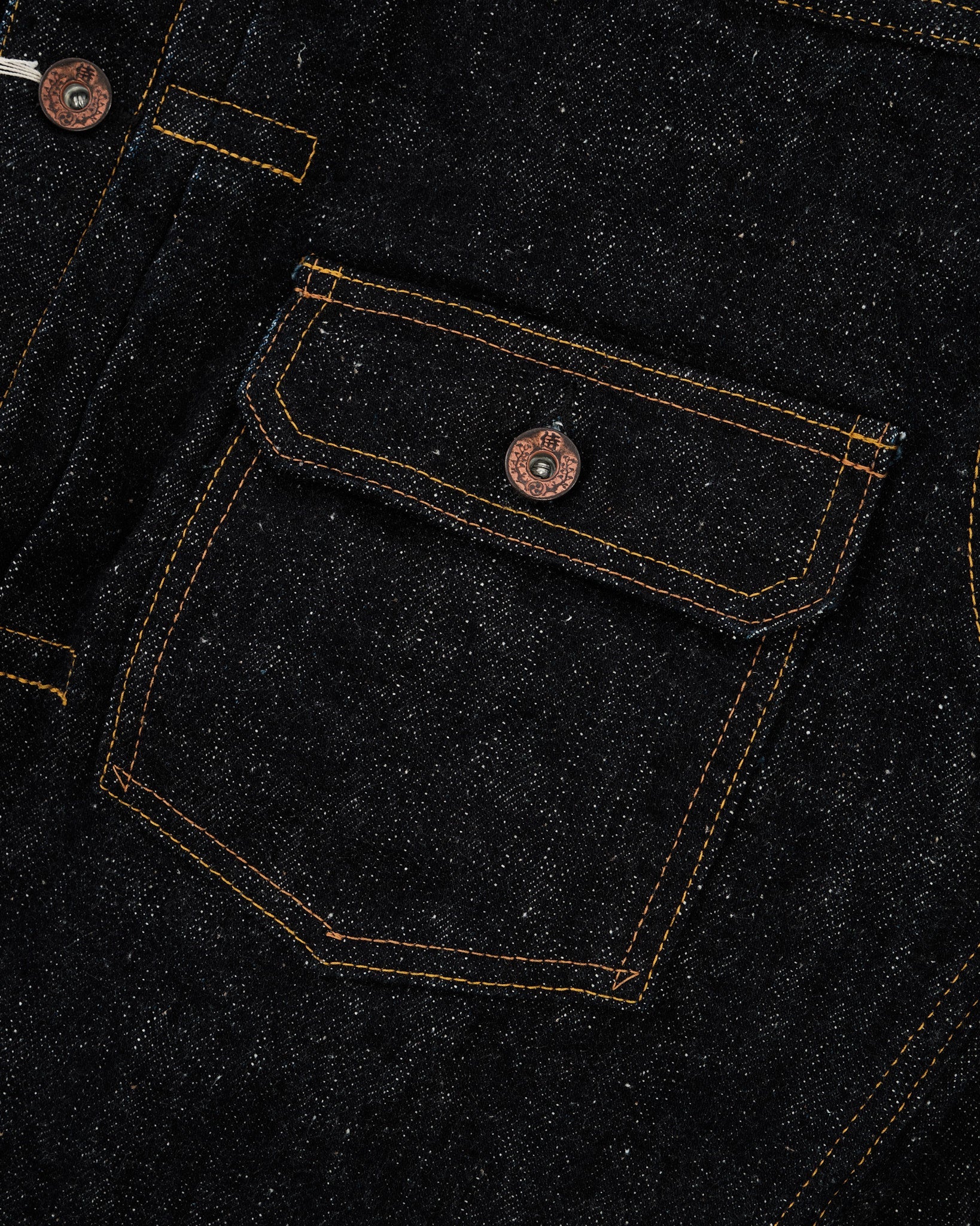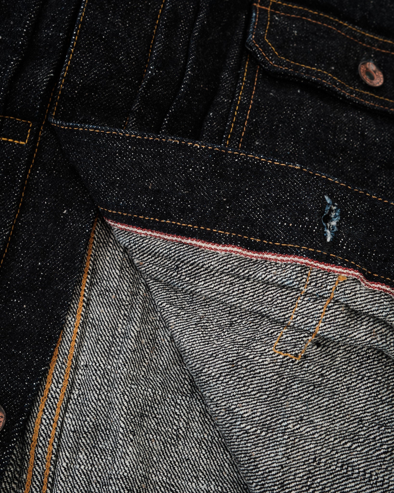 The S556VX is Samurai’s bold reworking of the Type 1 jacket, crafted in heavyweight 17oz Zero+ selvedge denim. Staying true to vintage inspiration while refining comfort, this model updates Samurai’s classic jacket pattern with wider armholes, slightly larger shoulders, and increased body width. Even the yoke and pocket placement have been carefully adjusted, creating a fit that wears easier without losing its rugged presence.