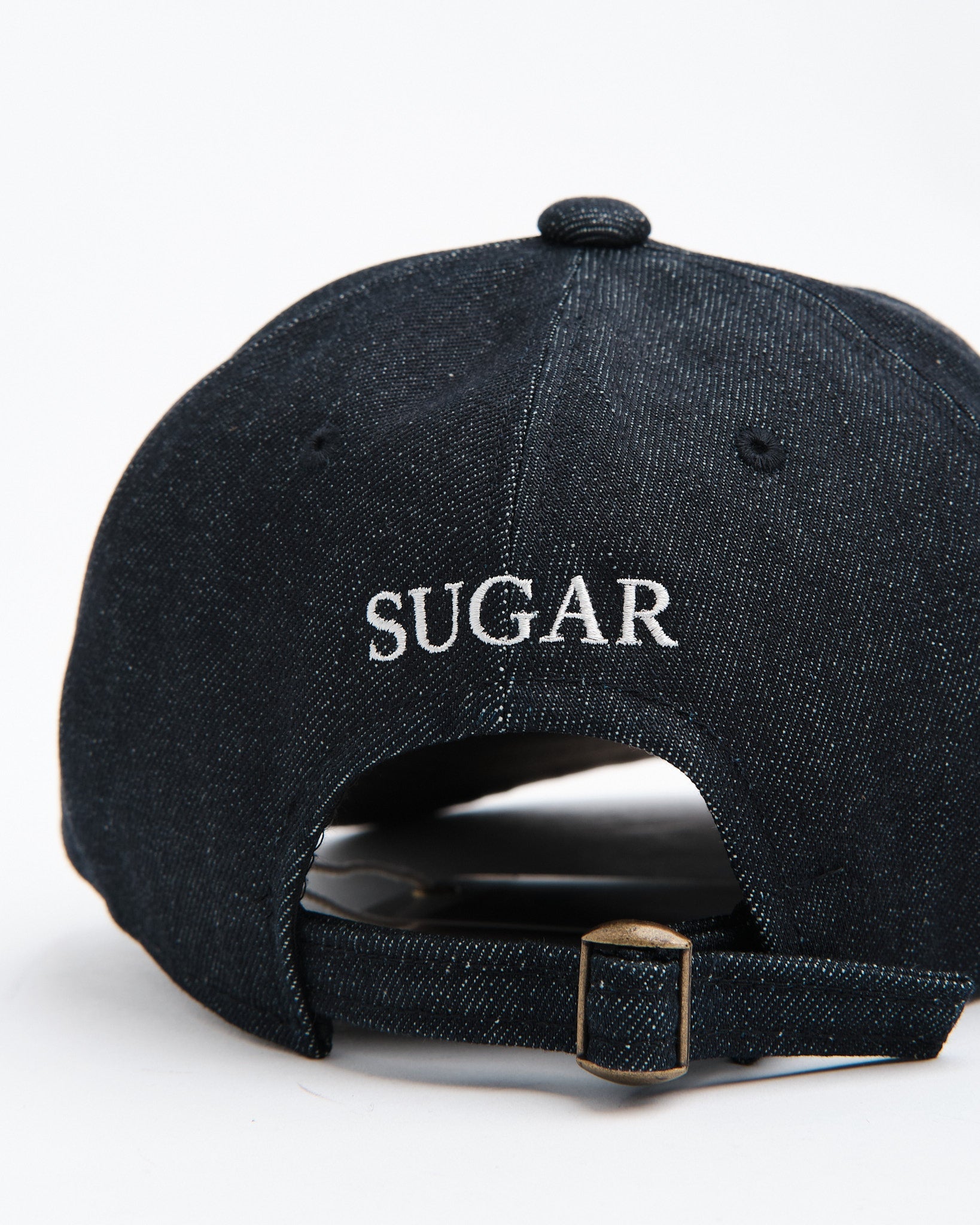 The cap's front panel is constructed from a single piece of fabric, which, with repeated wear, softens to achieve a vintage, lived-in feel. The rear features "SUGAR" embroidery and a brass buckle, emphasizing meticulous attention to detail and enhancing the overall aesthetic.