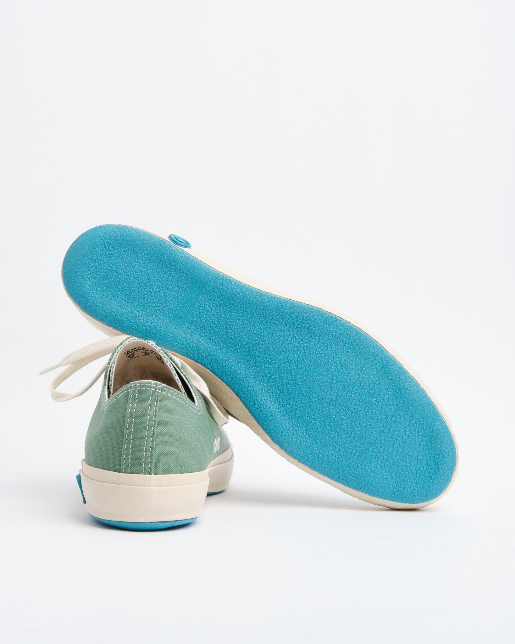 The Shoes Like Pottery SLP01 JP Green is a Japanese-made canvas sneaker crafted using time-honoured vulcanisation techniques in Kurume, Japan — a region known for its long shoemaking tradition. Each pair is slow-fired in a kiln, a rare process that enhances flexibility, durability, and long-term comfort.